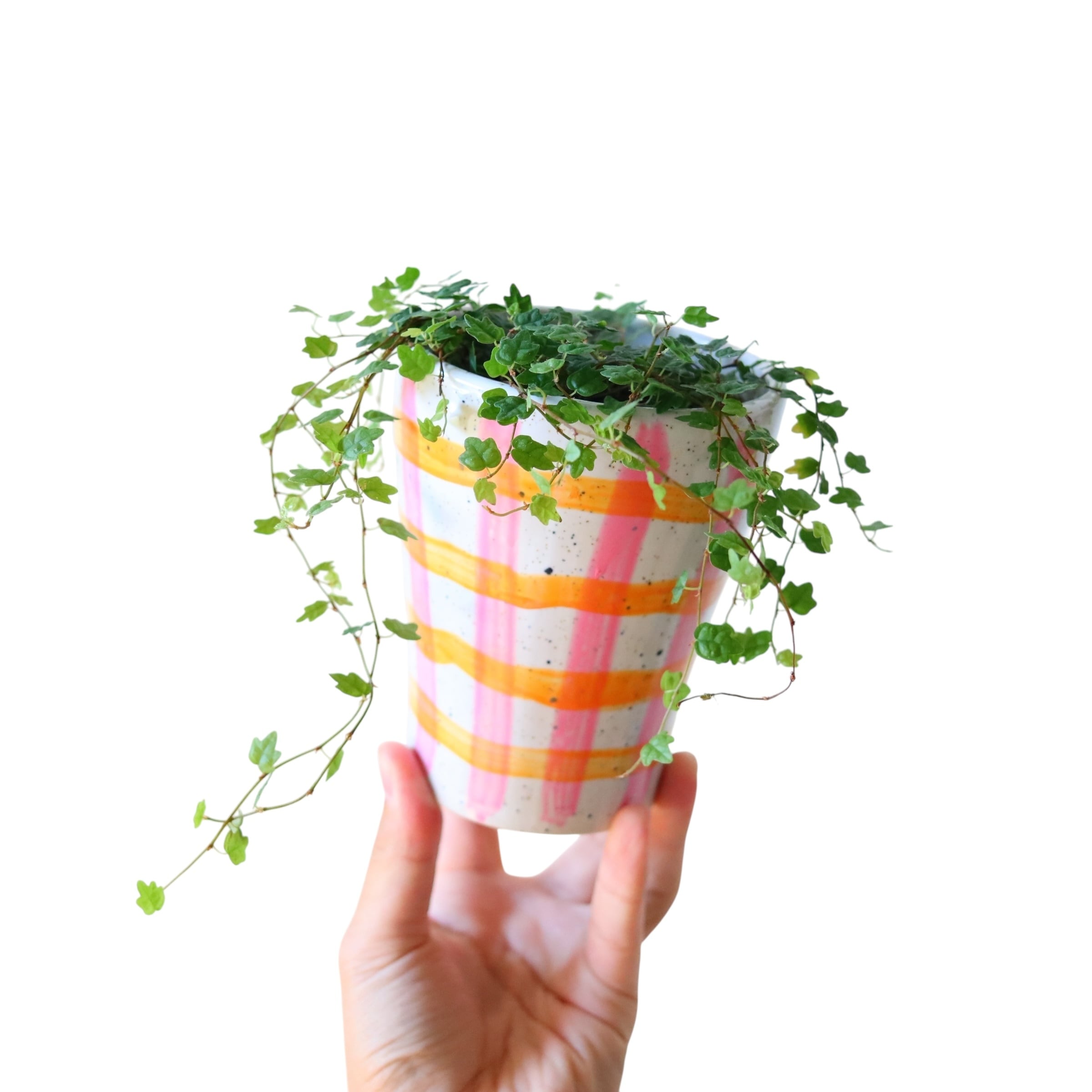 サイズ : 縦12㎝ × 横10㎝ (鉢の大きさです。名刺サイズのカードとの比較を参考にしてください。)