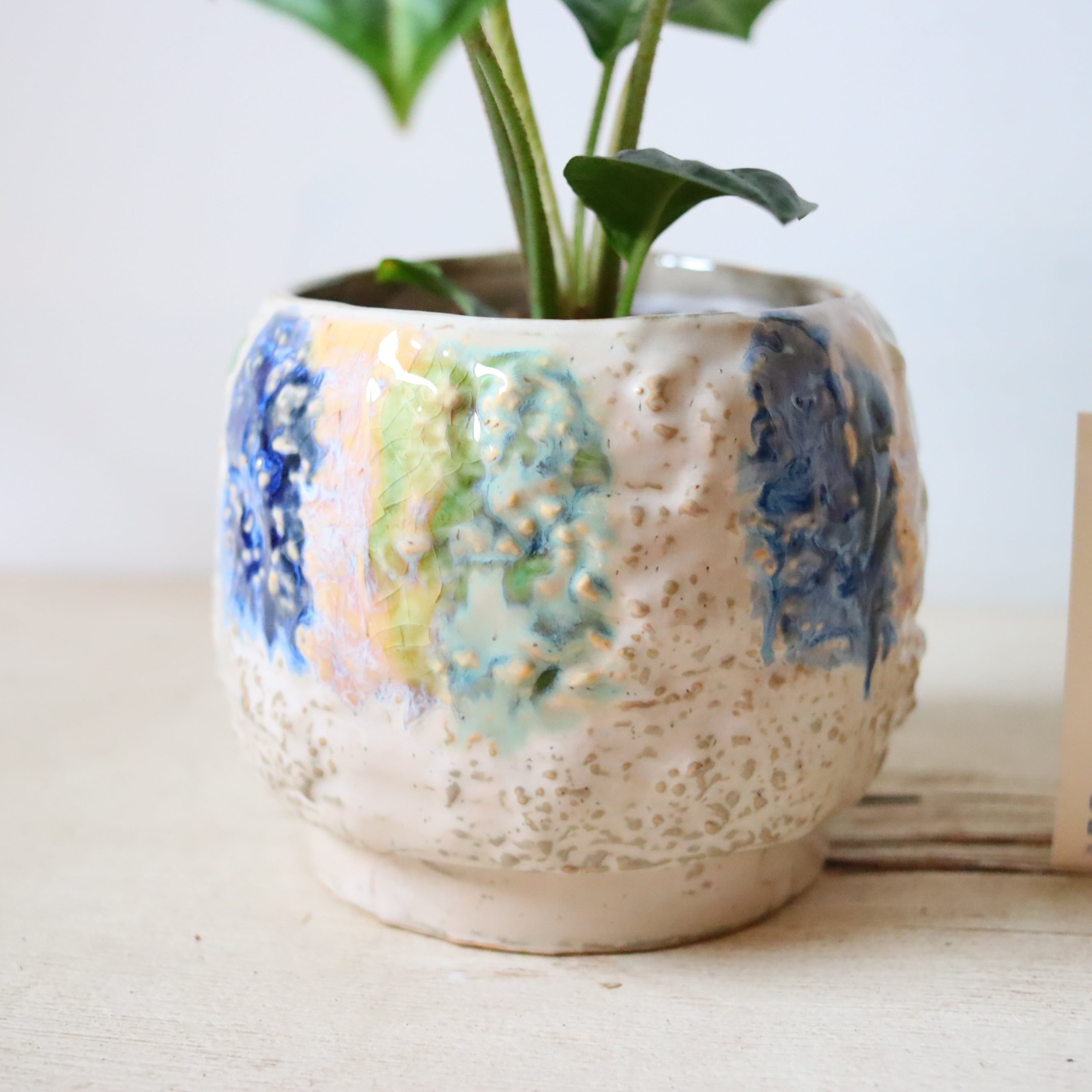 サイズ : 縦11㎝ × 横13㎝ (鉢の大きさです。名刺サイズのカードとの比較を参考にしてください。)