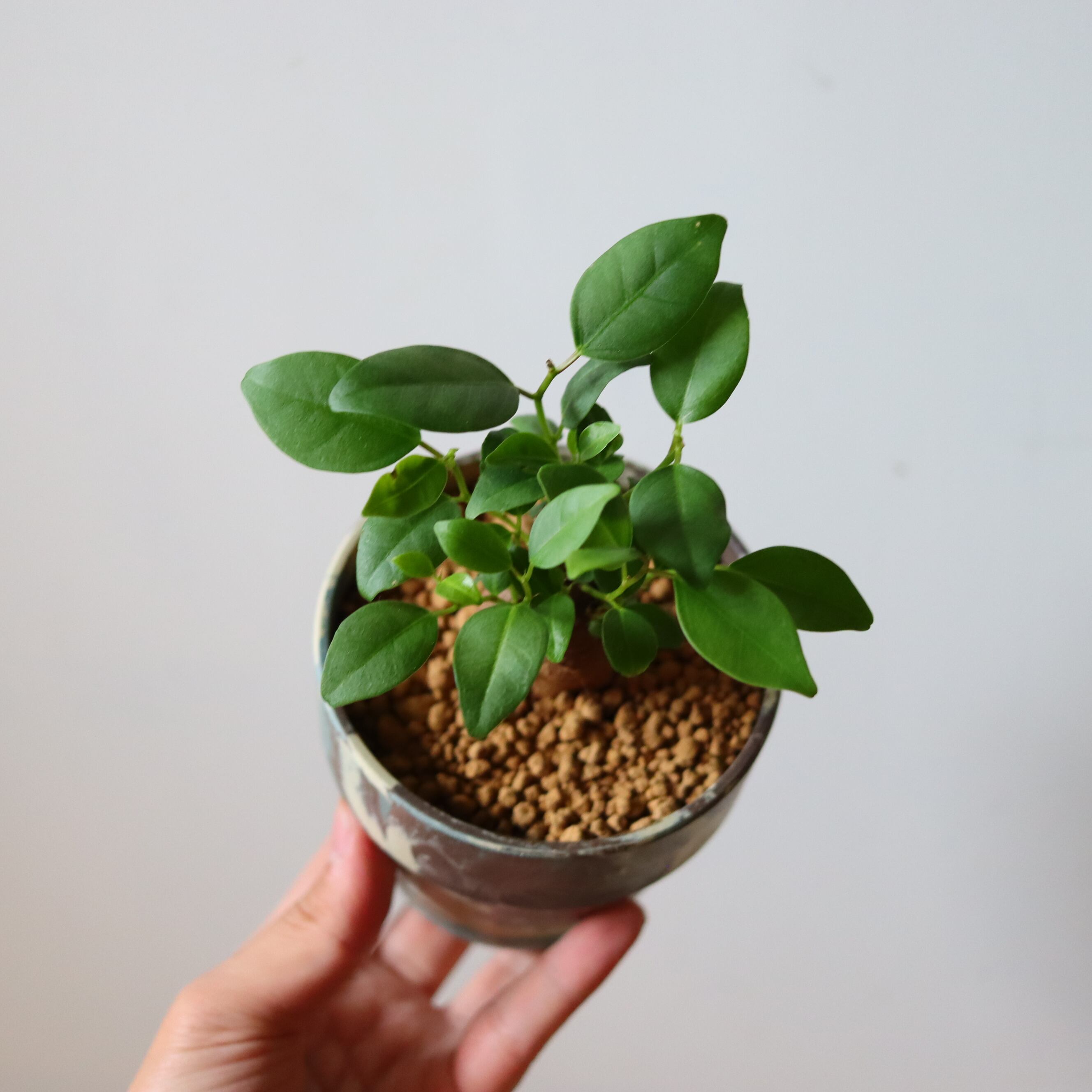 足元のかわいいガジュマルです。ガジュマルはすごく丈夫で育てやすく、お世話が苦手な方にもおすすめです。