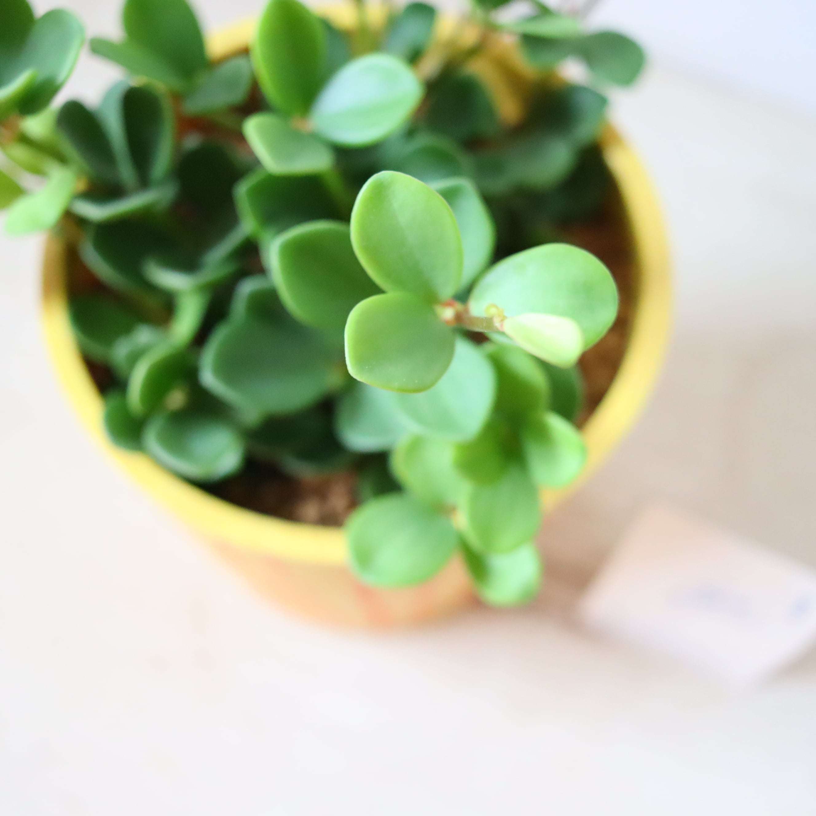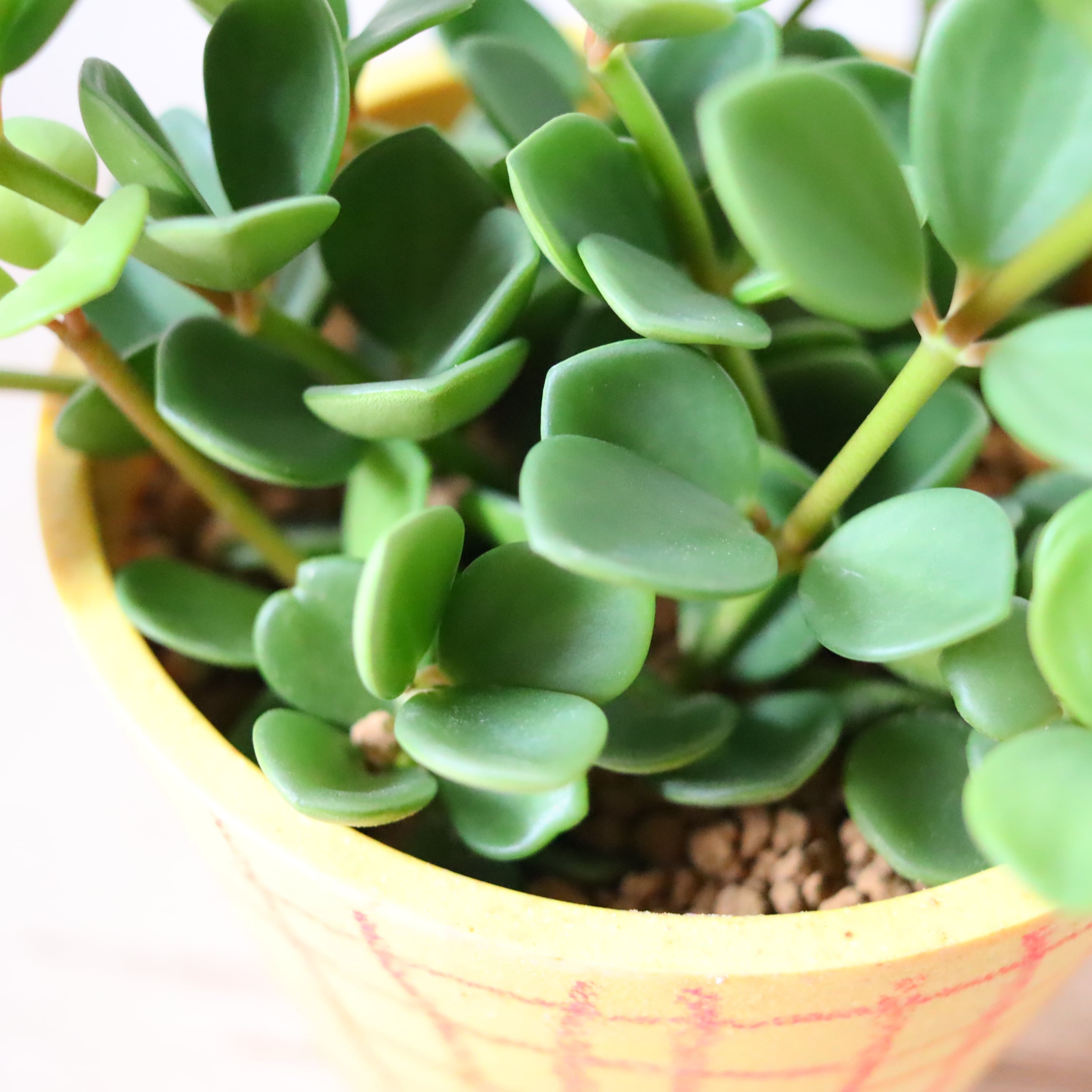 まるっとした葉っぱがかわいい植物です。伸びていくと重みで下に垂れ下がっていく姿がかわいいです。もうこれ以上伸びてほしくない時は切ってあげて大丈夫です。