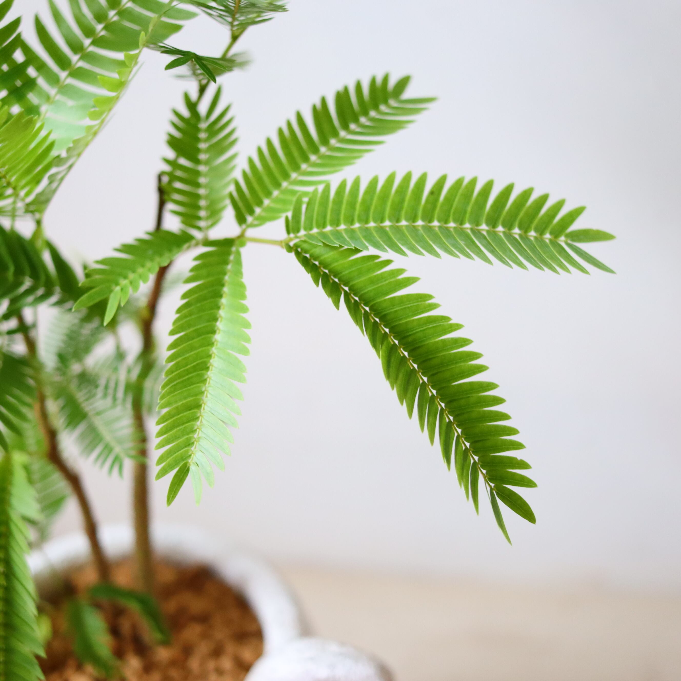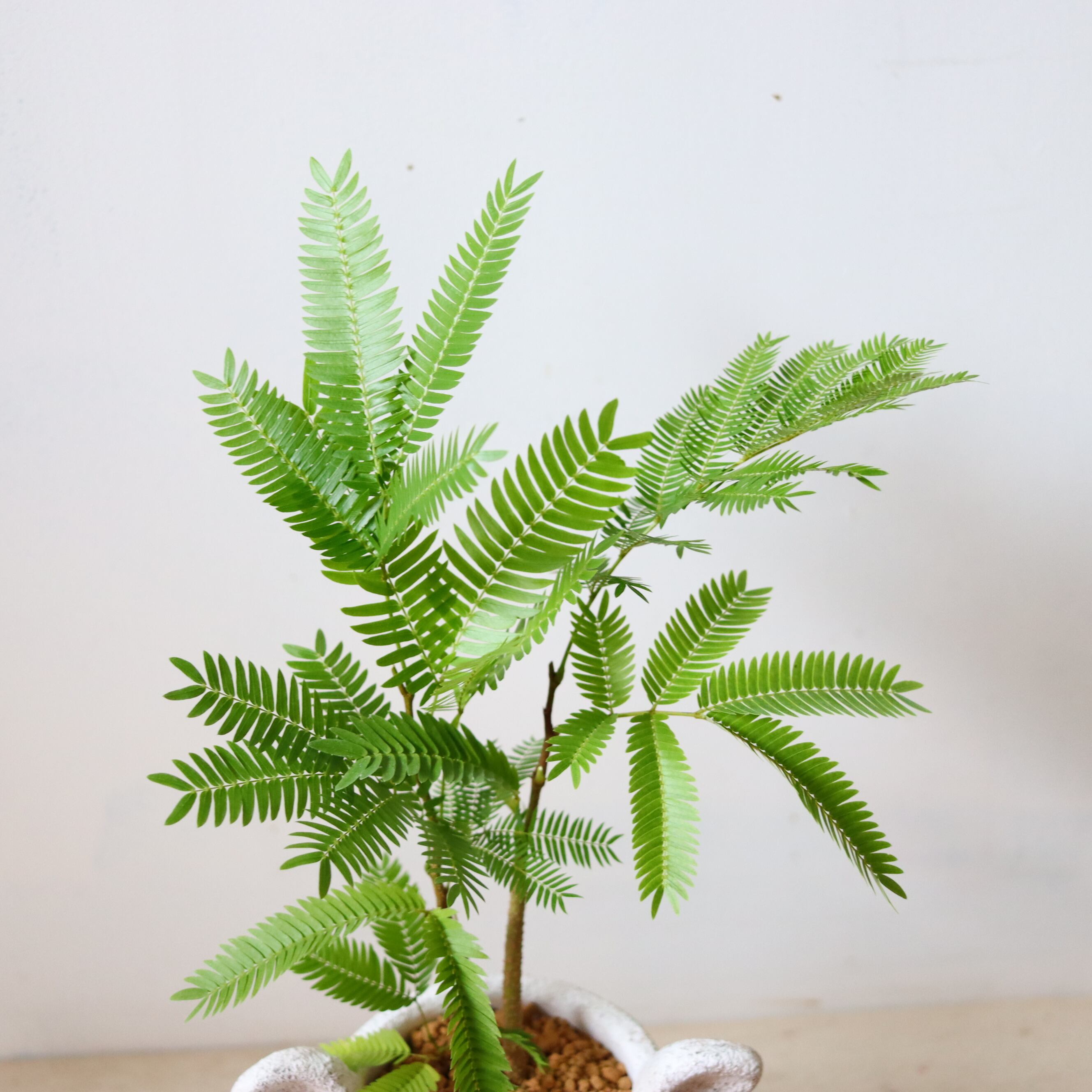 爽やかな葉っぱが魅力的な植物です。朝から夕方まで葉っぱは開いていますが、夜になると閉じるという面白い子です。枝ぶりも綺麗で、お部屋の雰囲気をがらりと変えてくれる、おすすめの植物です。