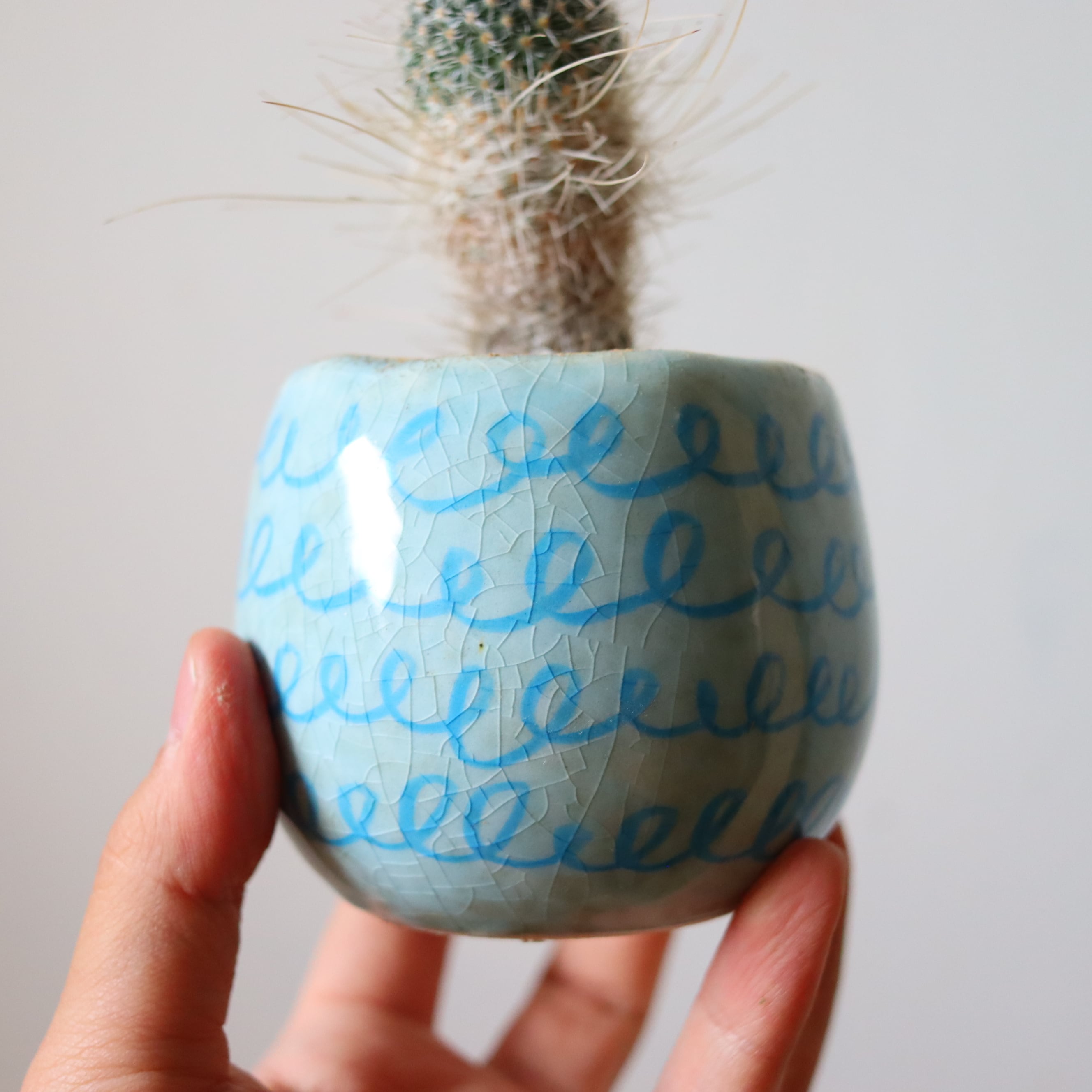 サイズ : 縦8cm × 横8㎝ (鉢の大きさです。名刺サイズのカードとの比較を参考にしてください。)