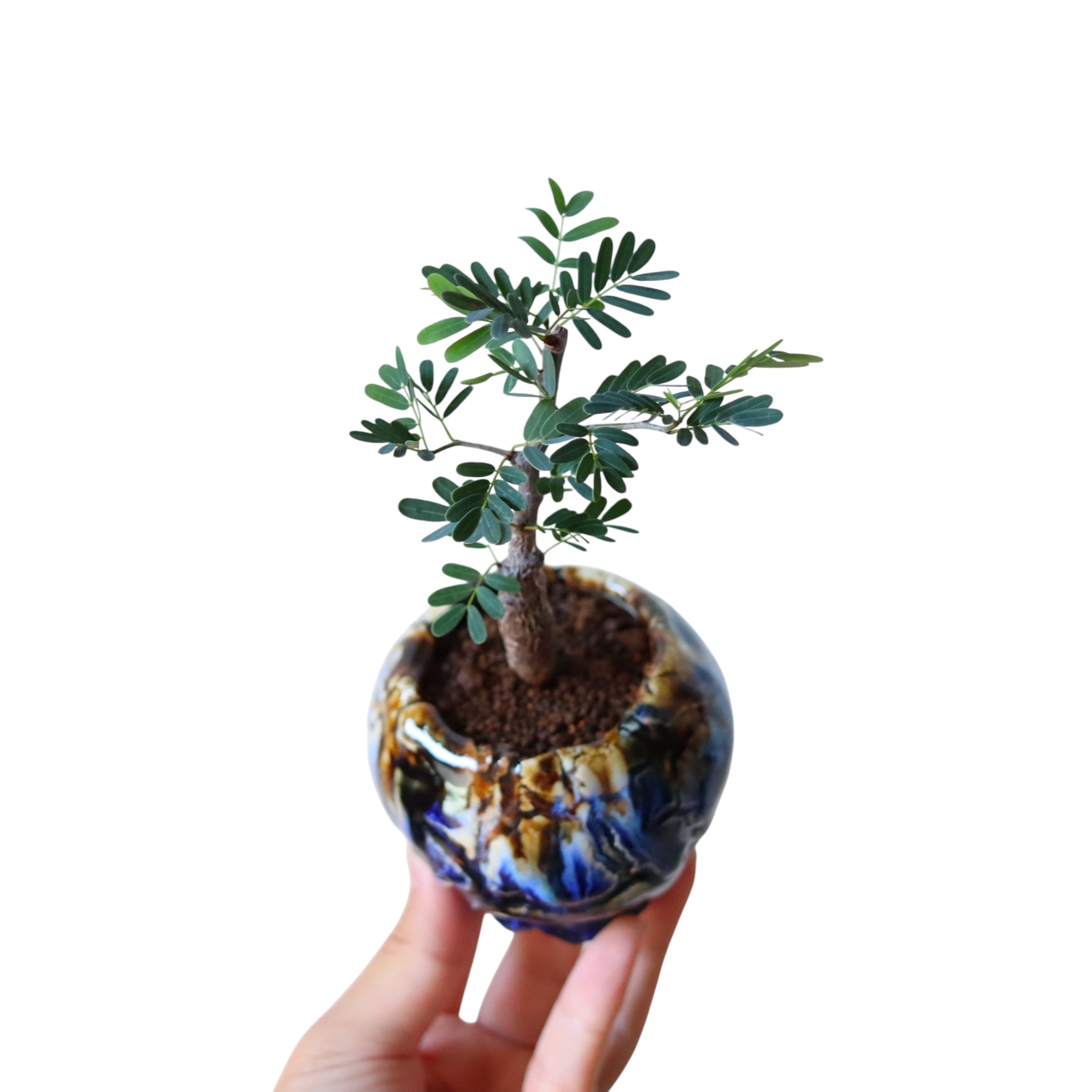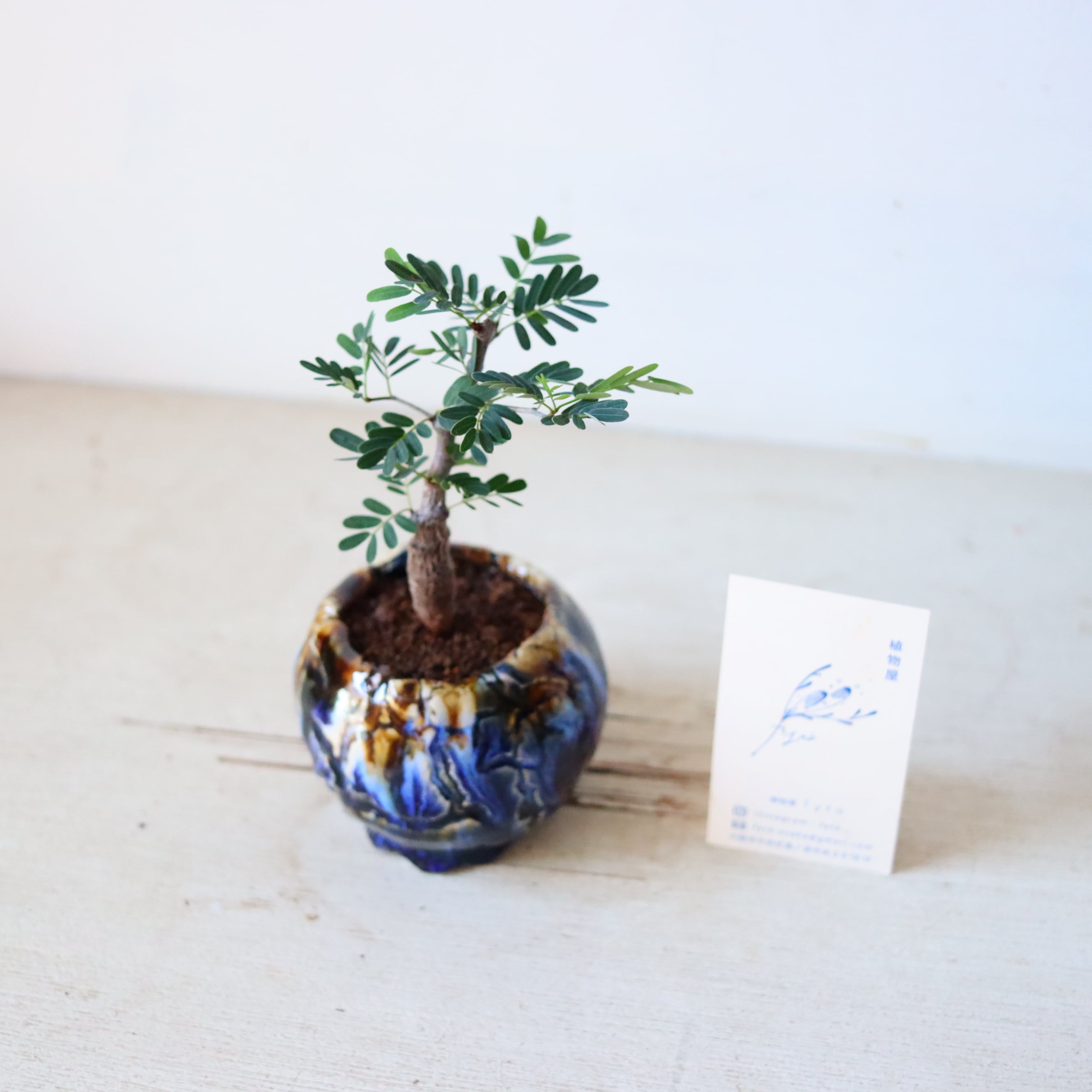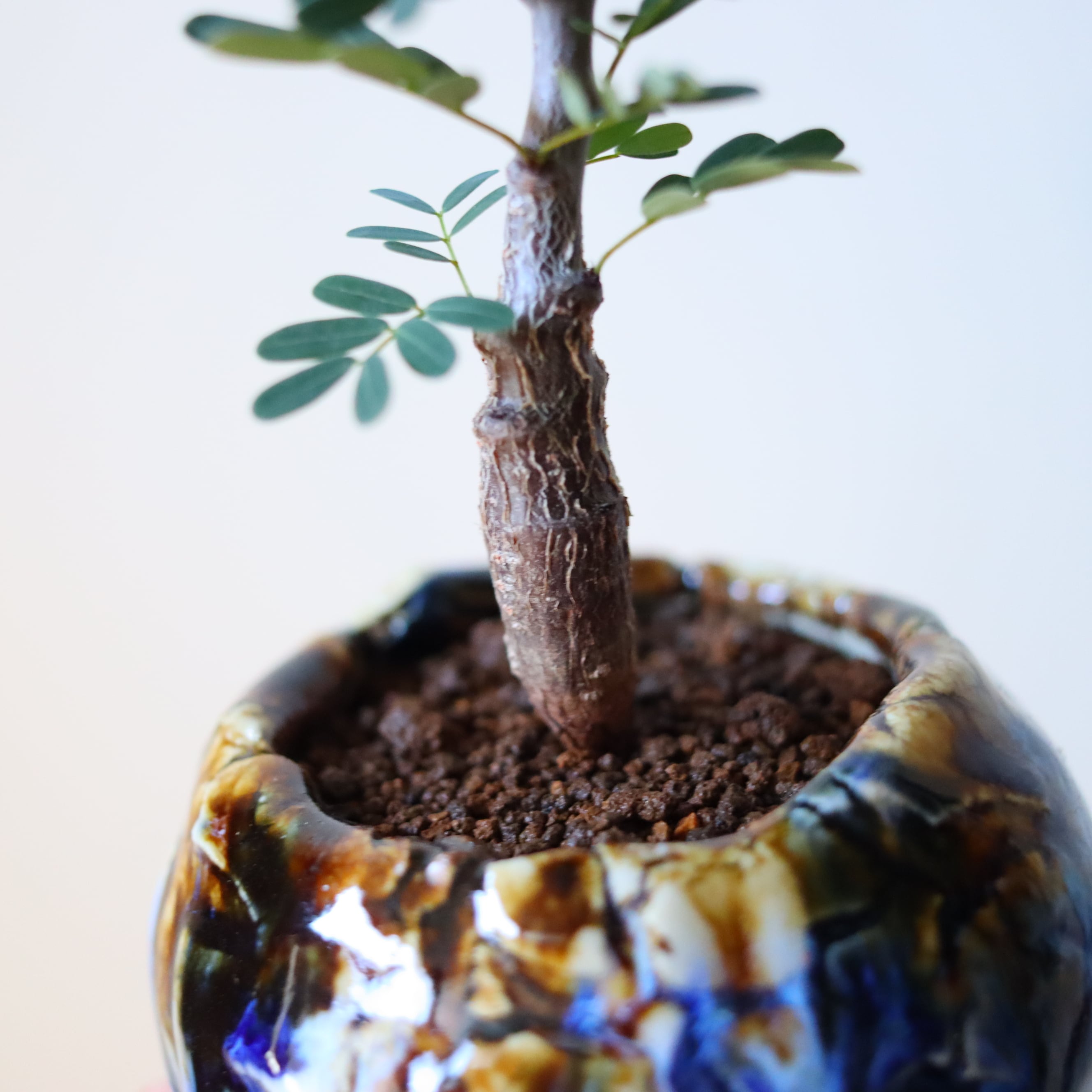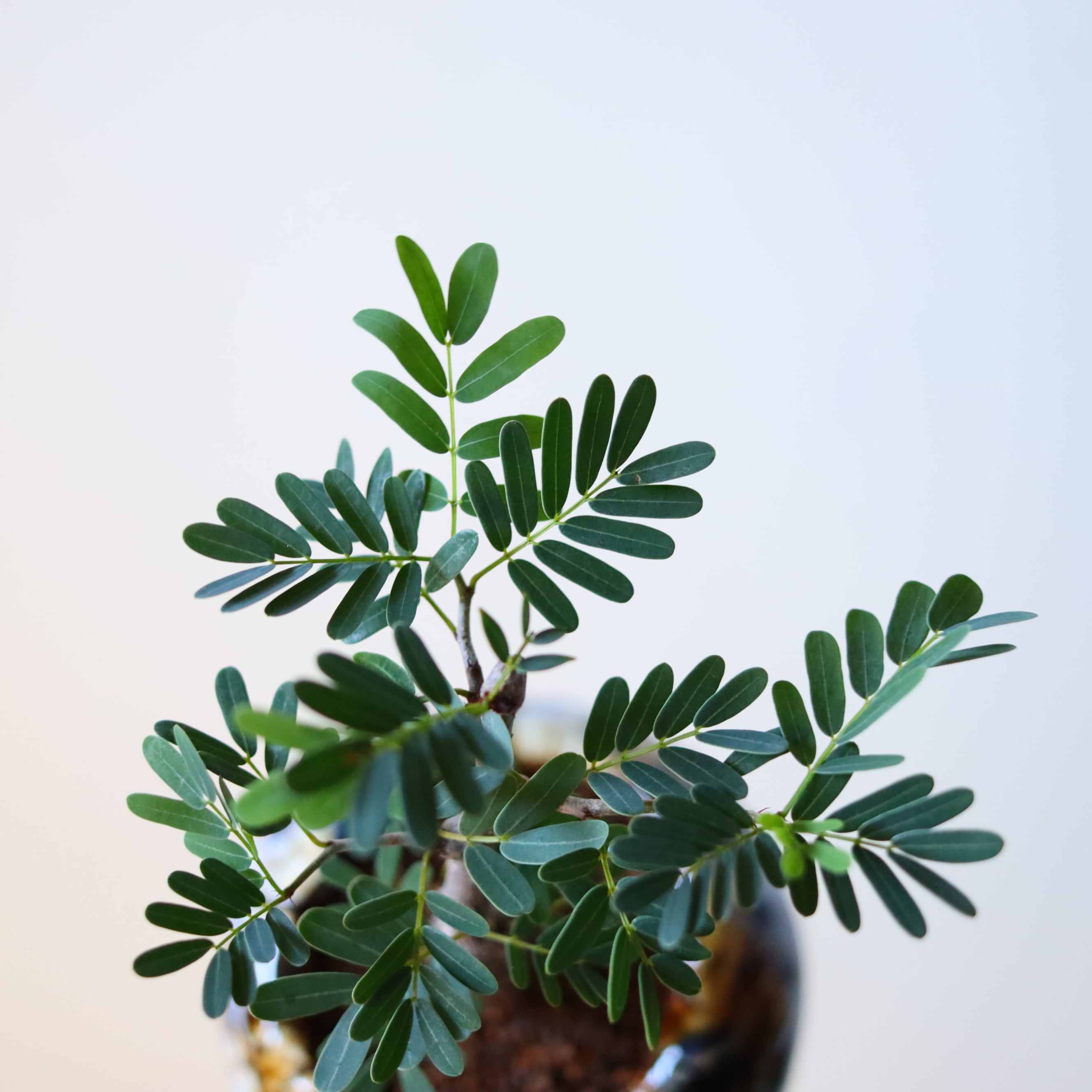 渋くてゴツゴツした塊根からかわいい葉っぱを生やしている塊根植物、メリディオナリス。こちらはその赤ちゃん株です。ベビーでかわいい。豆科の葉っぱなので、夜になると葉っぱをぱたんと閉じます。それもすごく可愛らしいです。ゆっくり大きく育ててあげてください。