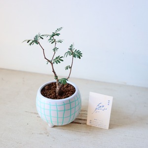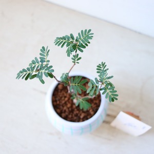 渋くてゴツゴツした塊根からかわいい葉っぱを生やしている塊根植物、メリディオナリス。こちらはその赤ちゃん株です。ベビーでかわいい。豆科の葉っぱなので、夜になると葉っぱをぱたんと閉じます。それもすごく可愛らしいです。ゆっくり大きく育ててあげてください。