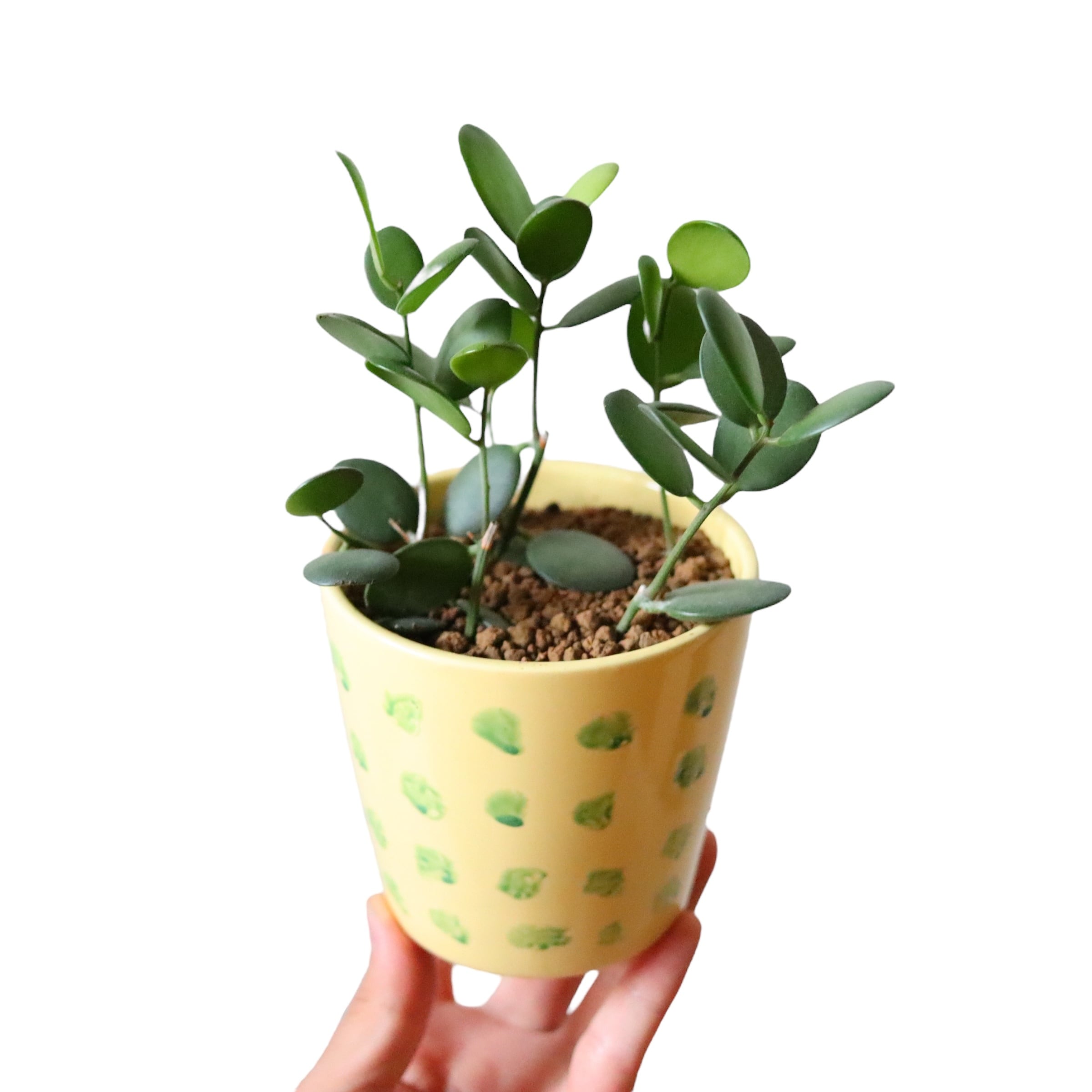 太鼓のような丸く肉厚な葉っぱがかわいらしい人気の植物です。ぴょこぴょこと飛び出すシルエットが楽しげです。多肉植物なので乾燥に強く、育てやすいのでおすすめです。