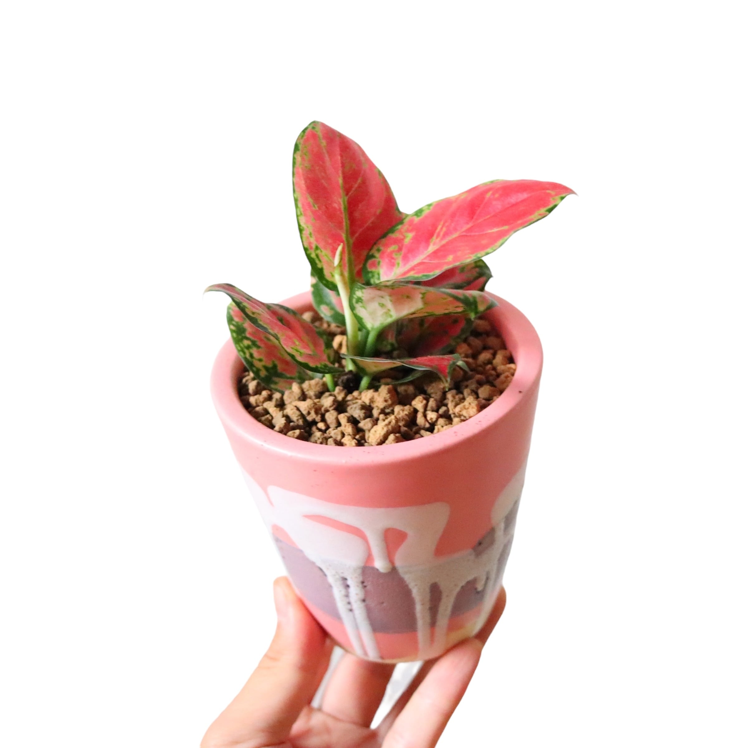 アグラオネマは迷彩柄の葉っぱが特徴の植物です。この種類はピンク美しい班がはいっており、とてもキュートです。お部屋のインテリアグリーンにぴったりの観葉植物です。