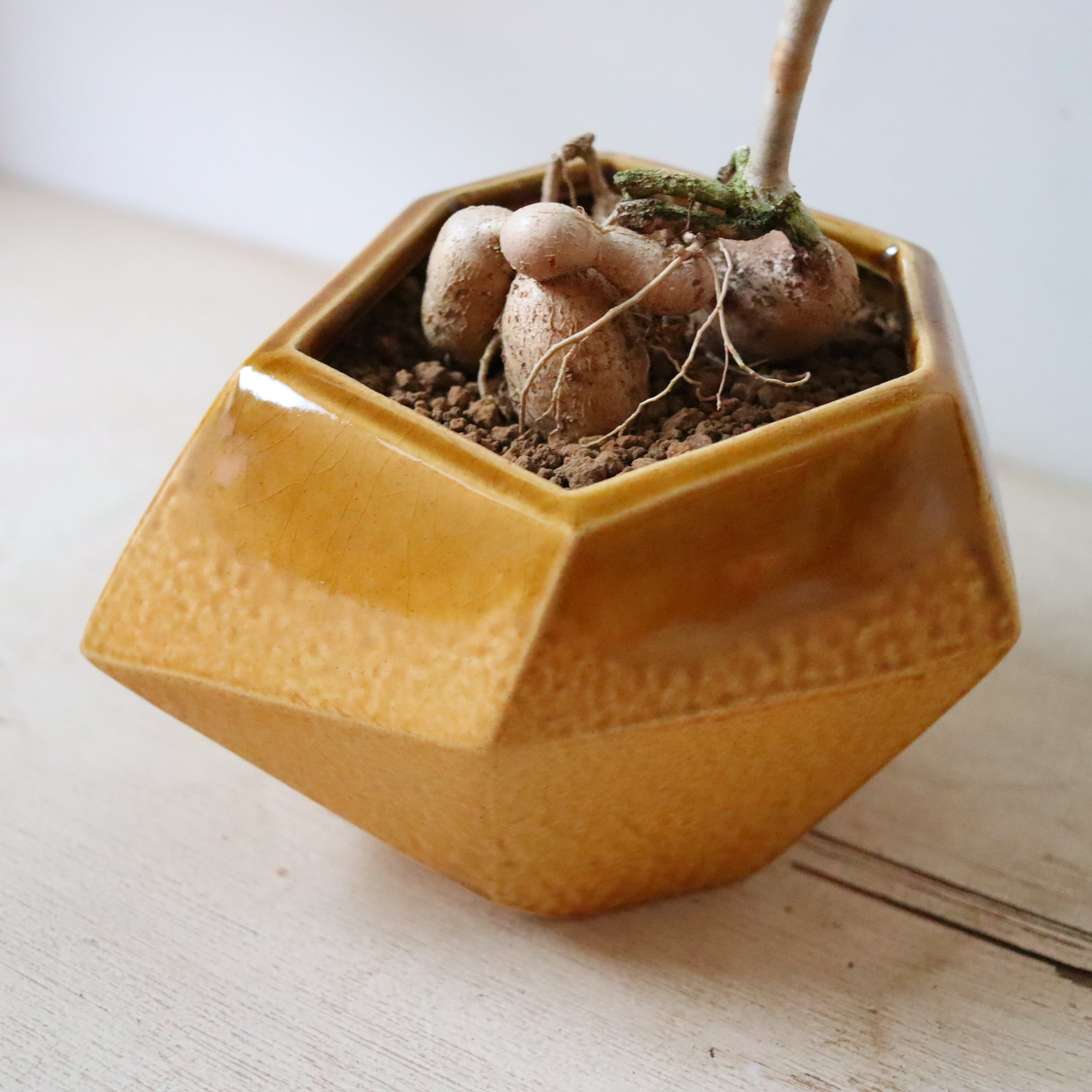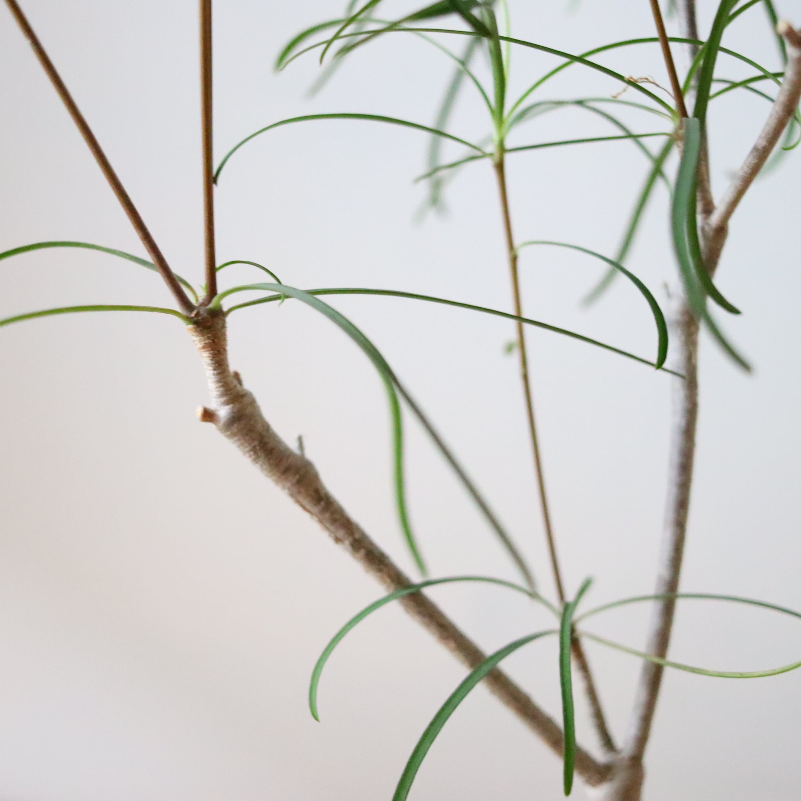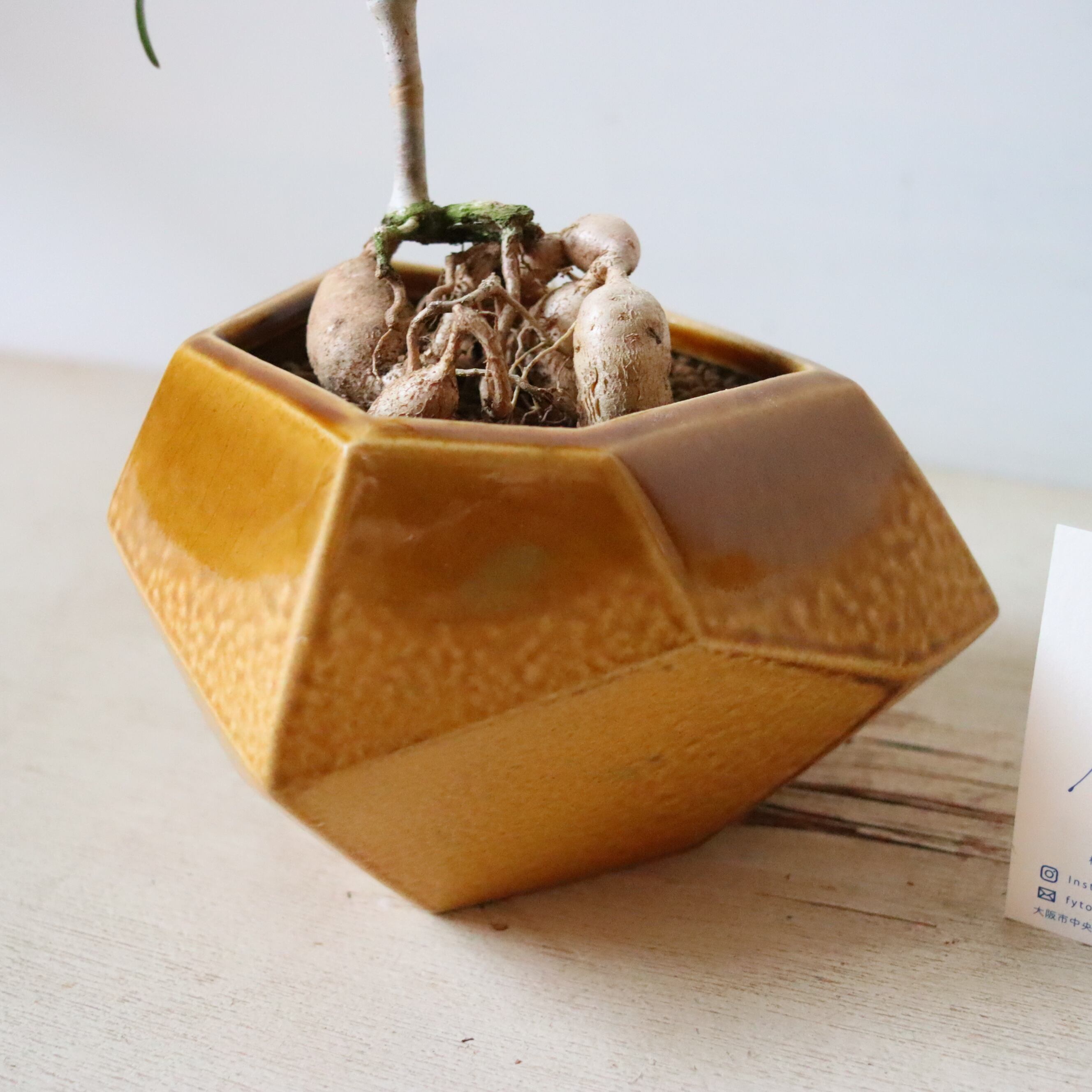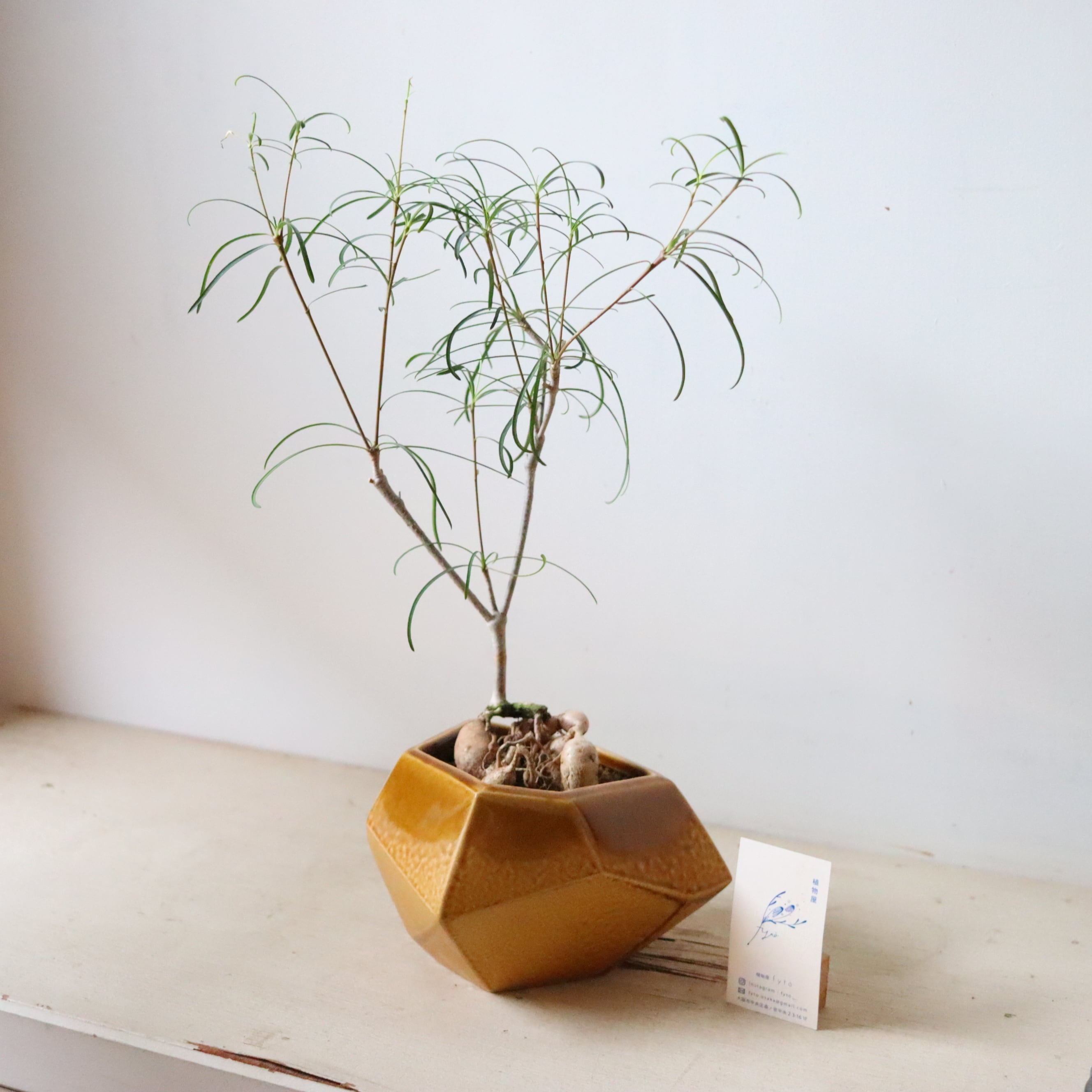 なんて美しい塊根植物…!細長い葉っぱはクルンと巻いていてとてもエレガント。白くてツヤッとした塊根の木肌も、全体のシルエットも本当にビューティフルです。
