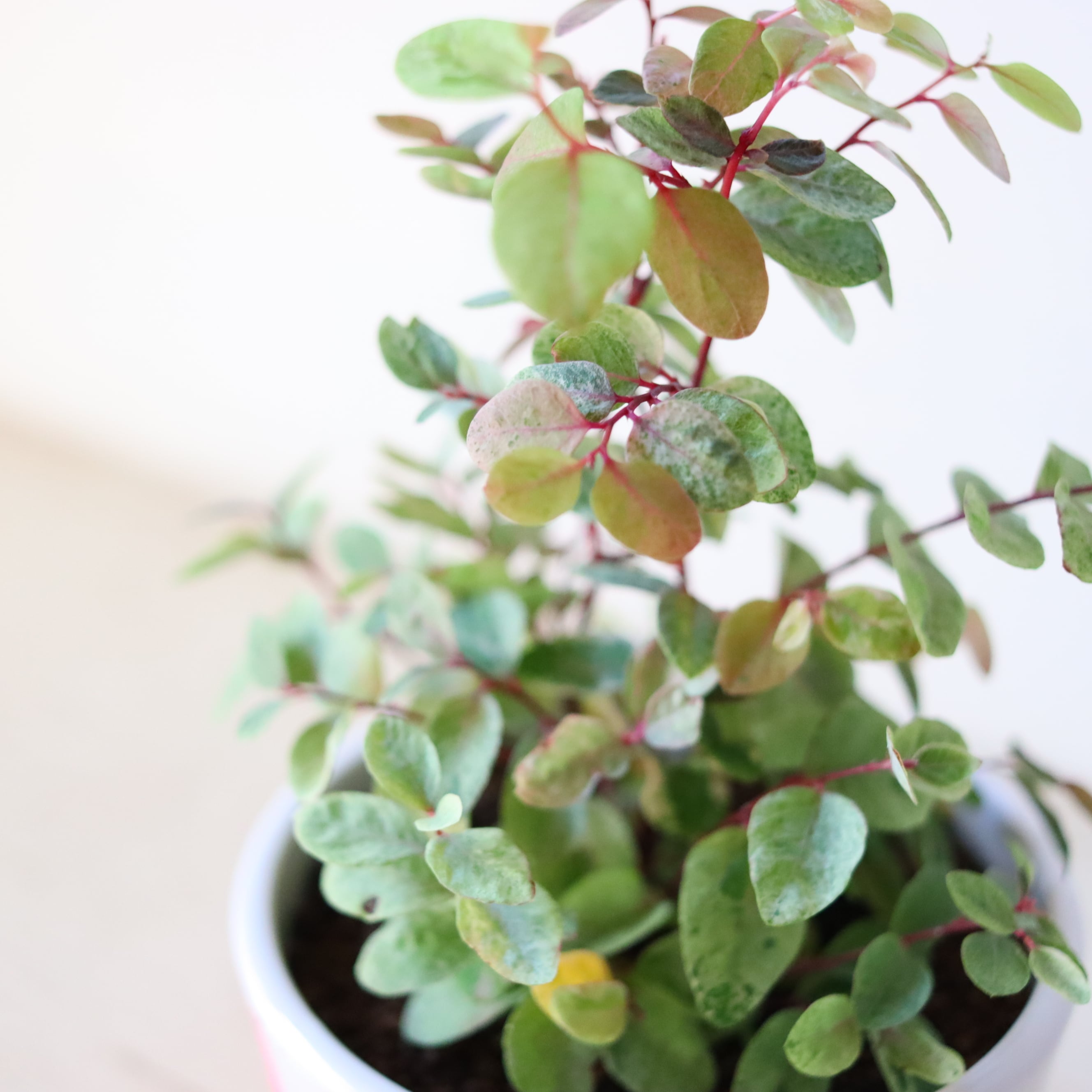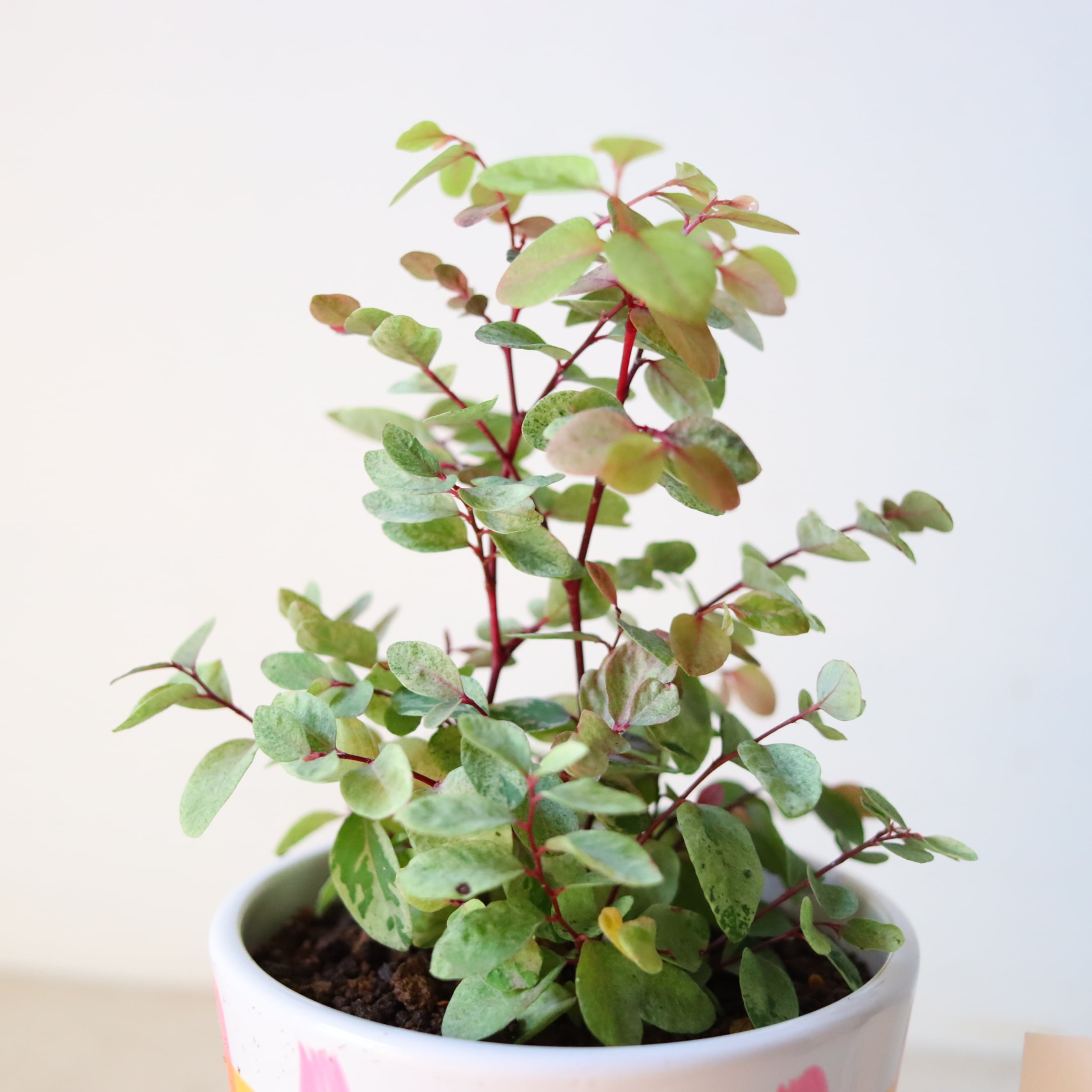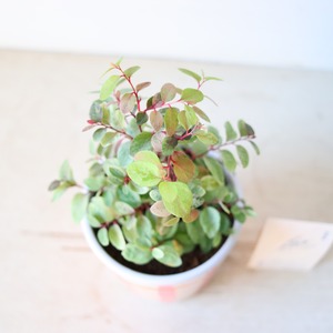 丸い葉っぱの小さな木、すごくかわいいです。美しいランダムな斑入りの葉っぱが生み出すなんともいえない雰囲気、本当に見ていて嬉しくなる植物です。調子を崩したら当分お外に出して毎日お水をあげると元気になります。