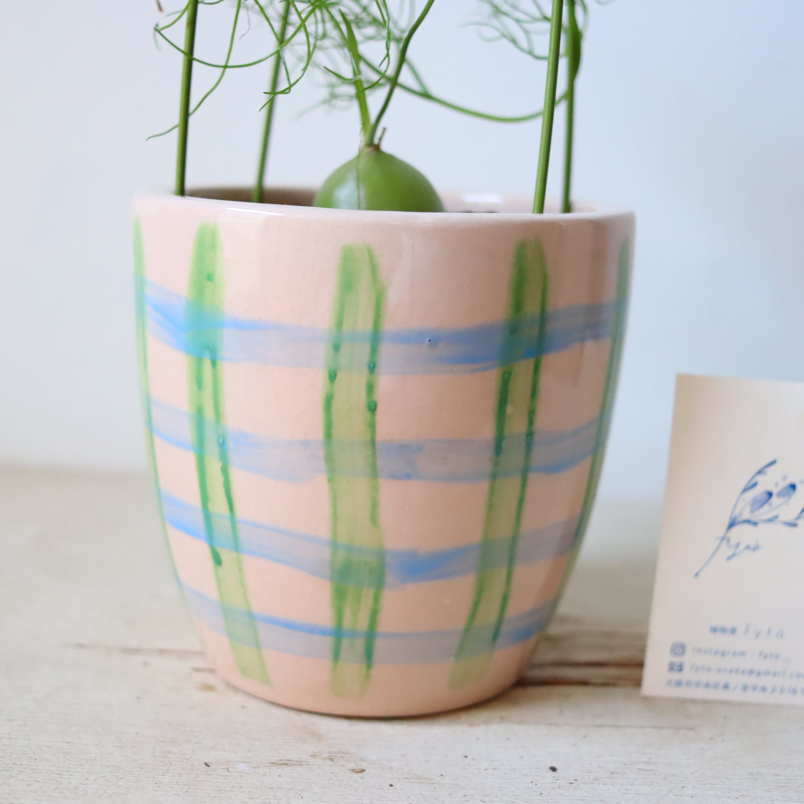 サイズ : 縦13㎝ × 横12㎝ (鉢の大きさです。名刺サイズのカードとの比較を参考にしてください。)