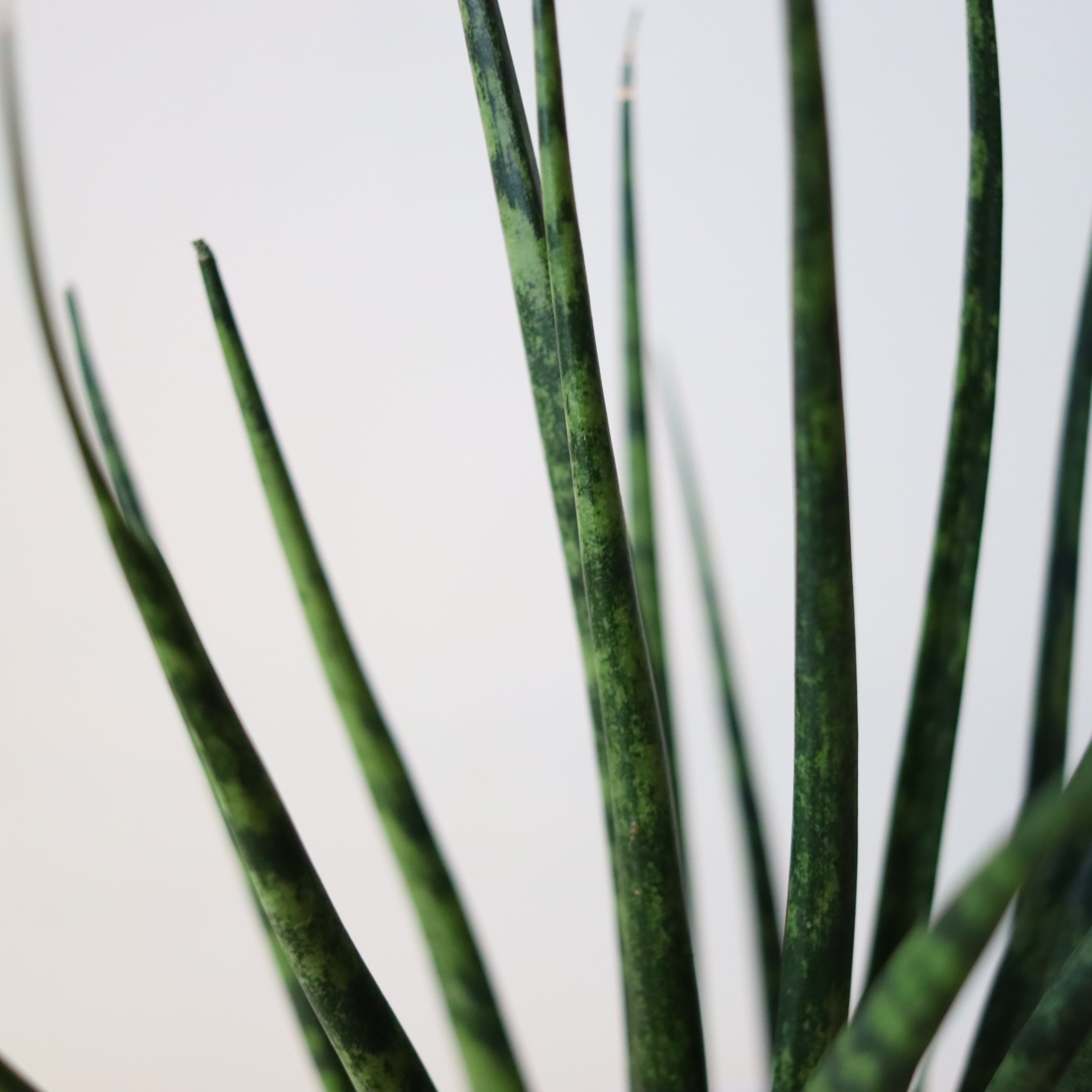 オブジェのような植物、サンスベリアです。立体感があり、硬くてツルツルでまるで人工物のようです。ゼブラ柄の模様も格好良く、お世話も簡単なのでおすすめです。