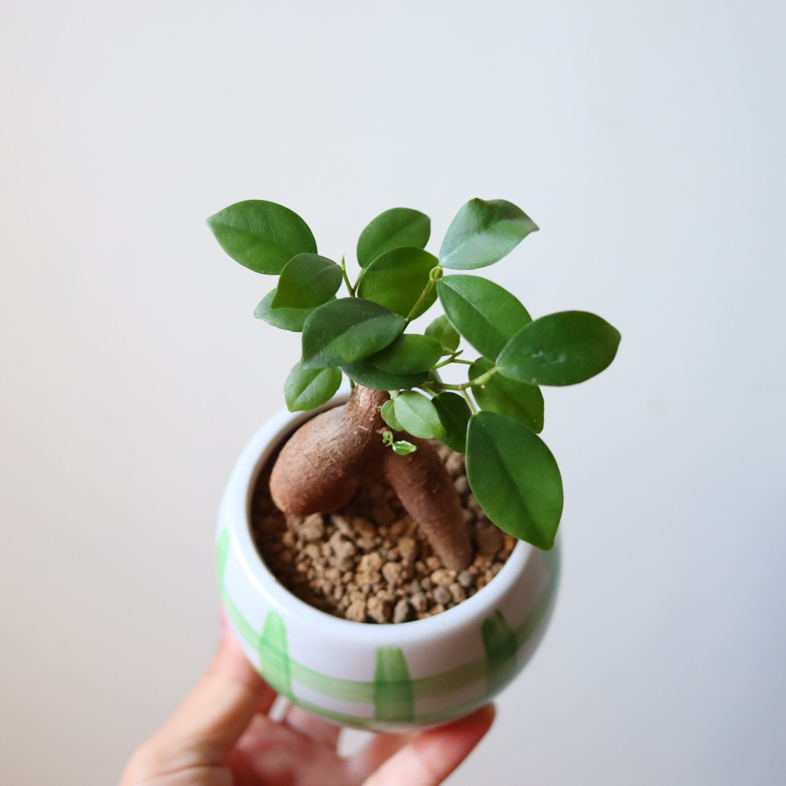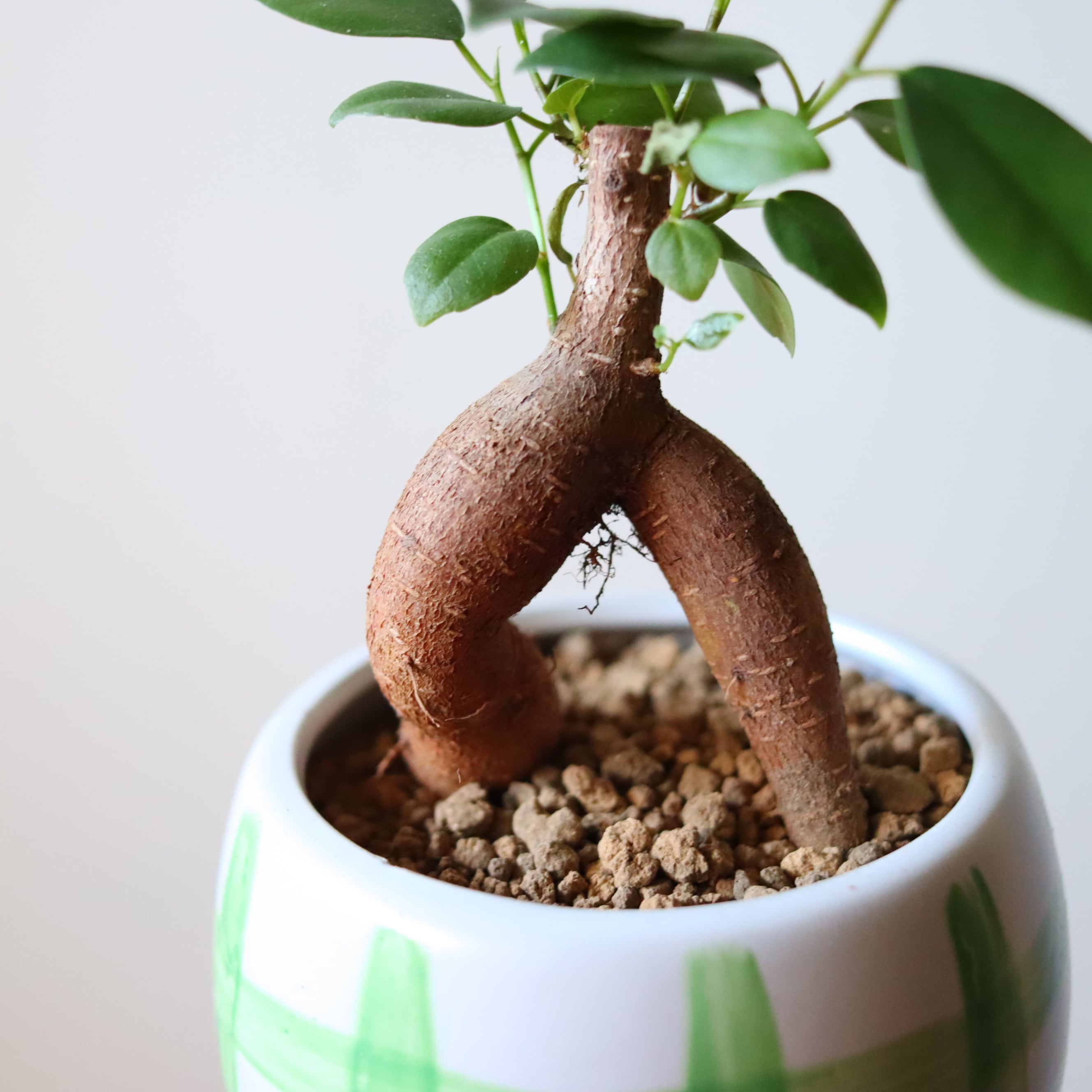足元のかわいいガジュマルです。ガジュマルはすごく丈夫で育てやすく、お世話が苦手な方にもおすすめです。