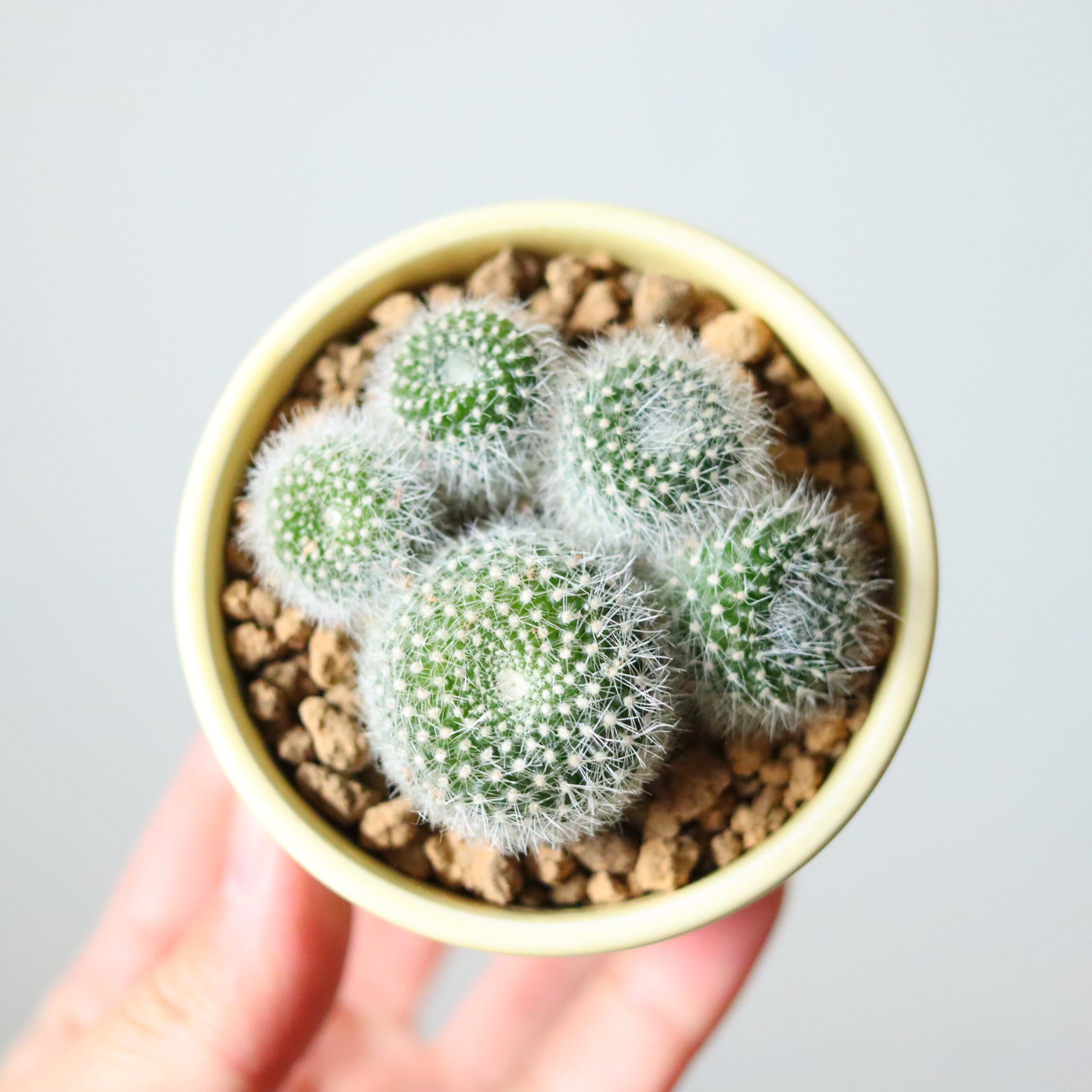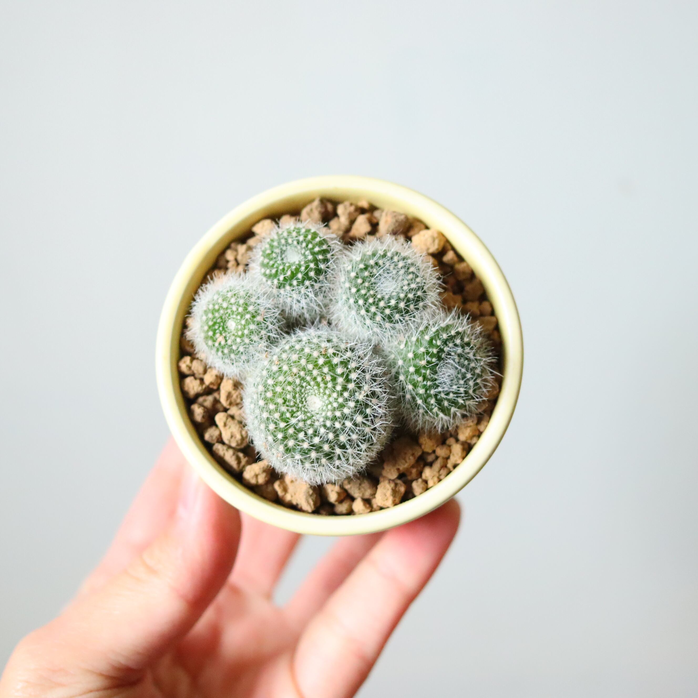 肉球のように仕立てられたかわいいサボテン。にくきゅうという名前で仕入れましたが、おそらく雪晃だとおもいます。サボテンのこの絶妙な凹み具合、撫でたくなりますね。トゲがやわらかいので撫でても大丈夫です。赤い立派なお花を咲かせてくれます。