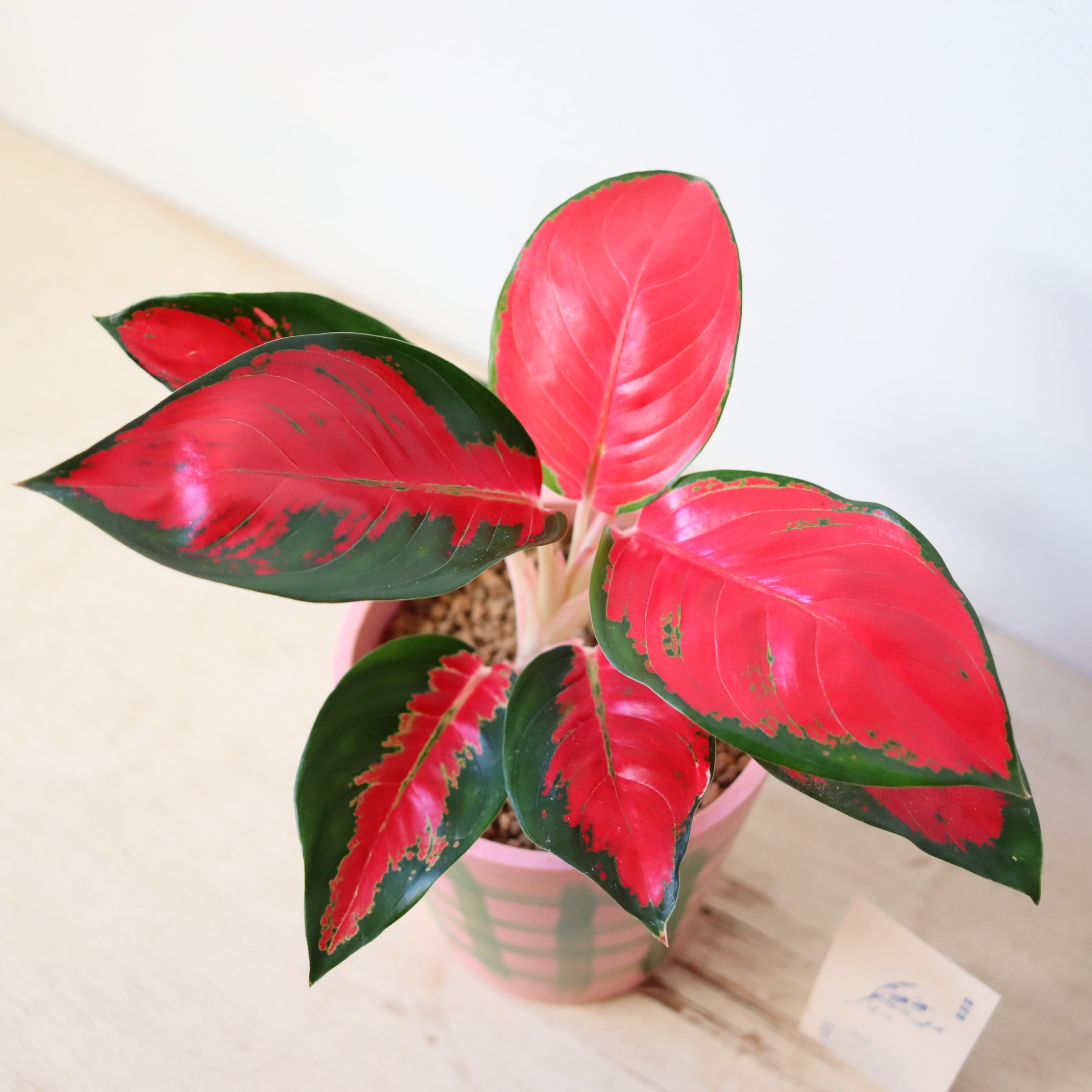 アグラオネマは迷彩柄の葉っぱが特徴の植物です。この種類はピンクの班がはいっており、とてもキュートです。お部屋のインテリアグリーンにぴったりの観葉植物です。