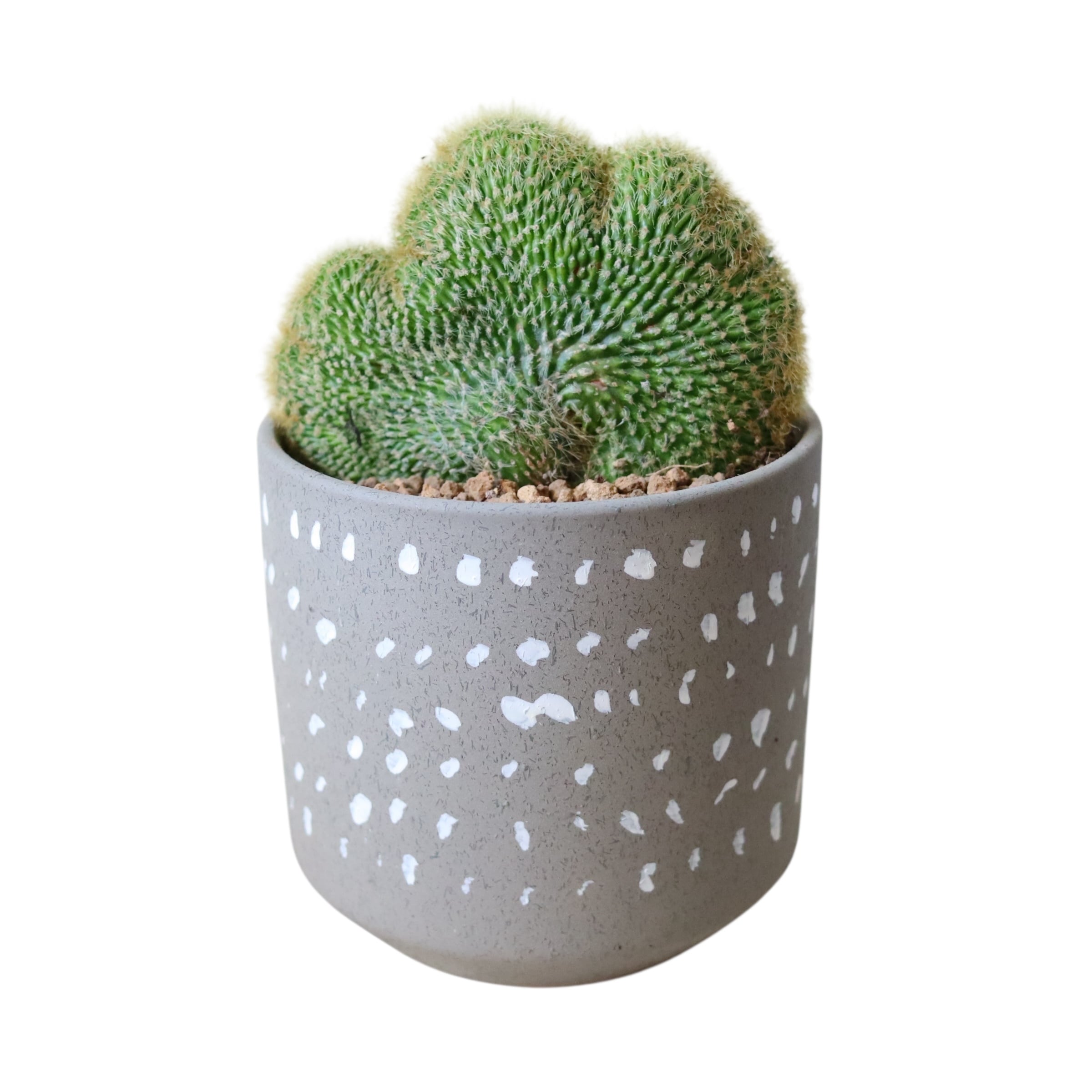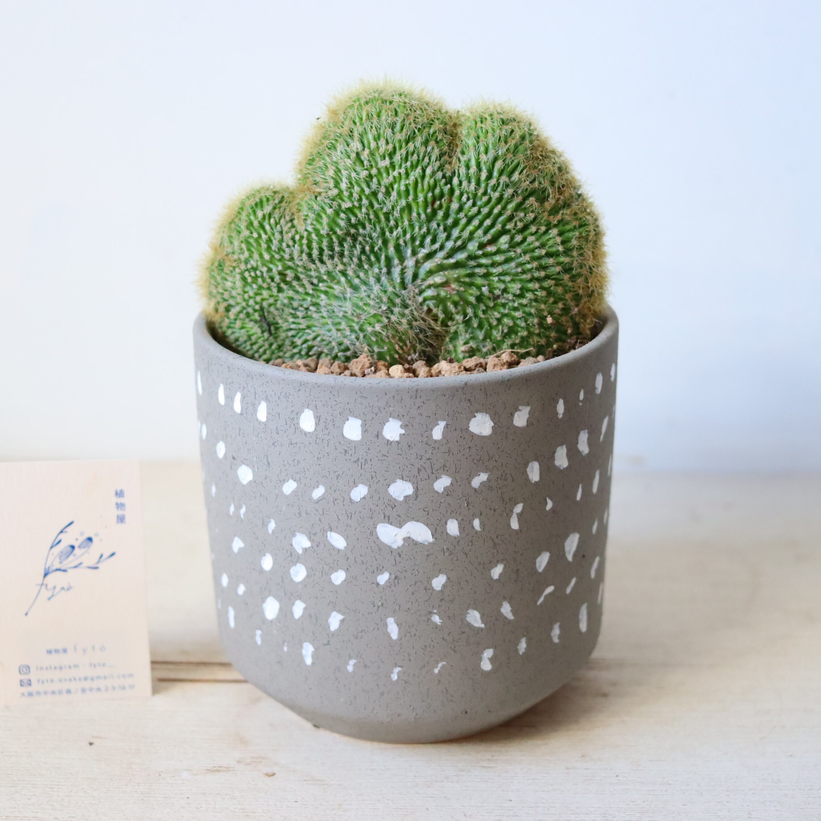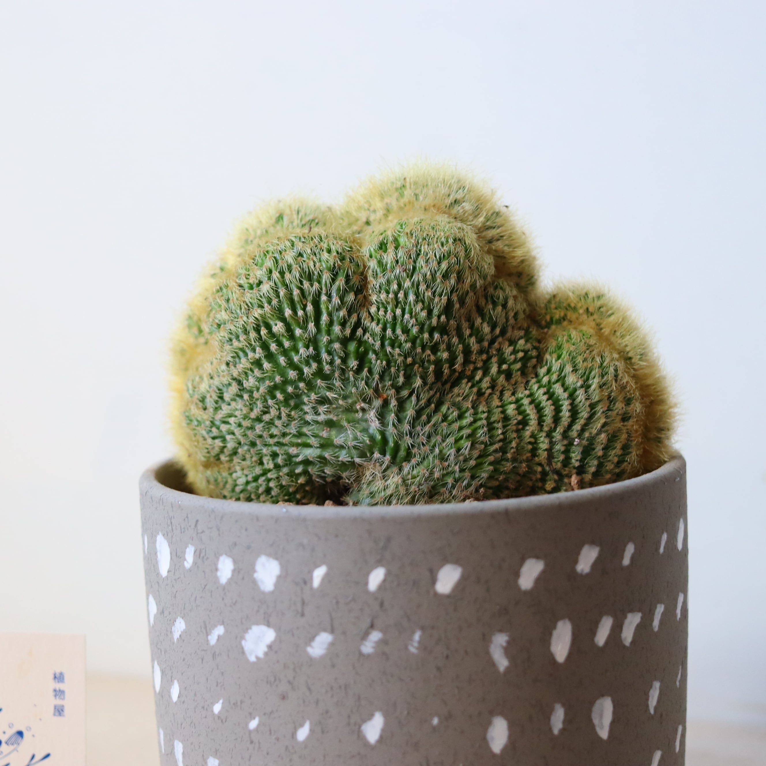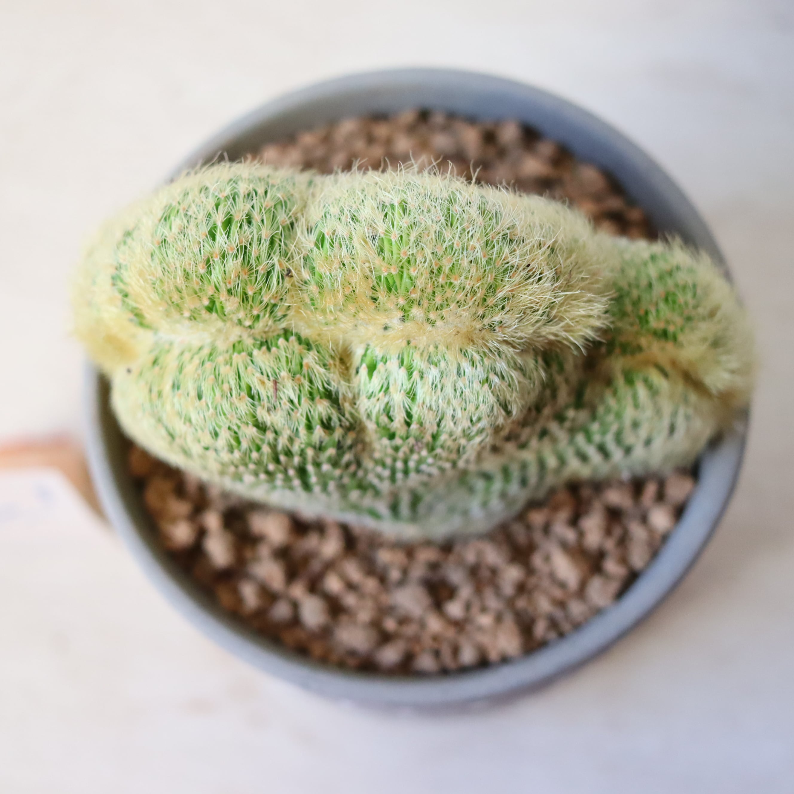 とっても珍しい、金晃丸の綴化した姿です。けっこう大きいです。すごい、ぬいぐるみみたいな肉厚感。もふもふで重量感があって唯一無二のかわいらしさですね。お水もほとんどいらないのでお世話が簡単です。大きさは10円玉との比較でイメージしてください。