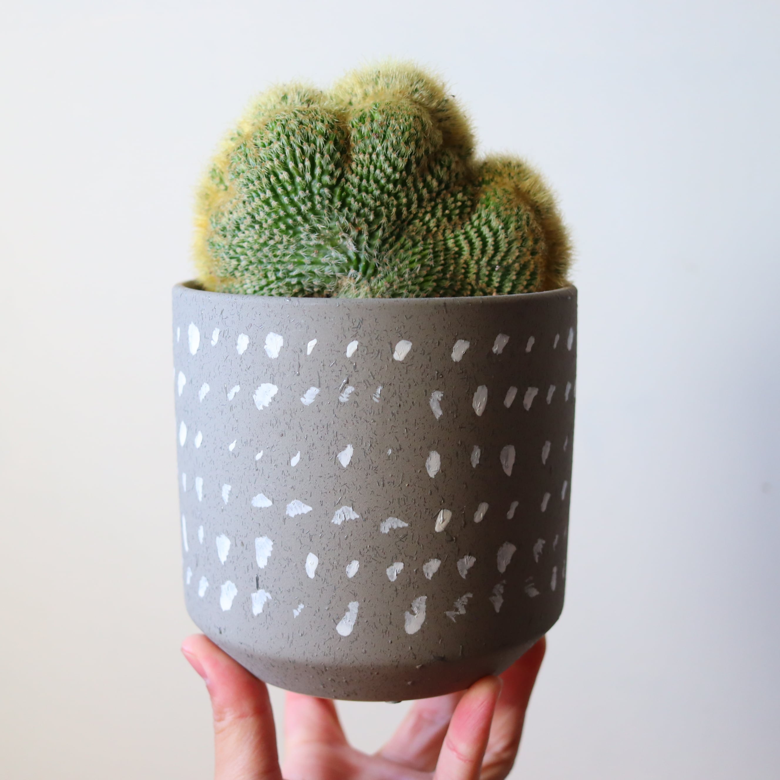 サイズ : 縦14㎝ × 横13㎝ (鉢の大きさです。名刺サイズのカードとの比較を参考にしてください。)