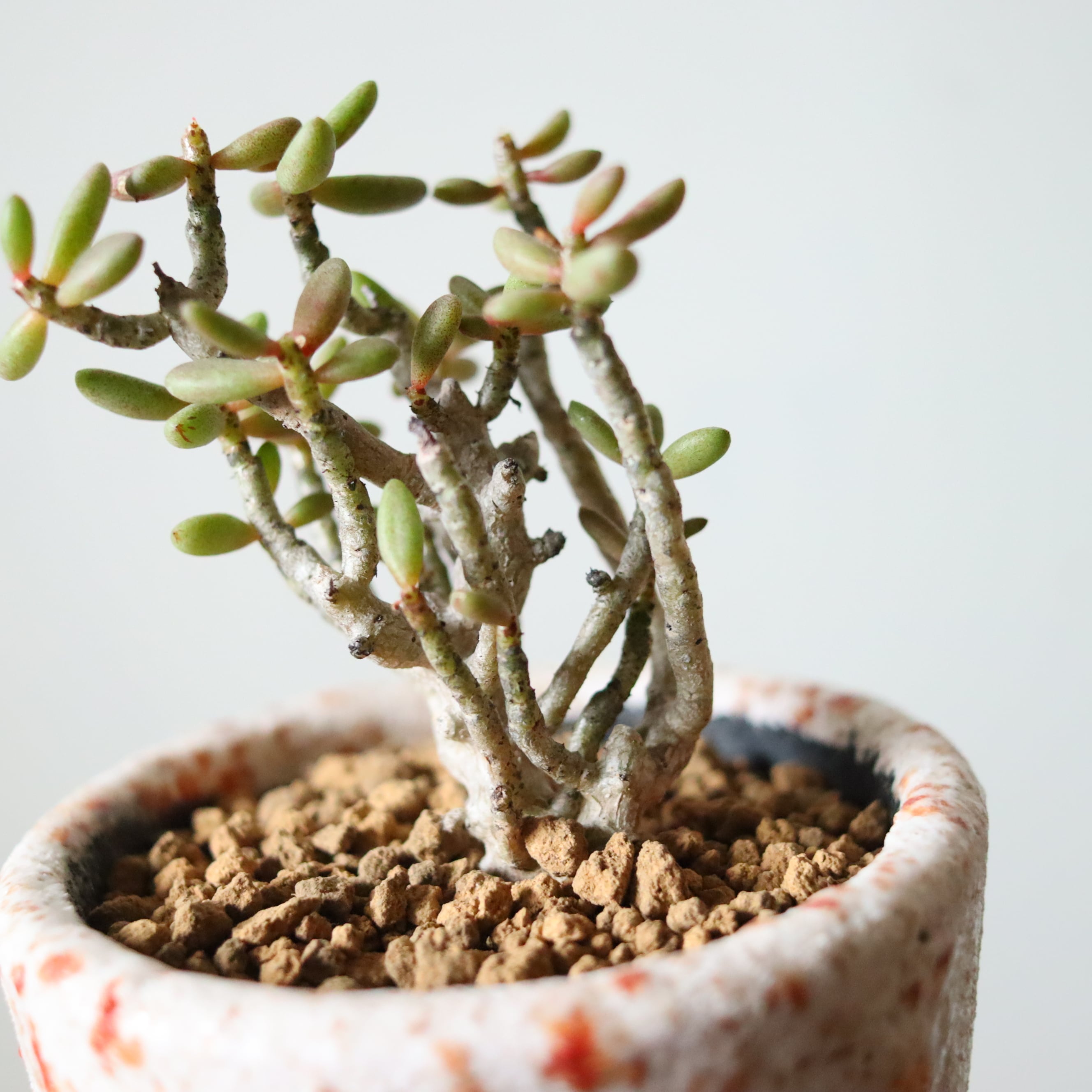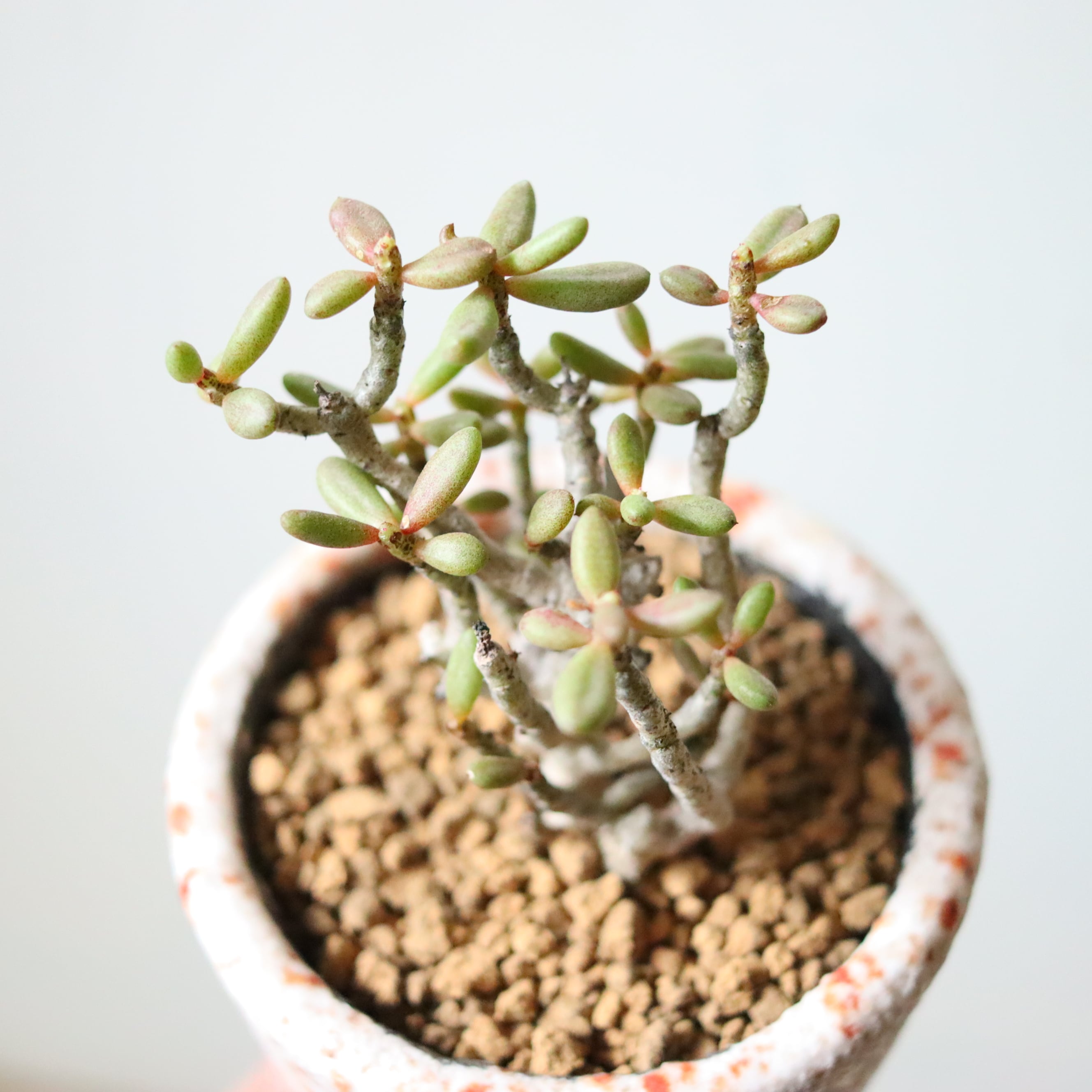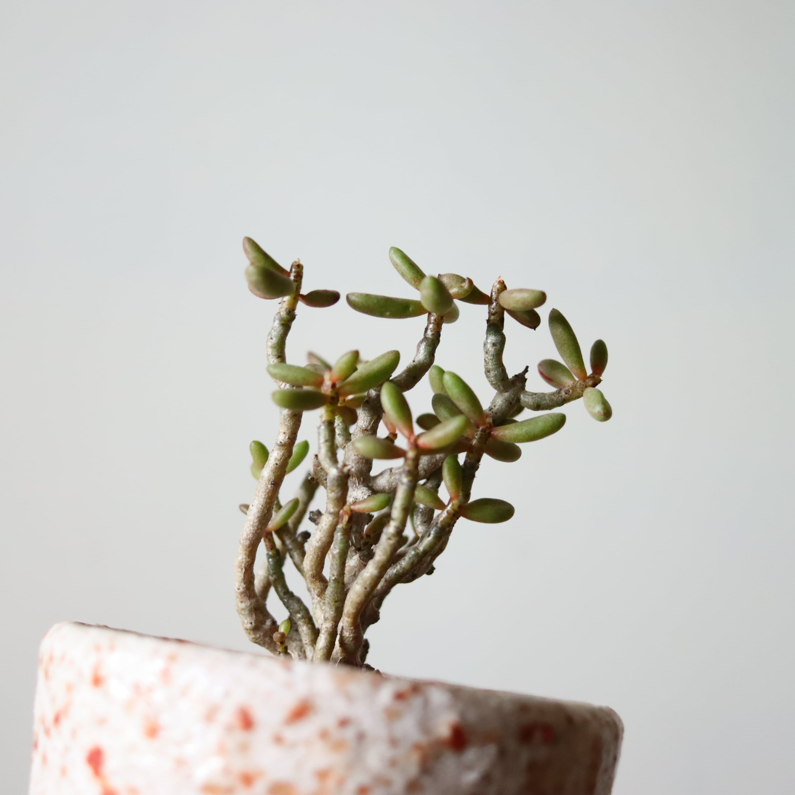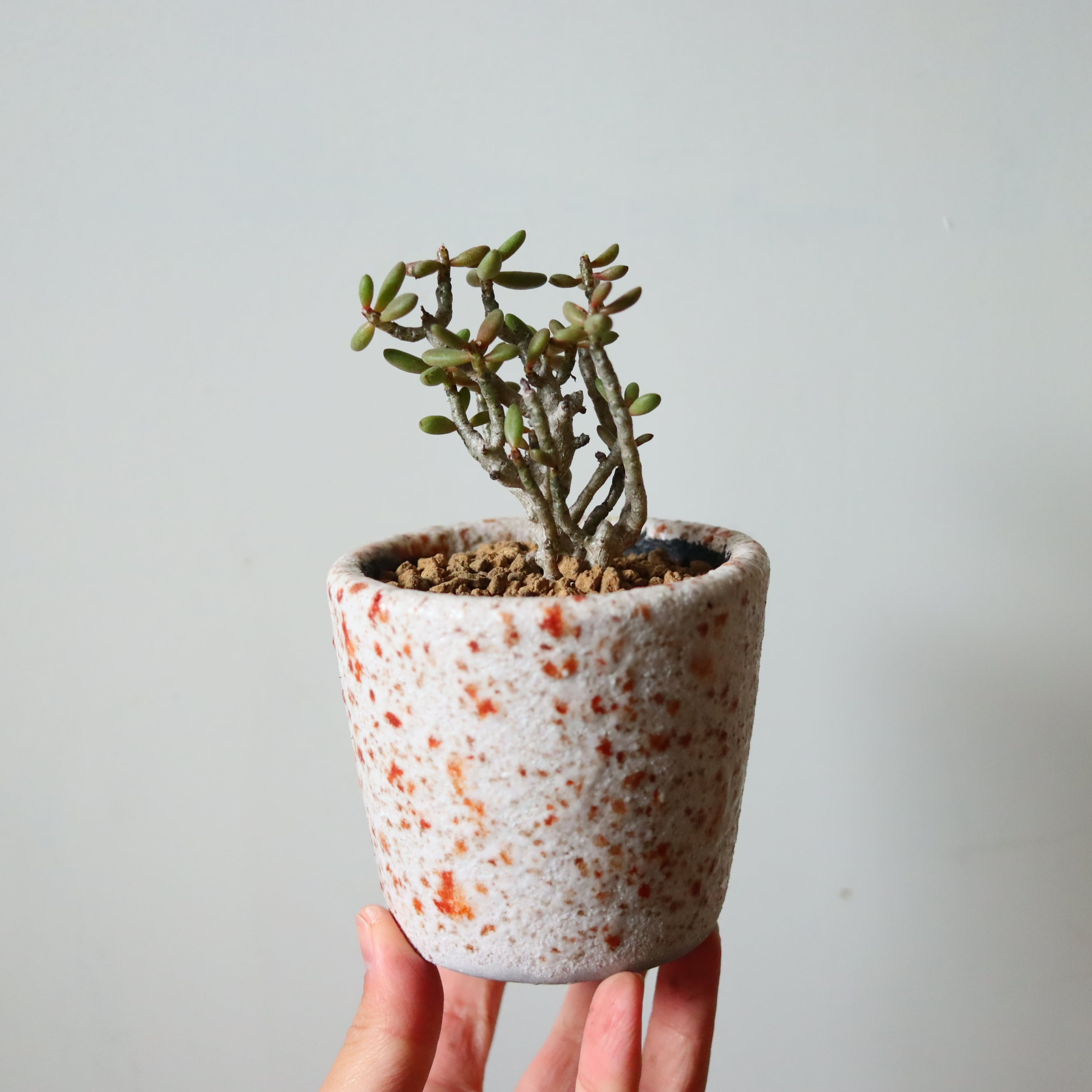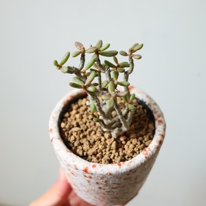 不思議なシルエットの植物です。ぷりぷりの葉っぱ、絶妙な色合いでかわいらしいですね。多肉植物なので頻繁にお水をあげる必要はありません。