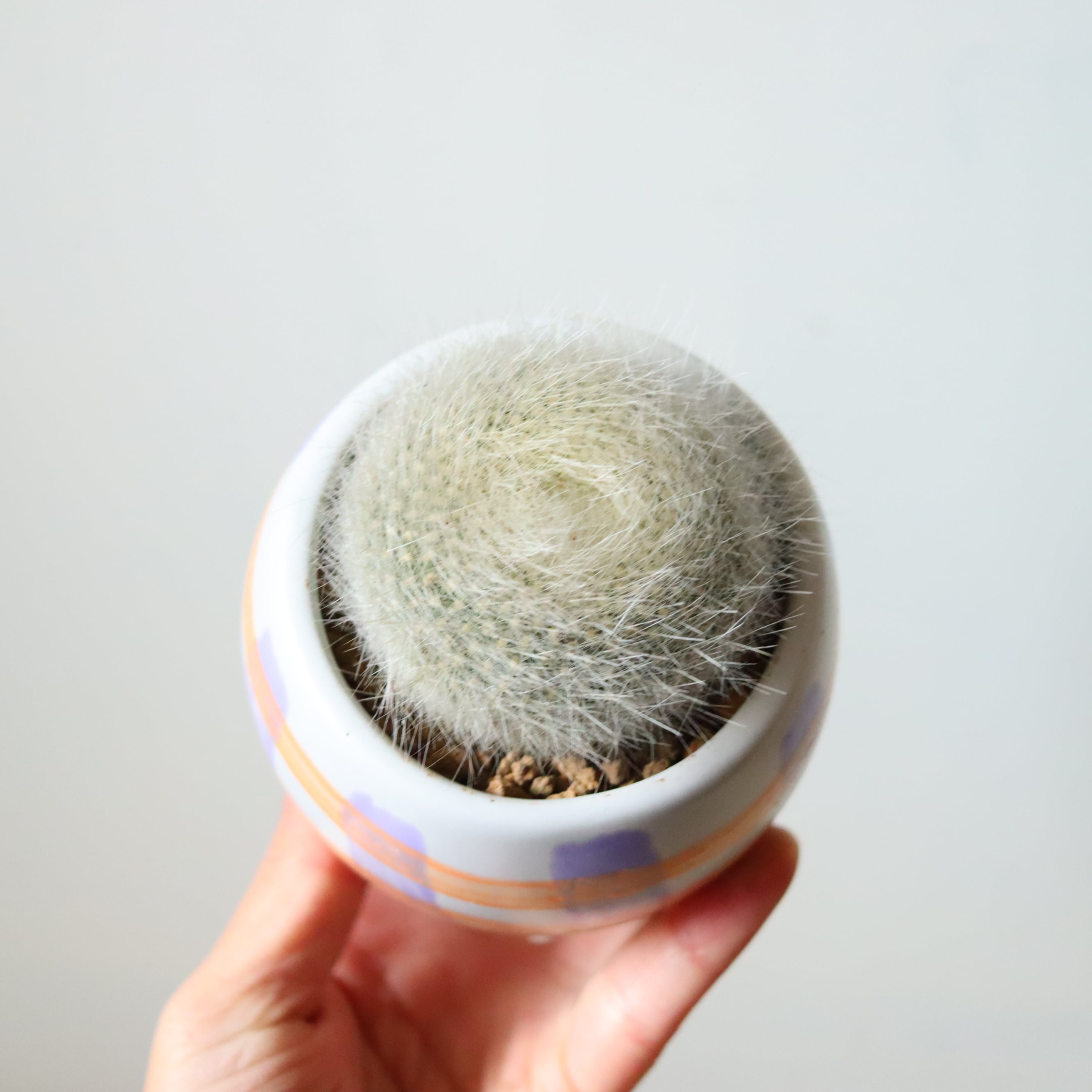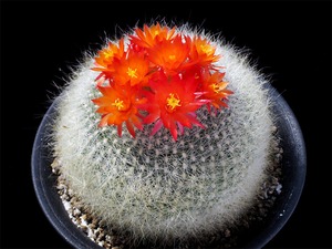 おまんじゅうのような、フニャっとした形に、やわらかいトゲが特徴の雪晃。この絶妙な凹み具合、撫でたくなりますね。トゲがやわらかいので撫でても大丈夫です。赤い立派なお花を咲かせてくれます。