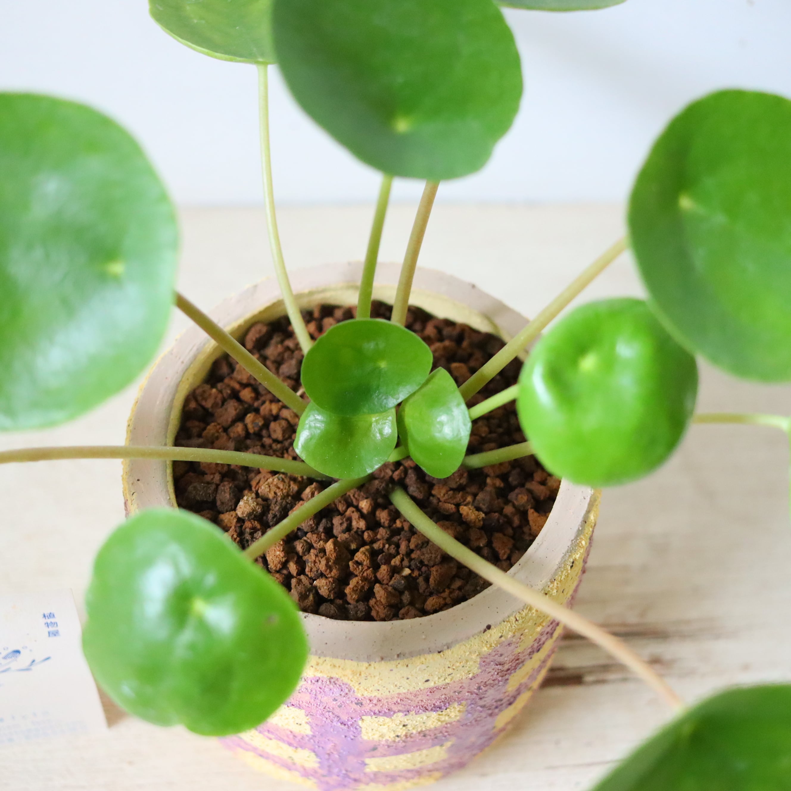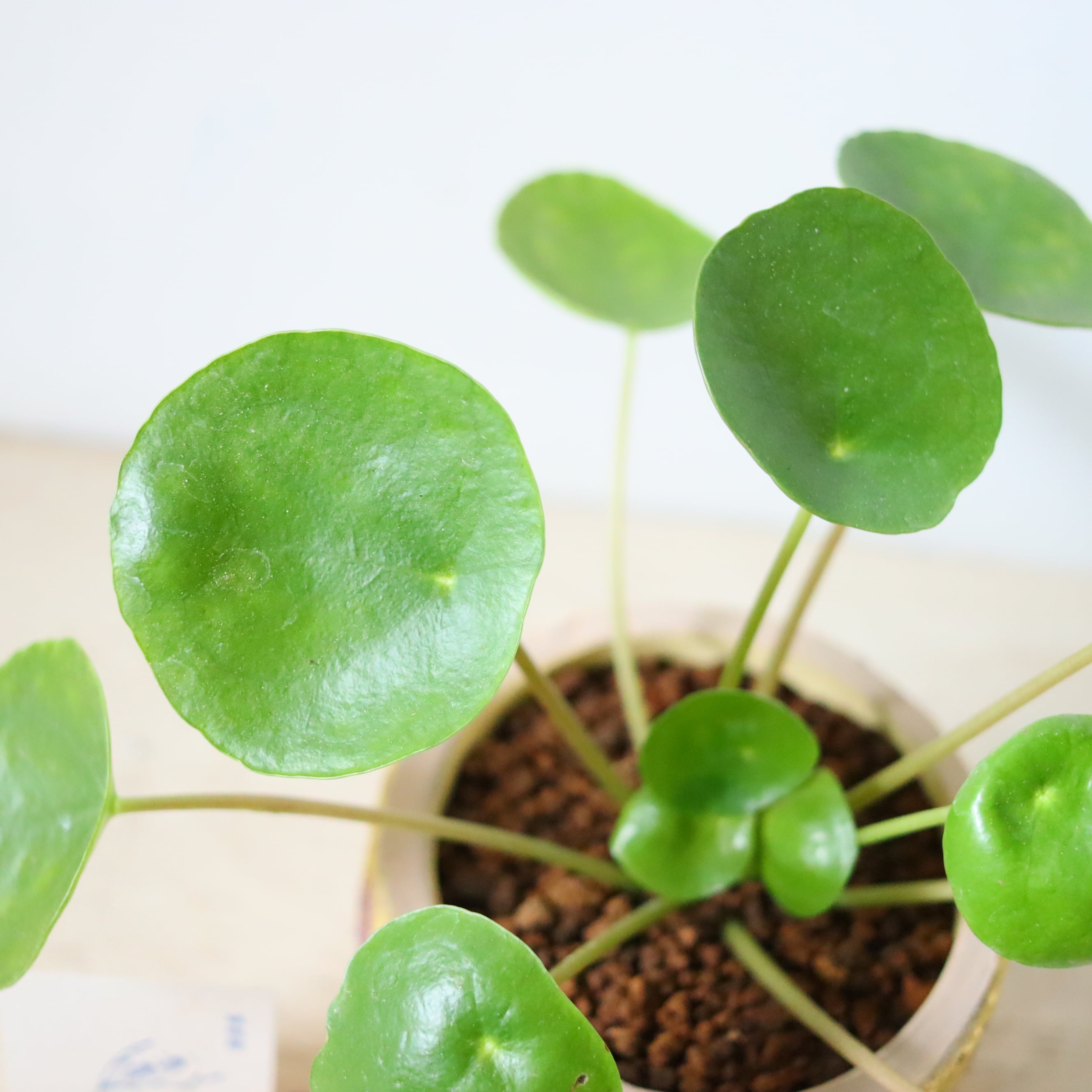 不思議なまんまるな葉っぱです。かわいい。放射状に立体的に成長する姿も面白く、人気の植物です。