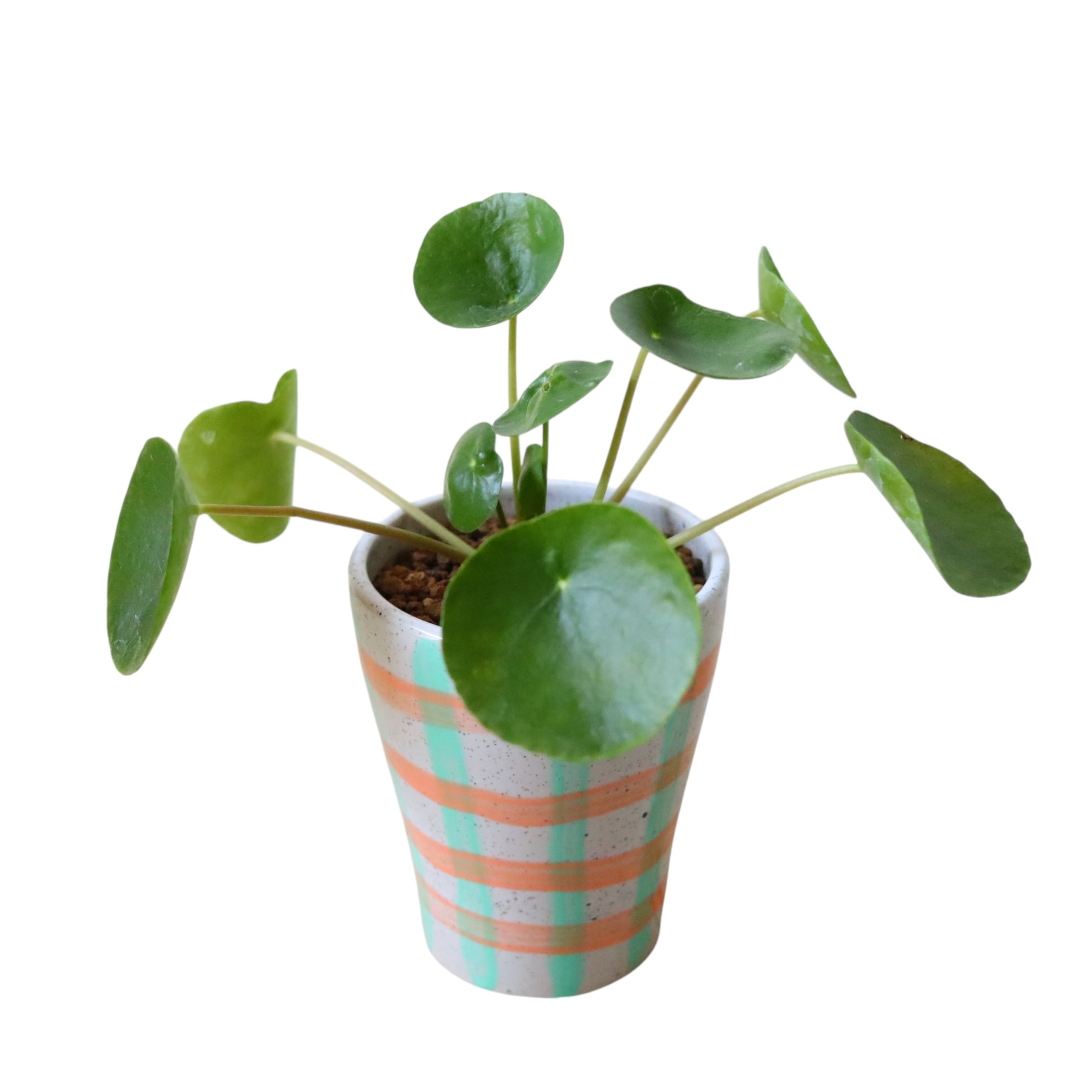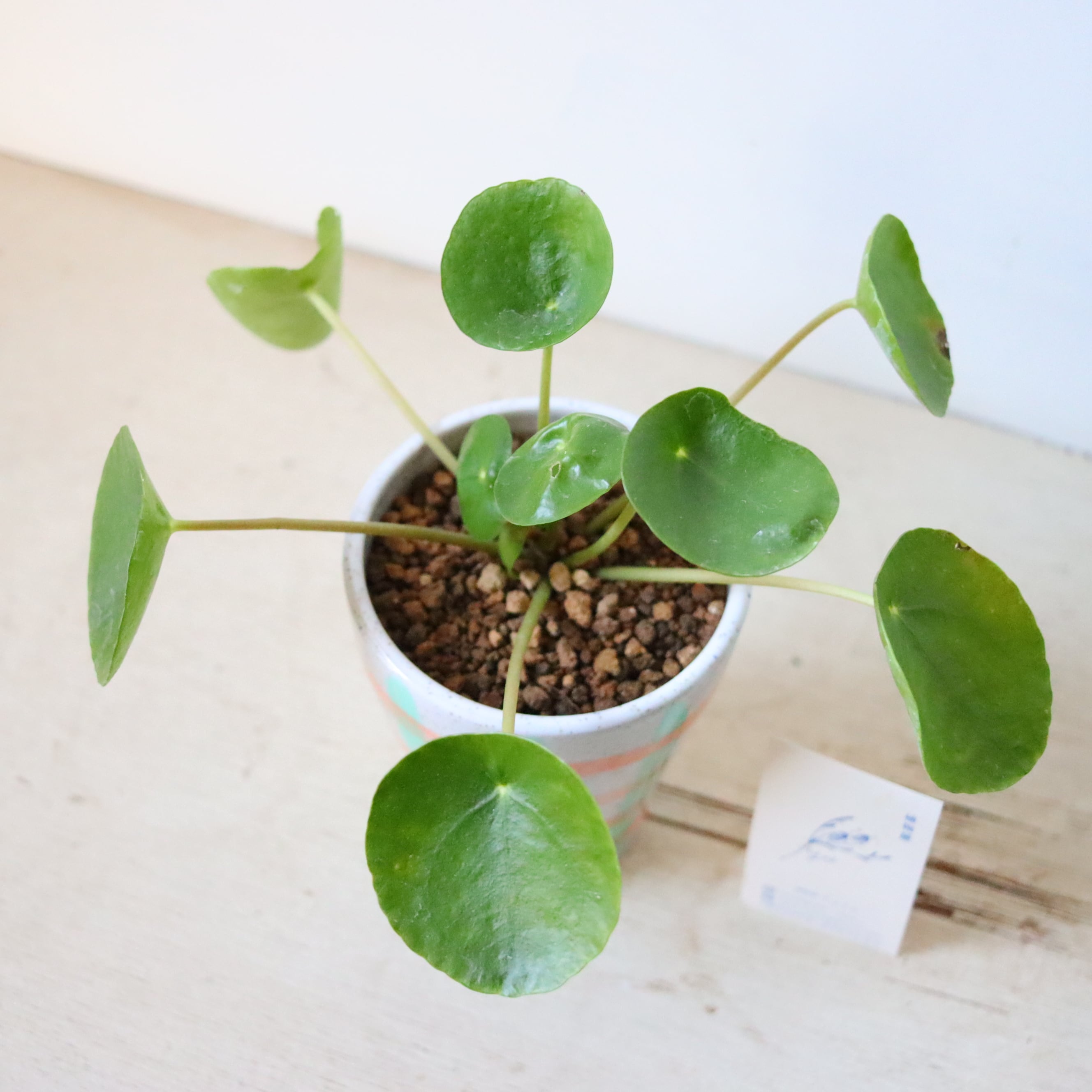 不思議なまんまるな葉っぱです。かわいい。放射状に立体的に成長する姿も面白く、人気の植物です。