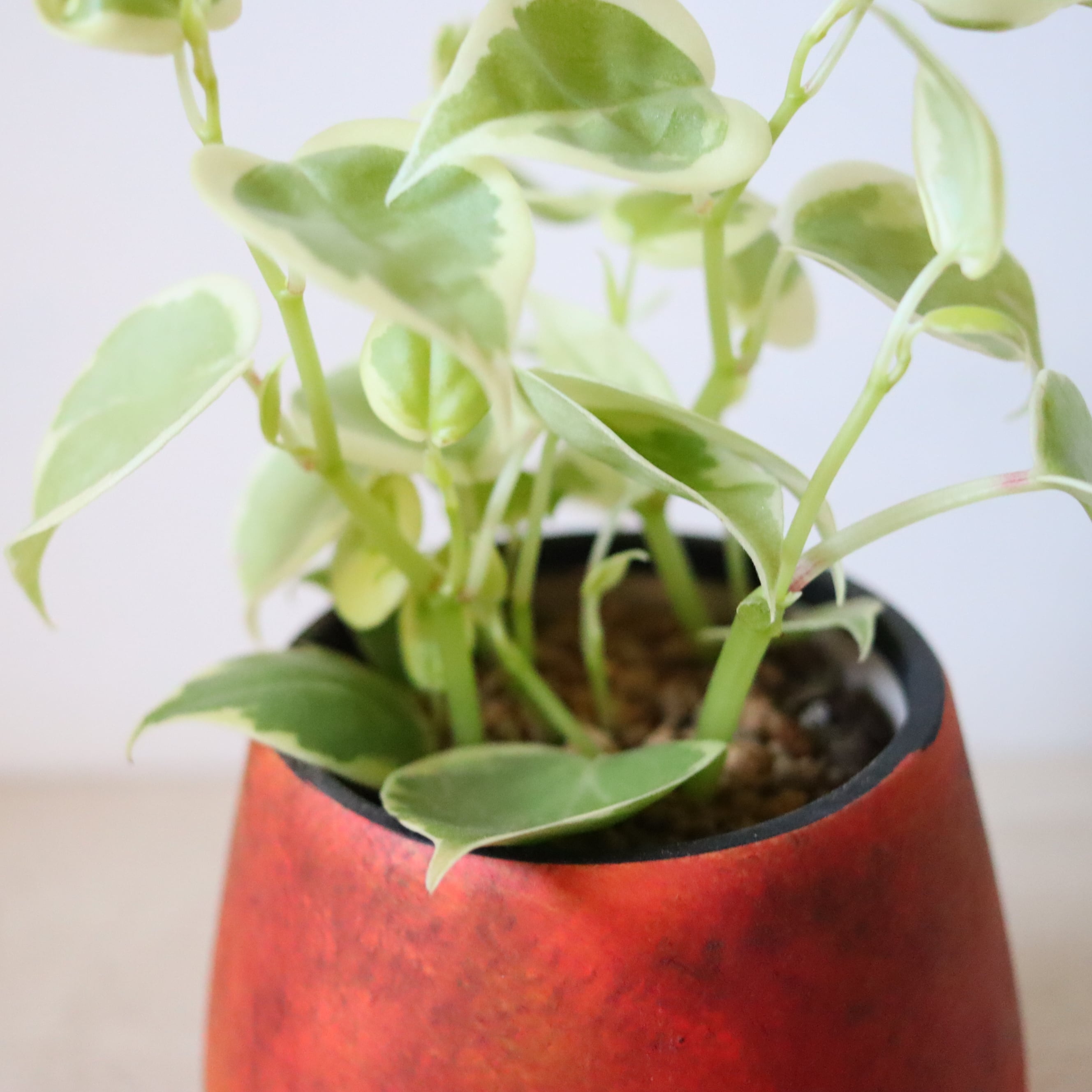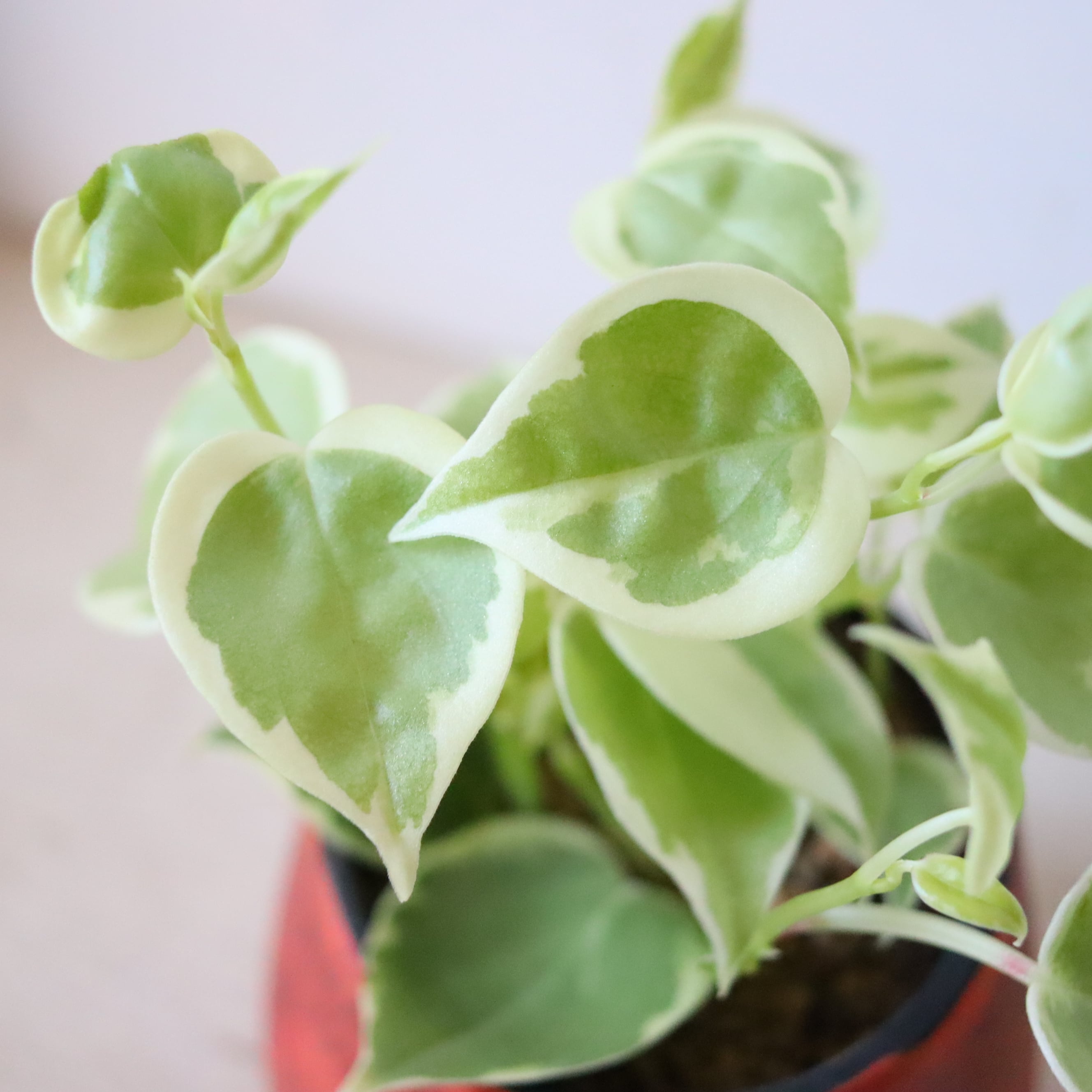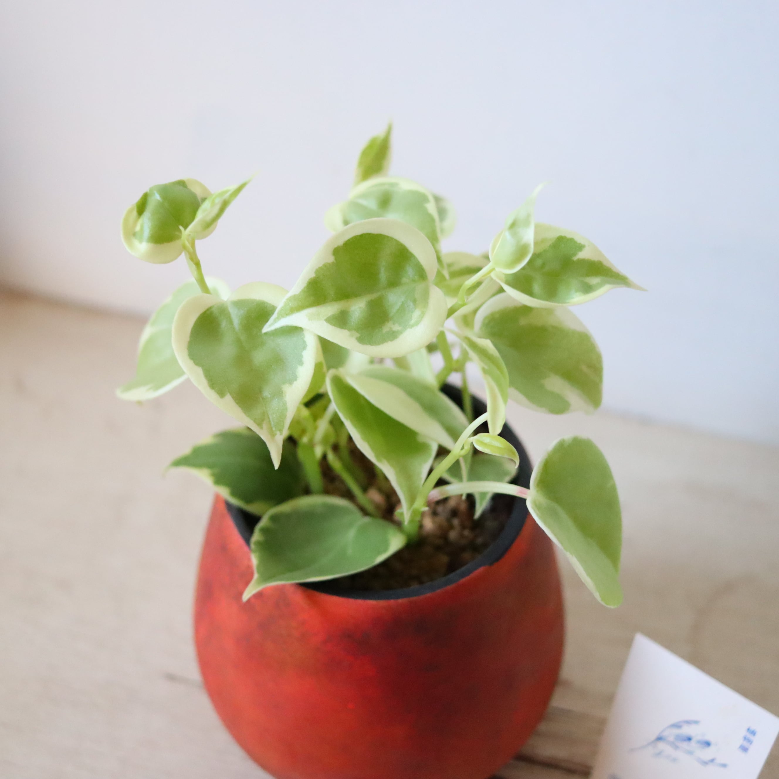 まるっとしたハート型の葉っぱがかわいい植物です。斑入りの優しい雰囲気もいい感じです。