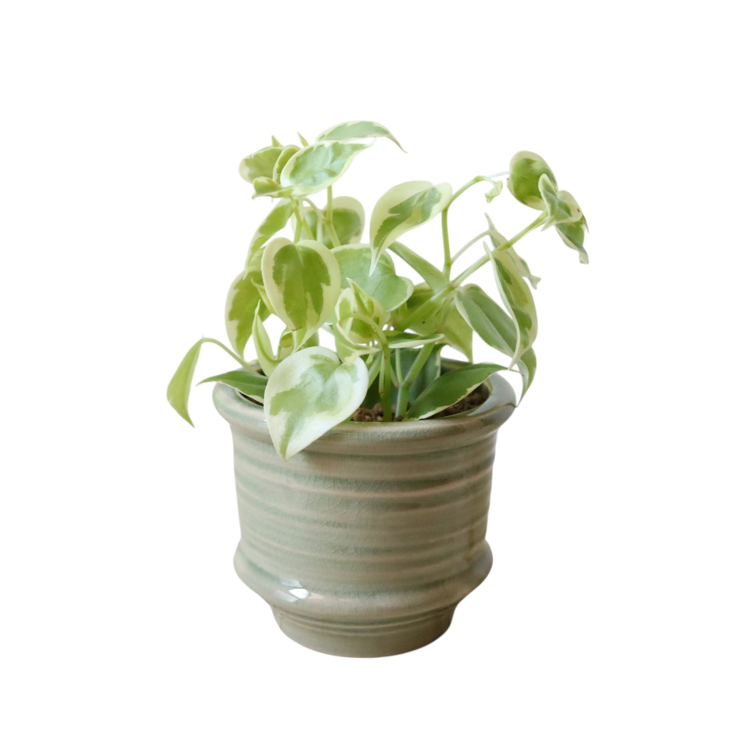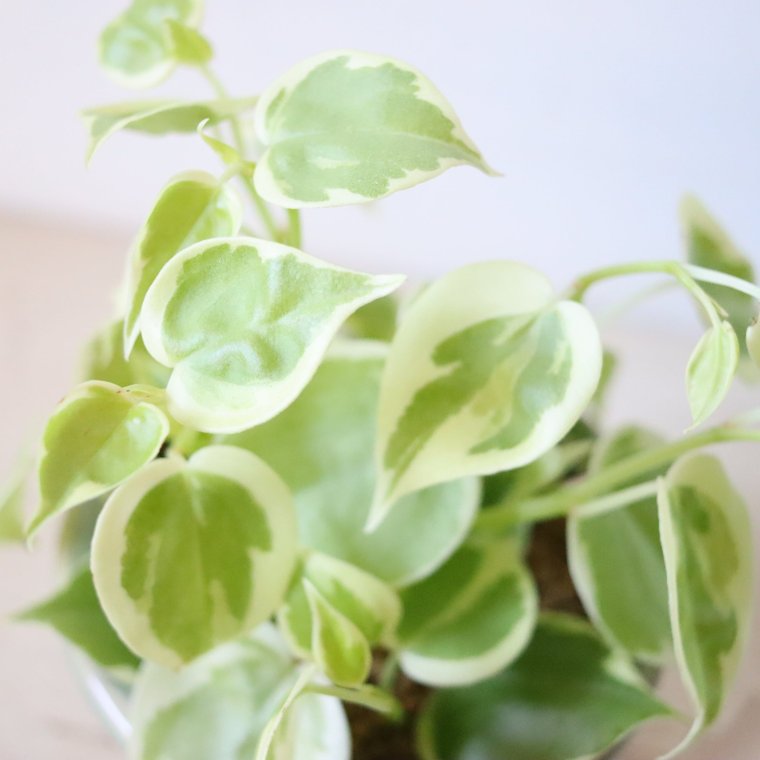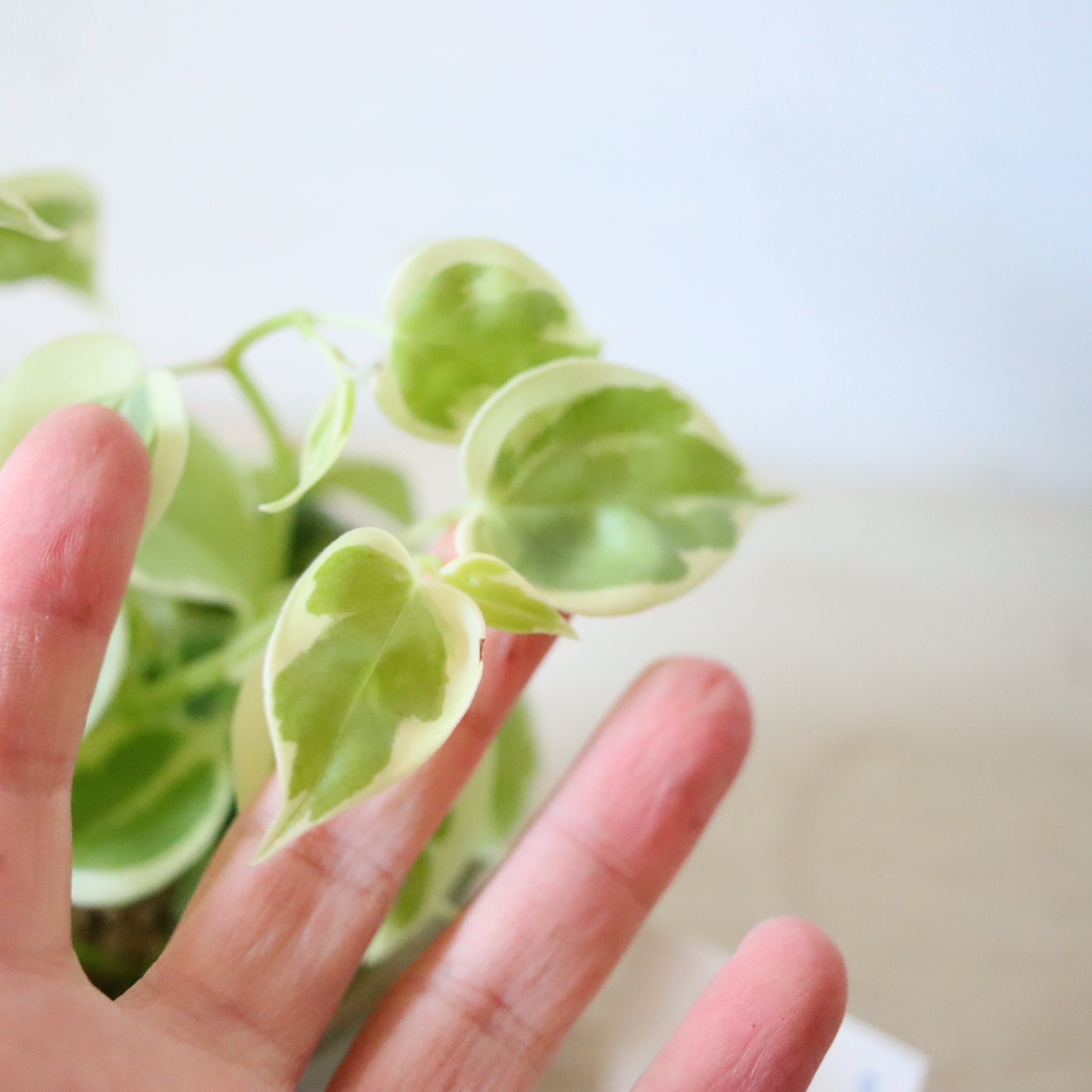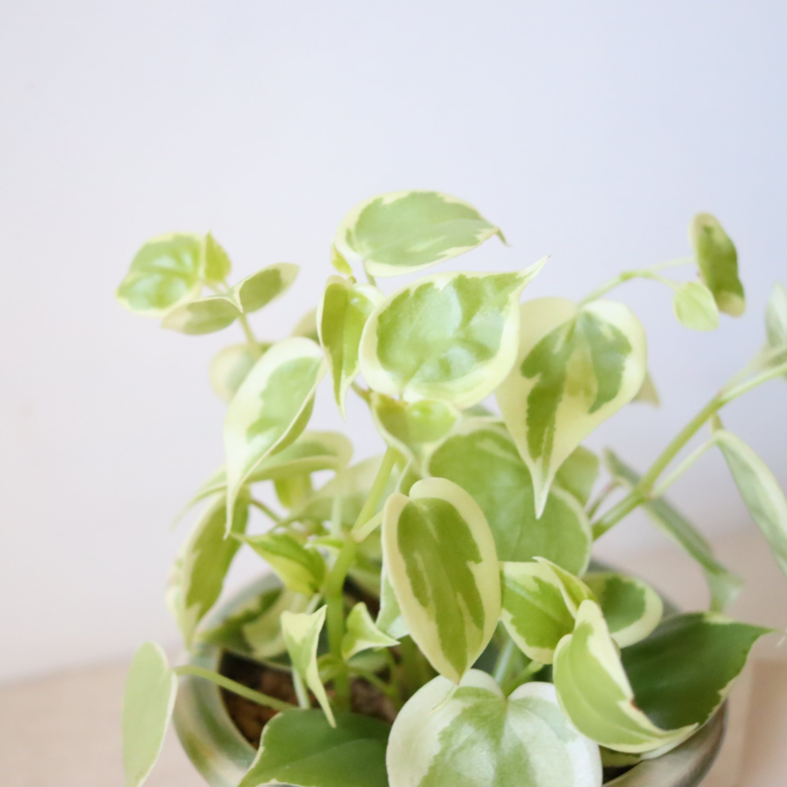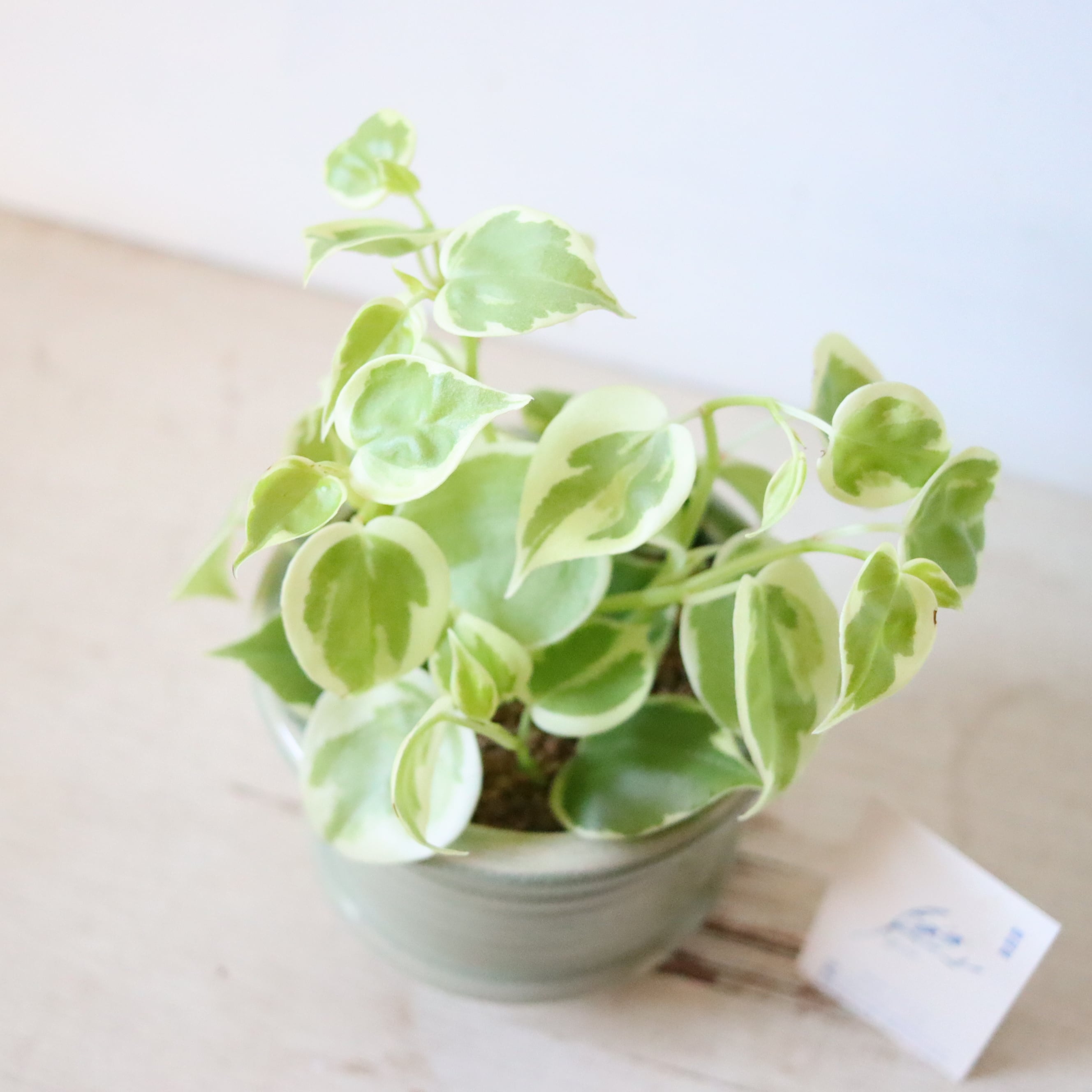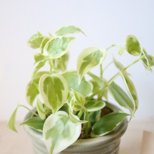 まるっとしたハート型の葉っぱがかわいい植物です。斑入りの優しい雰囲気もいい感じです。