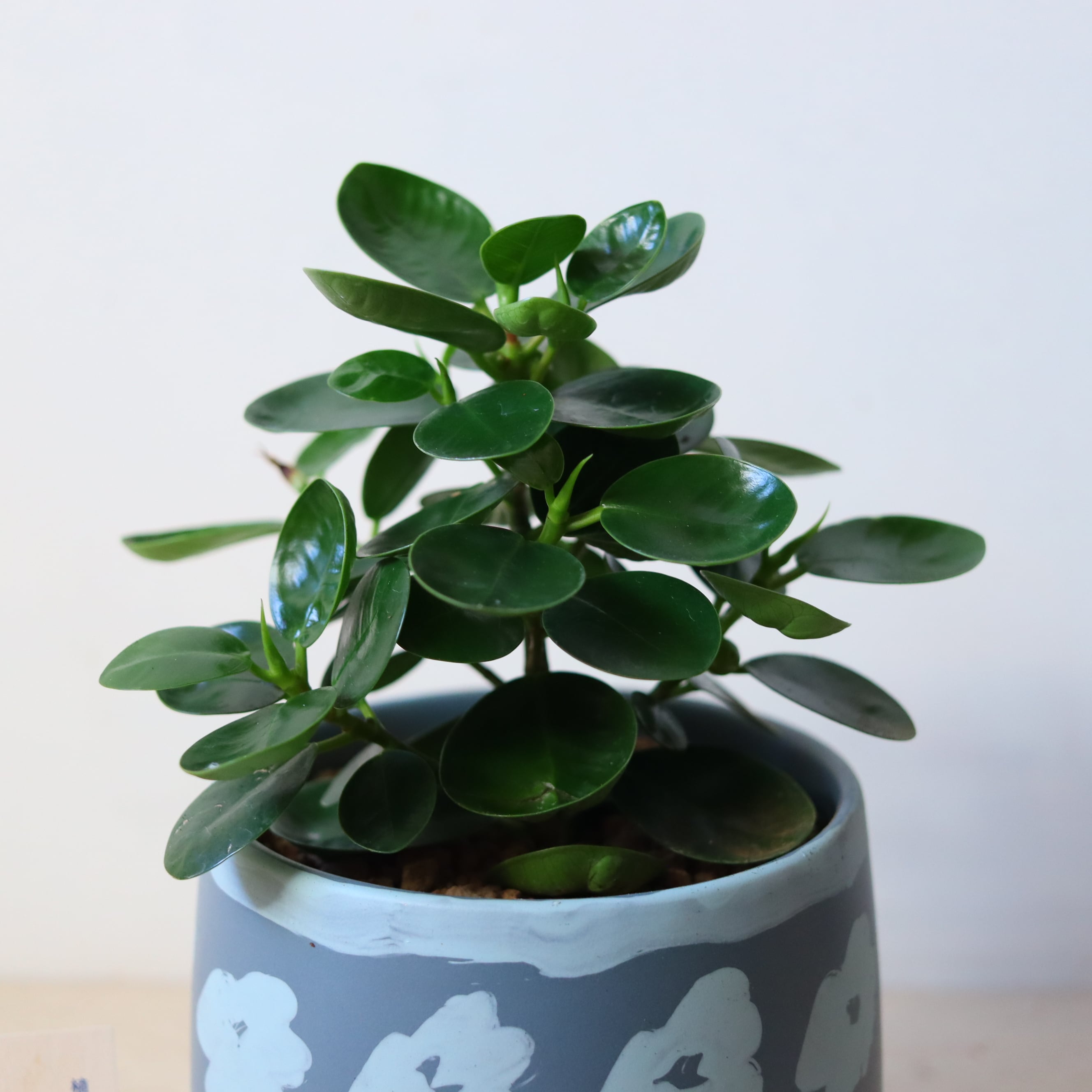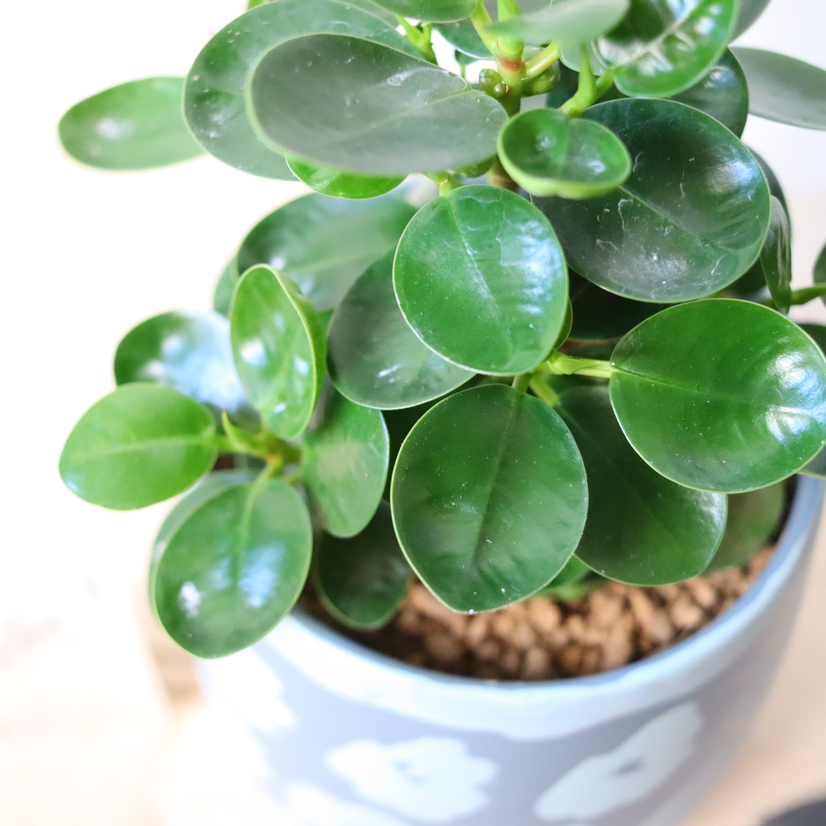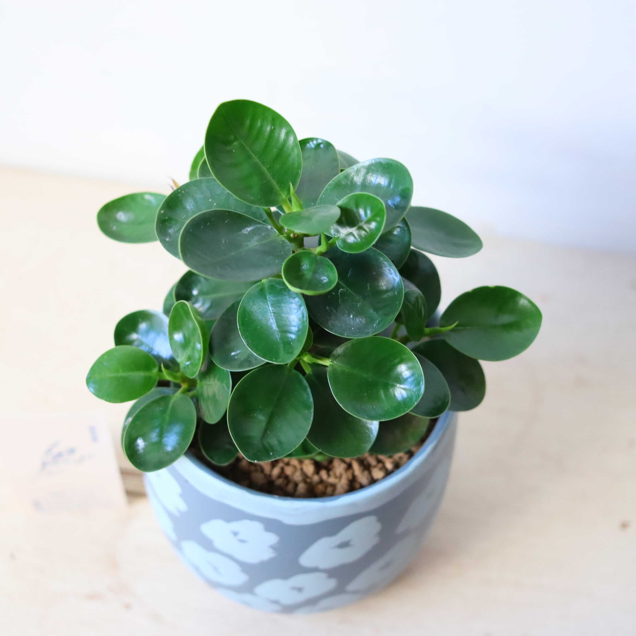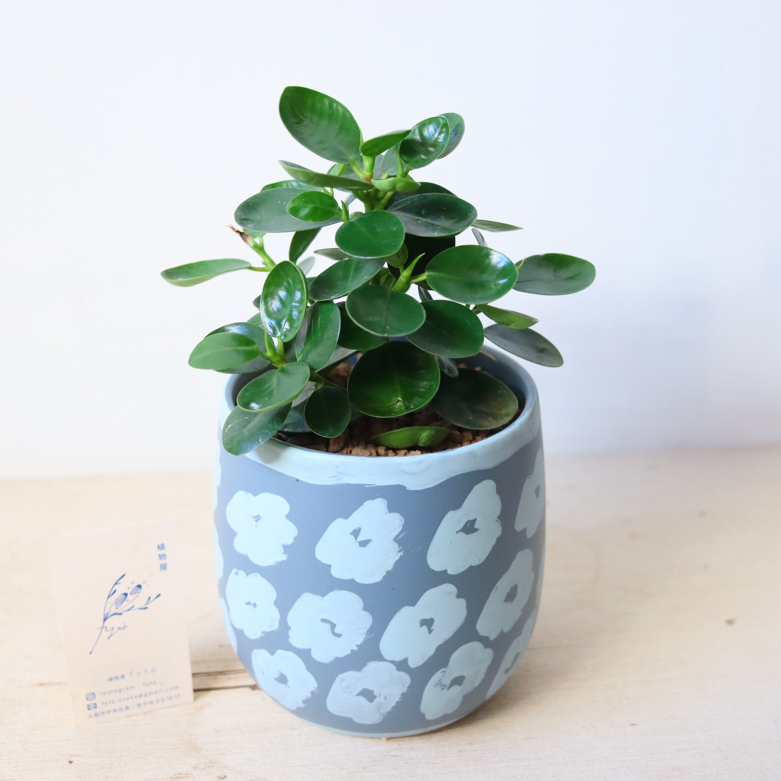 丸い葉っぱのシルエットがかわいいパンダガジュマルです。名前も最高ですね。