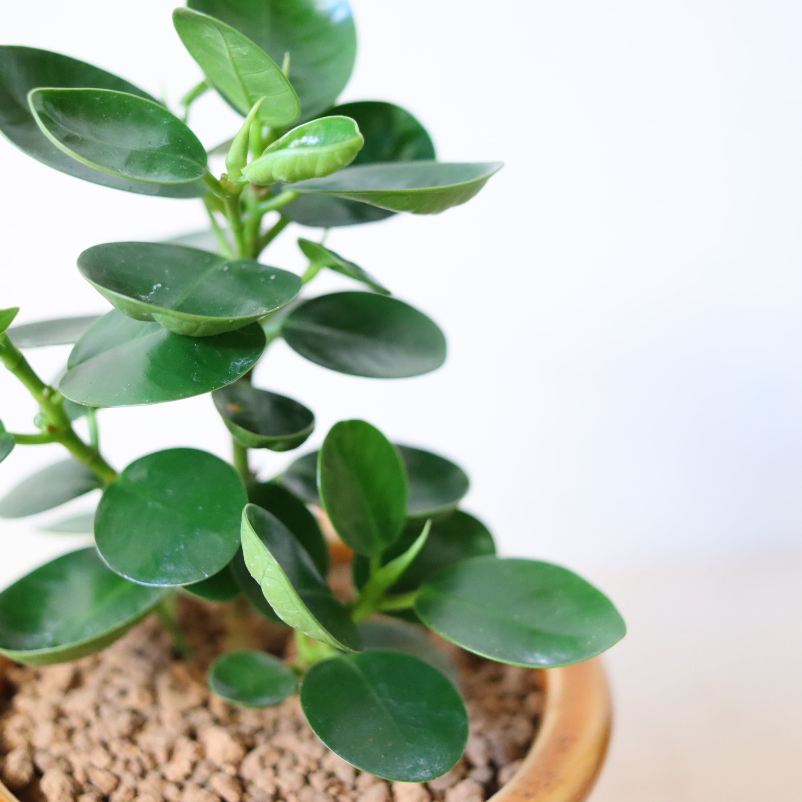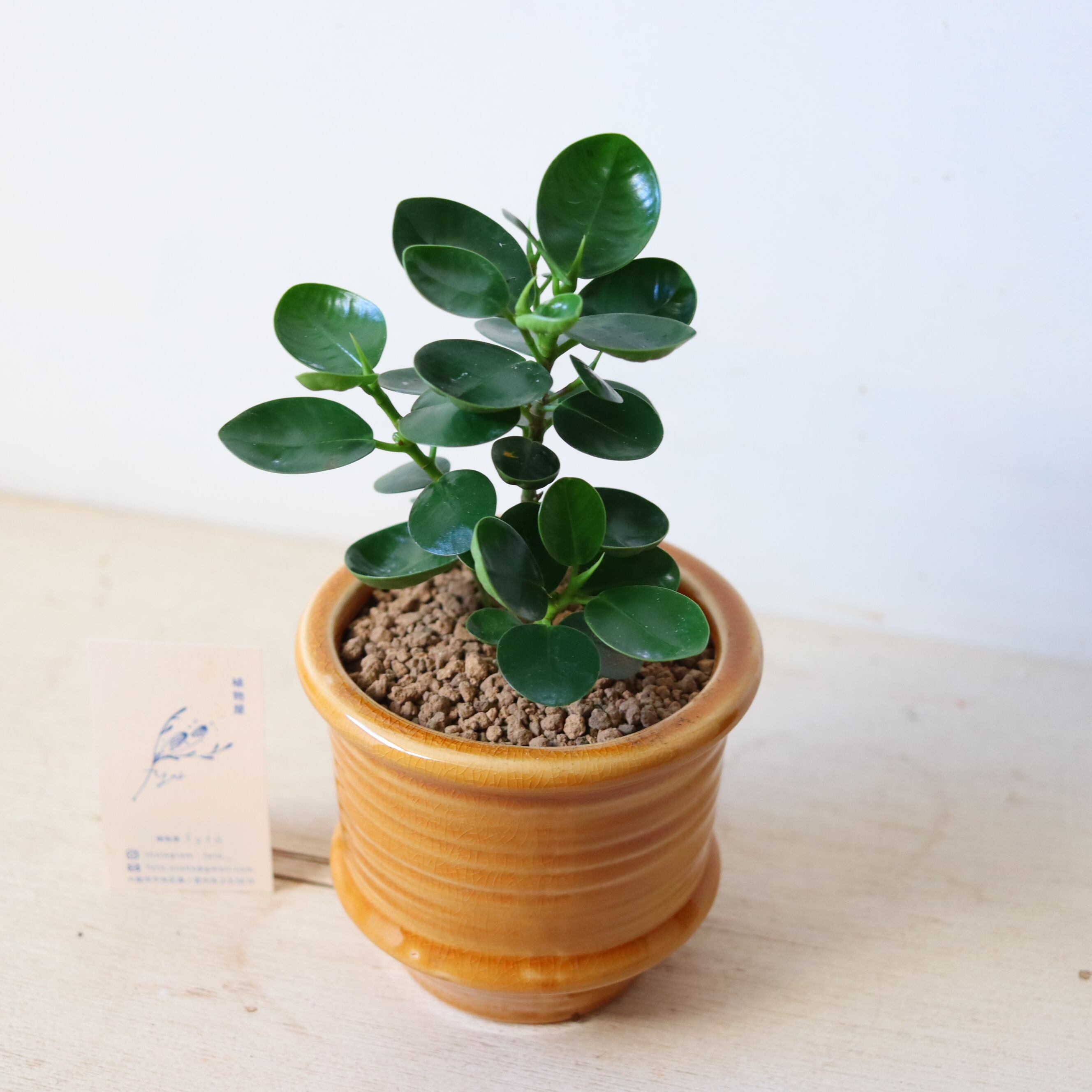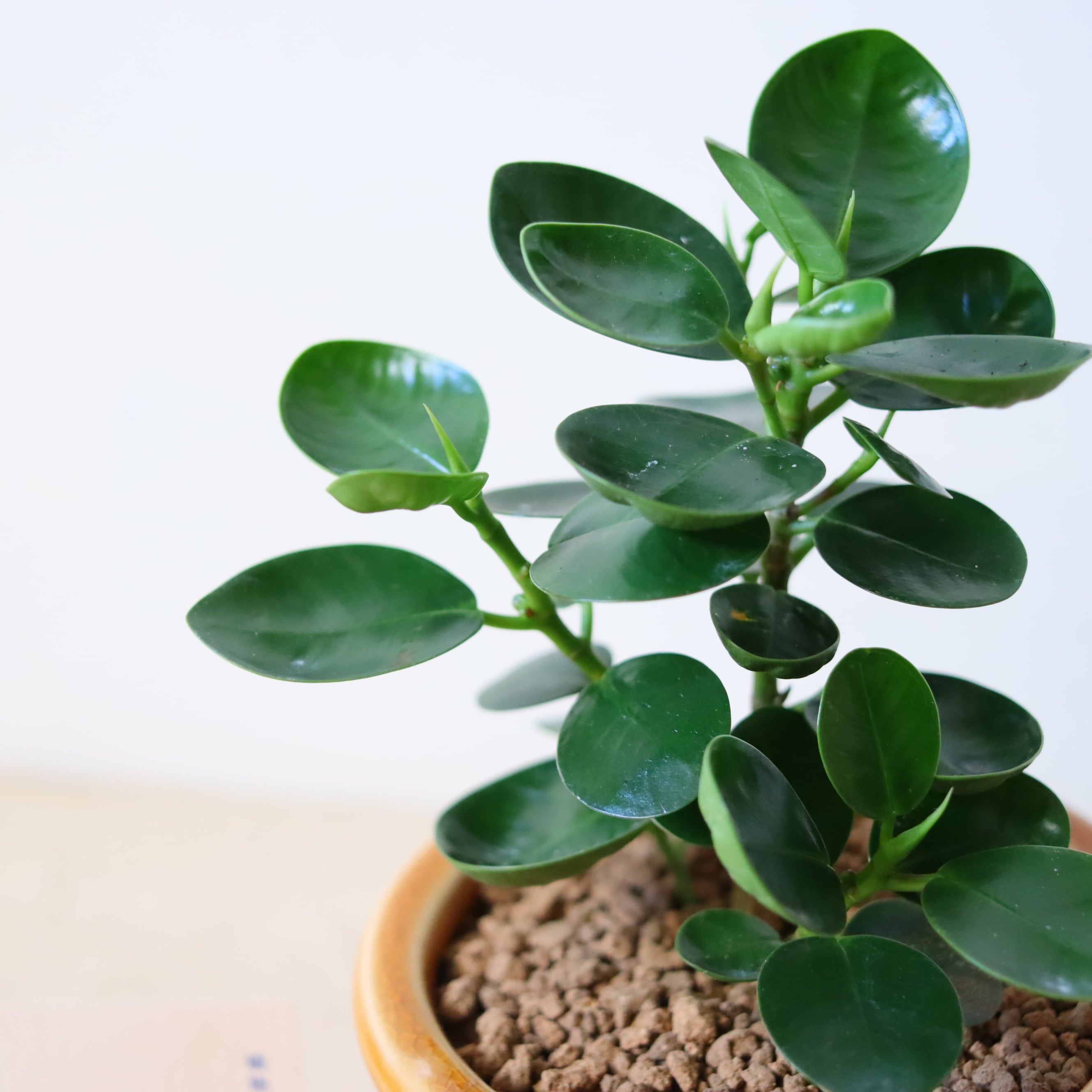 丸い葉っぱのシルエットがかわいいパンダガジュマルです。名前も最高ですね。