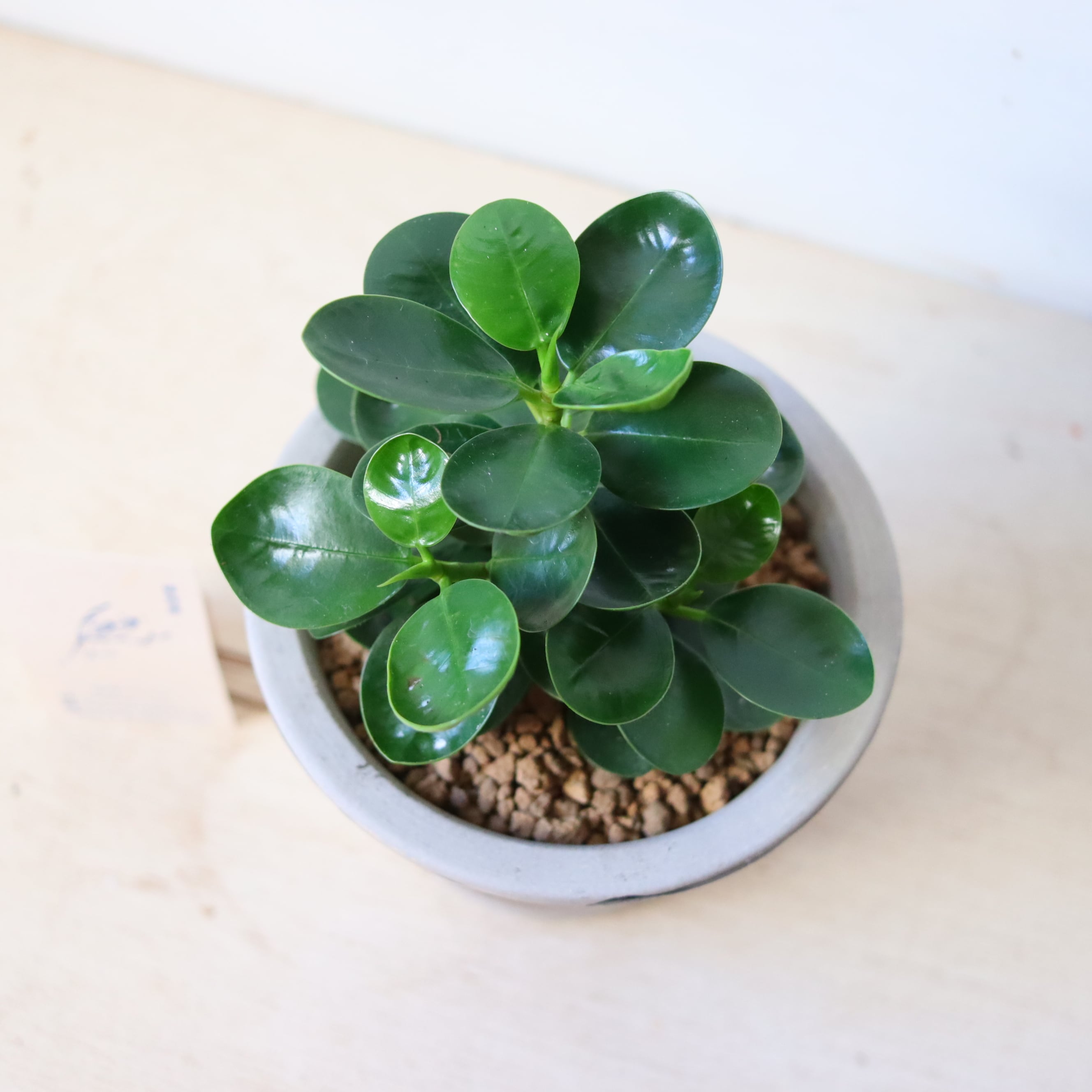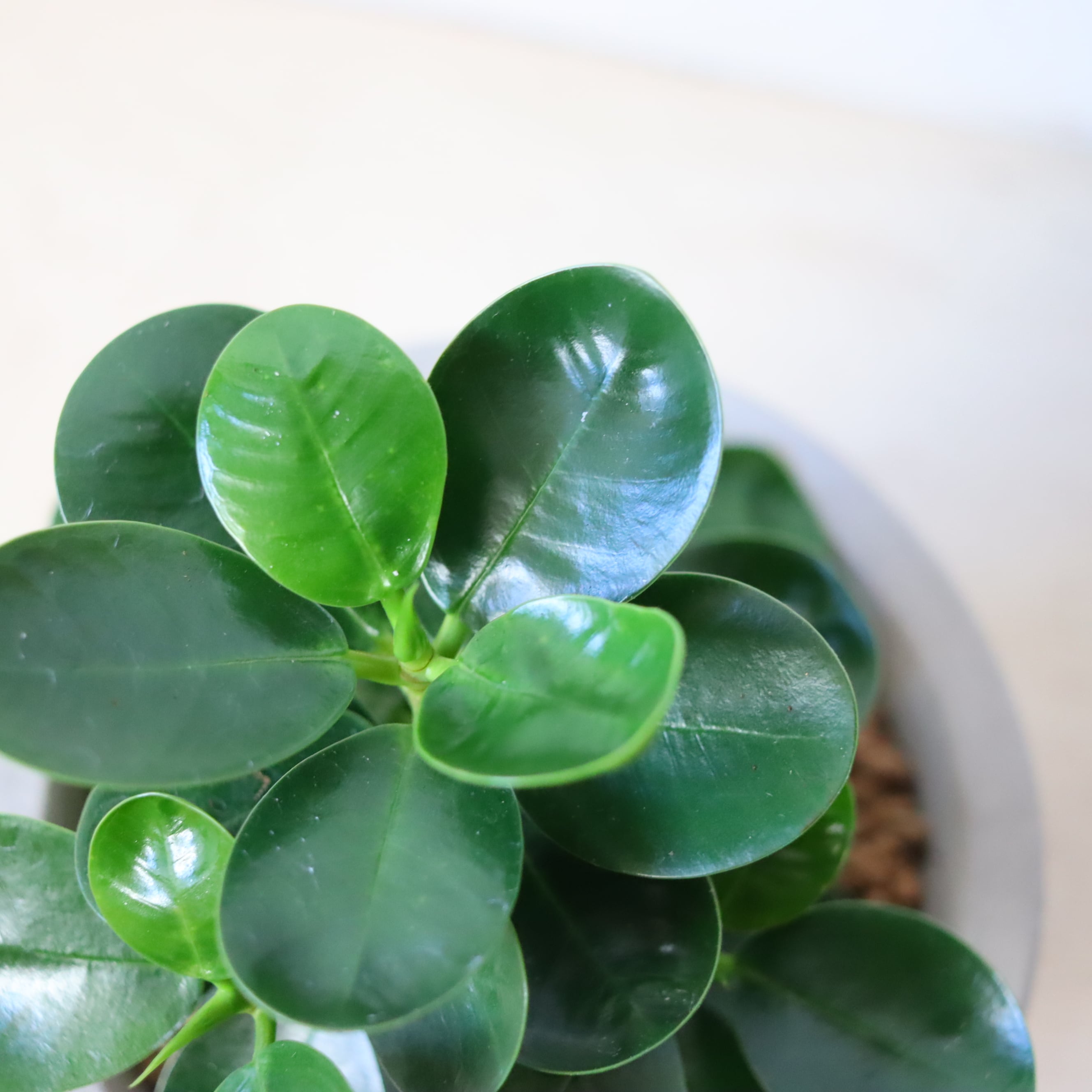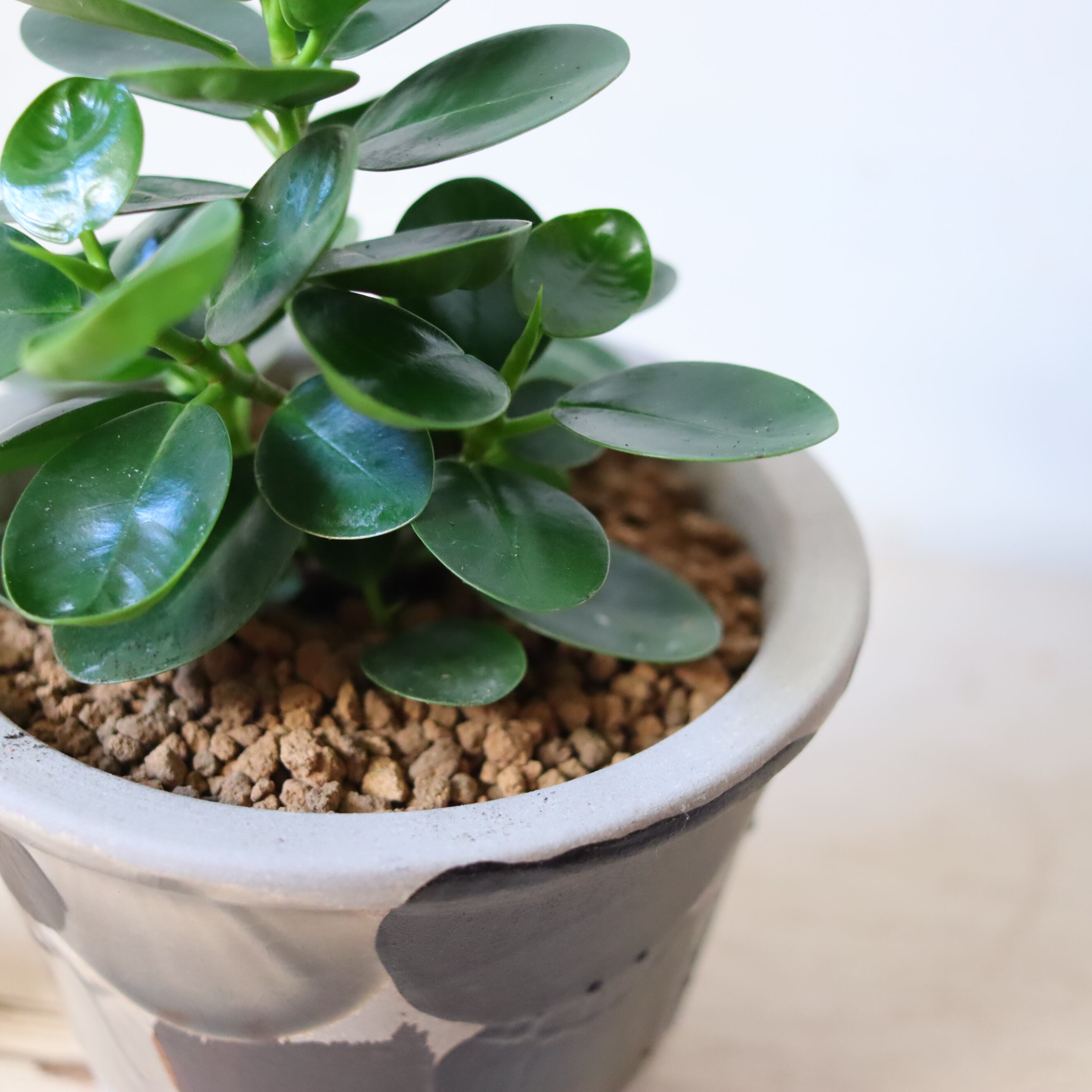丸い葉っぱのシルエットがかわいいパンダガジュマルです。名前も最高ですね。