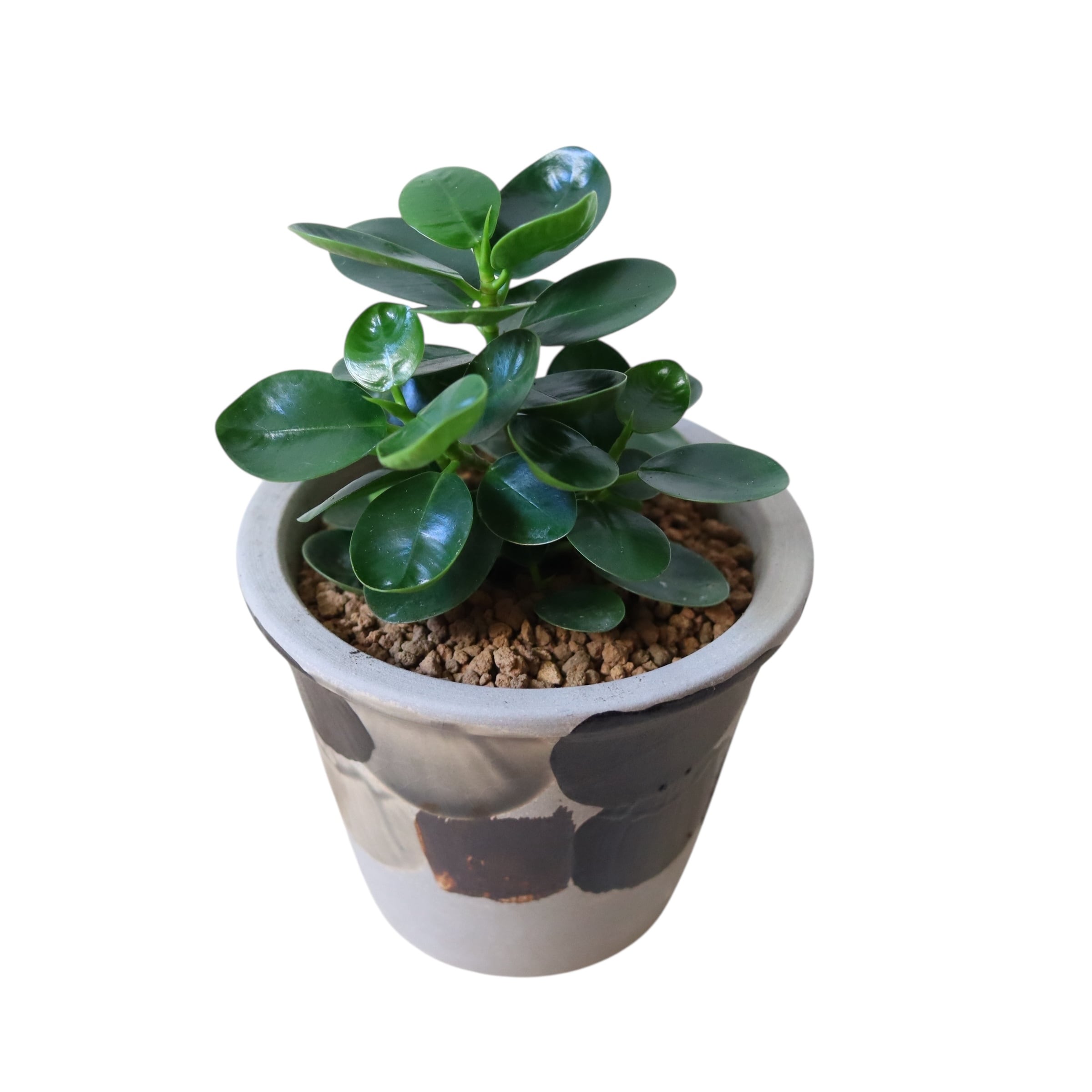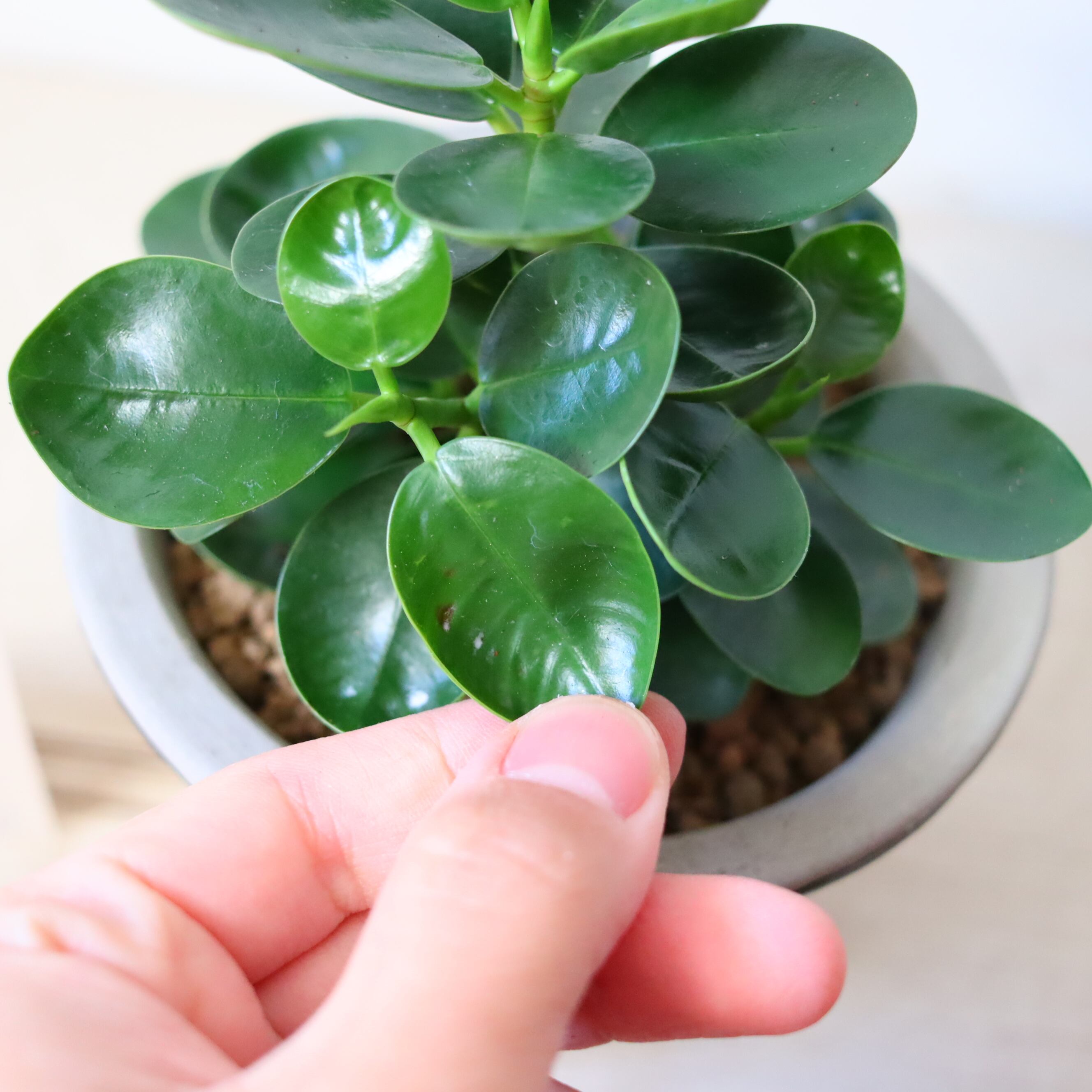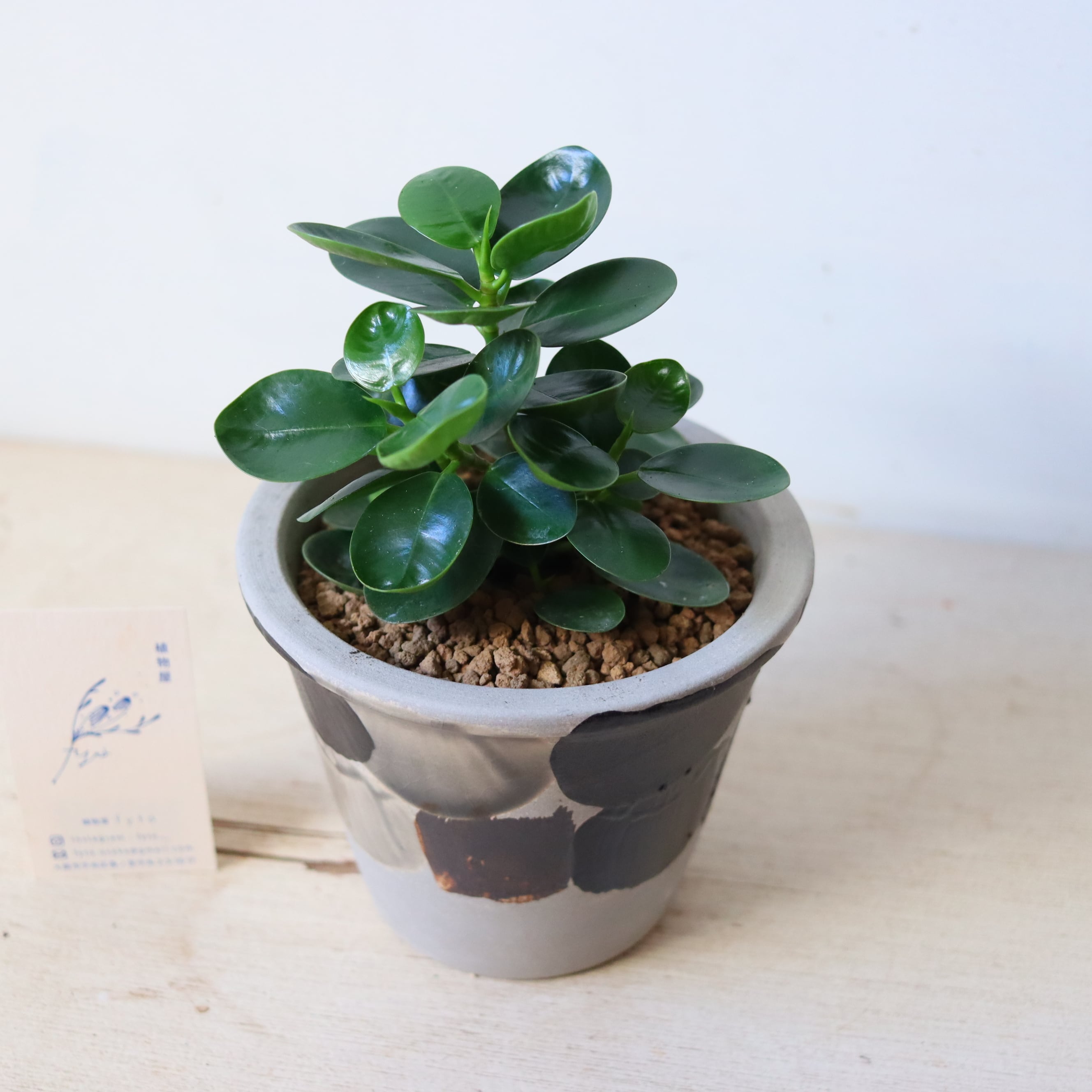 丸い葉っぱのシルエットがかわいいパンダガジュマルです。名前も最高ですね。