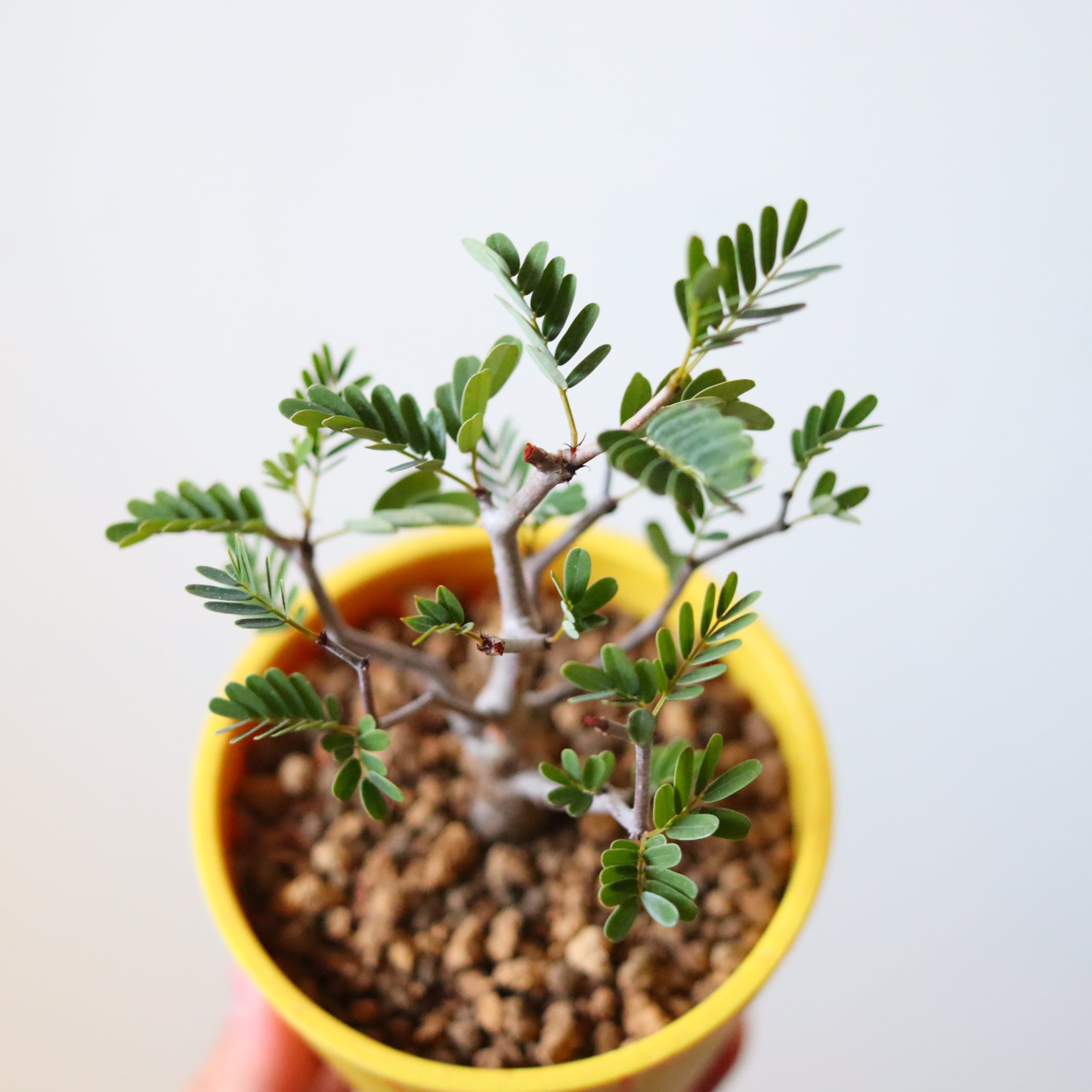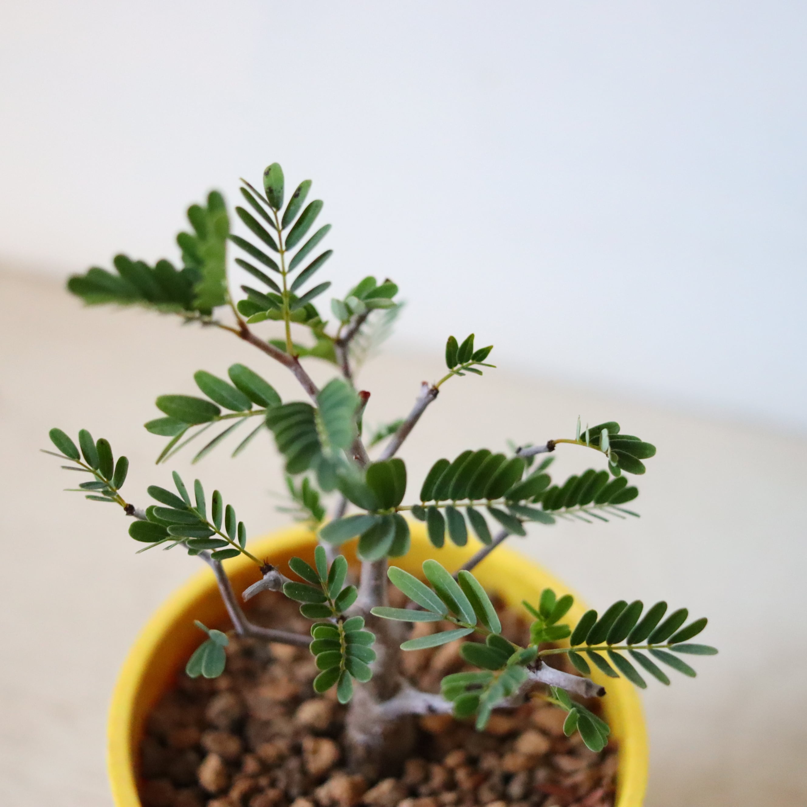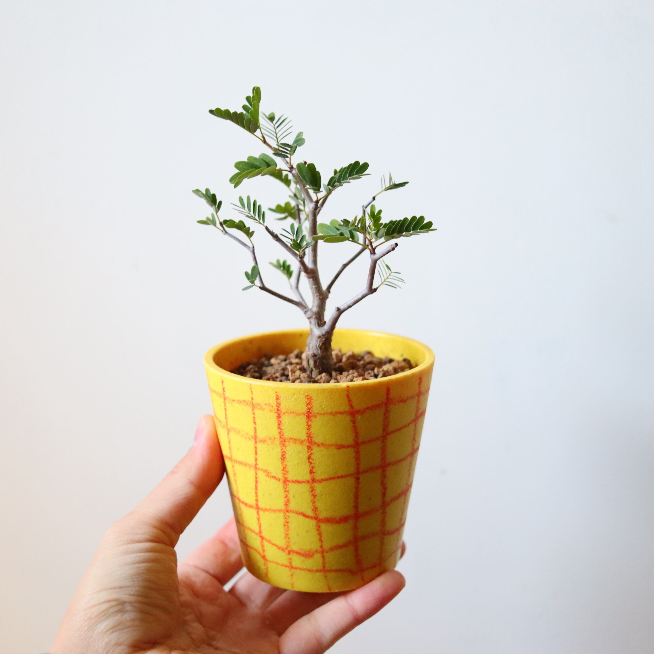 渋くてゴツゴツした塊根からかわいい葉っぱを生やしている塊根植物、メリディオナリス。こちらはその赤ちゃん株です。ベビーでかわいい。豆科の葉っぱなので、夜になると葉っぱをぱたんと閉じます。それもすごく可愛らしいです。ゆっくり大きく育ててあげてください。