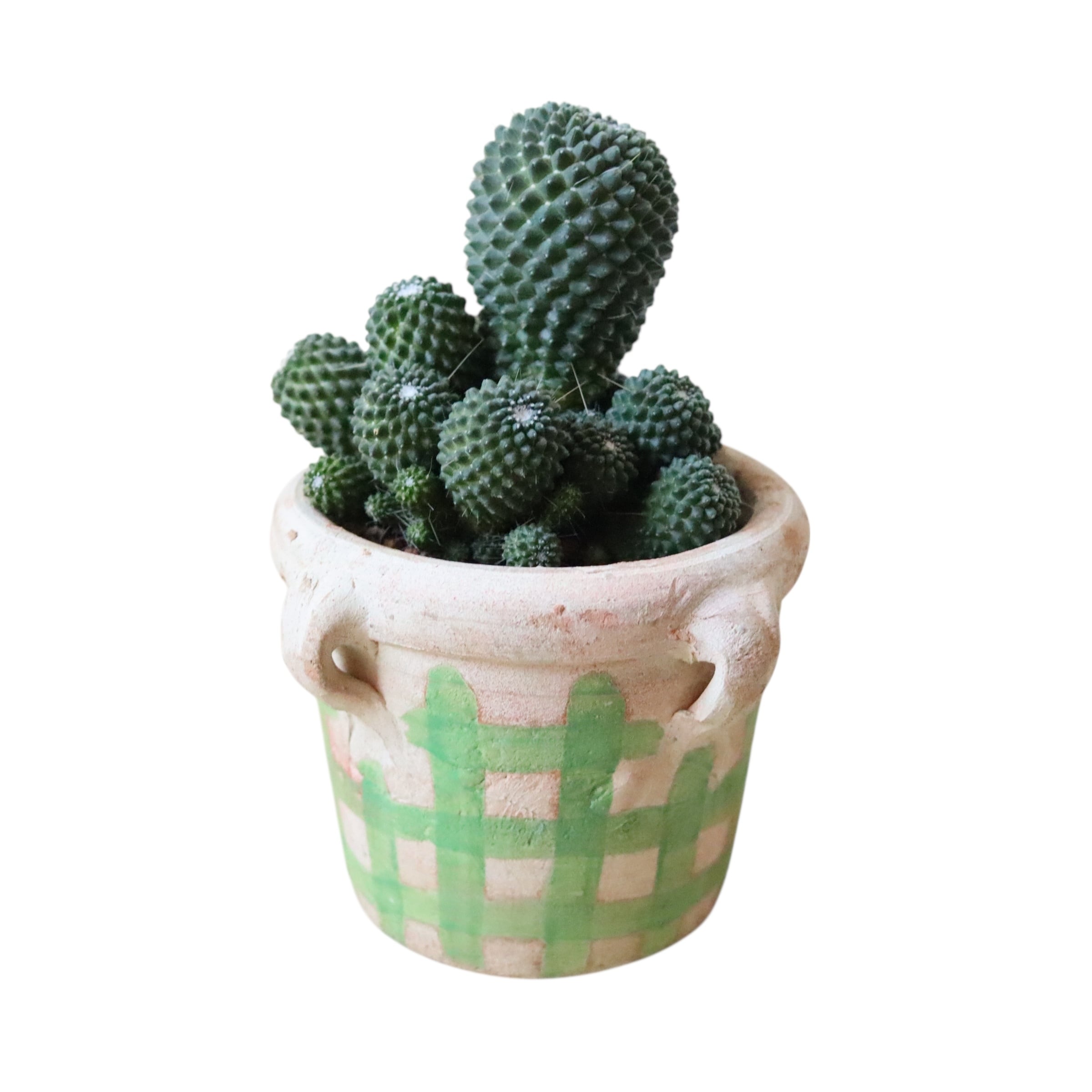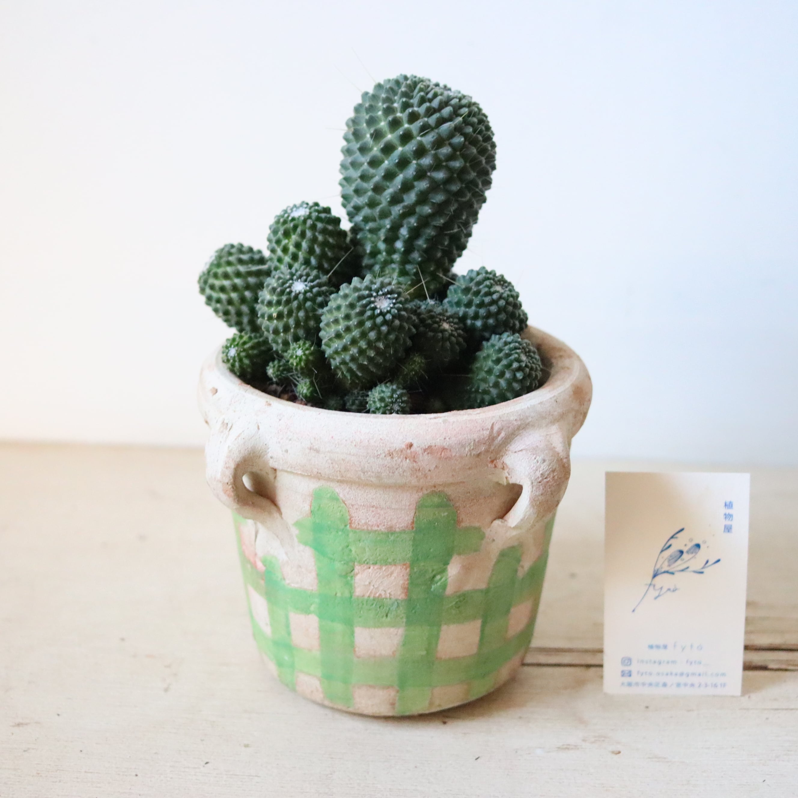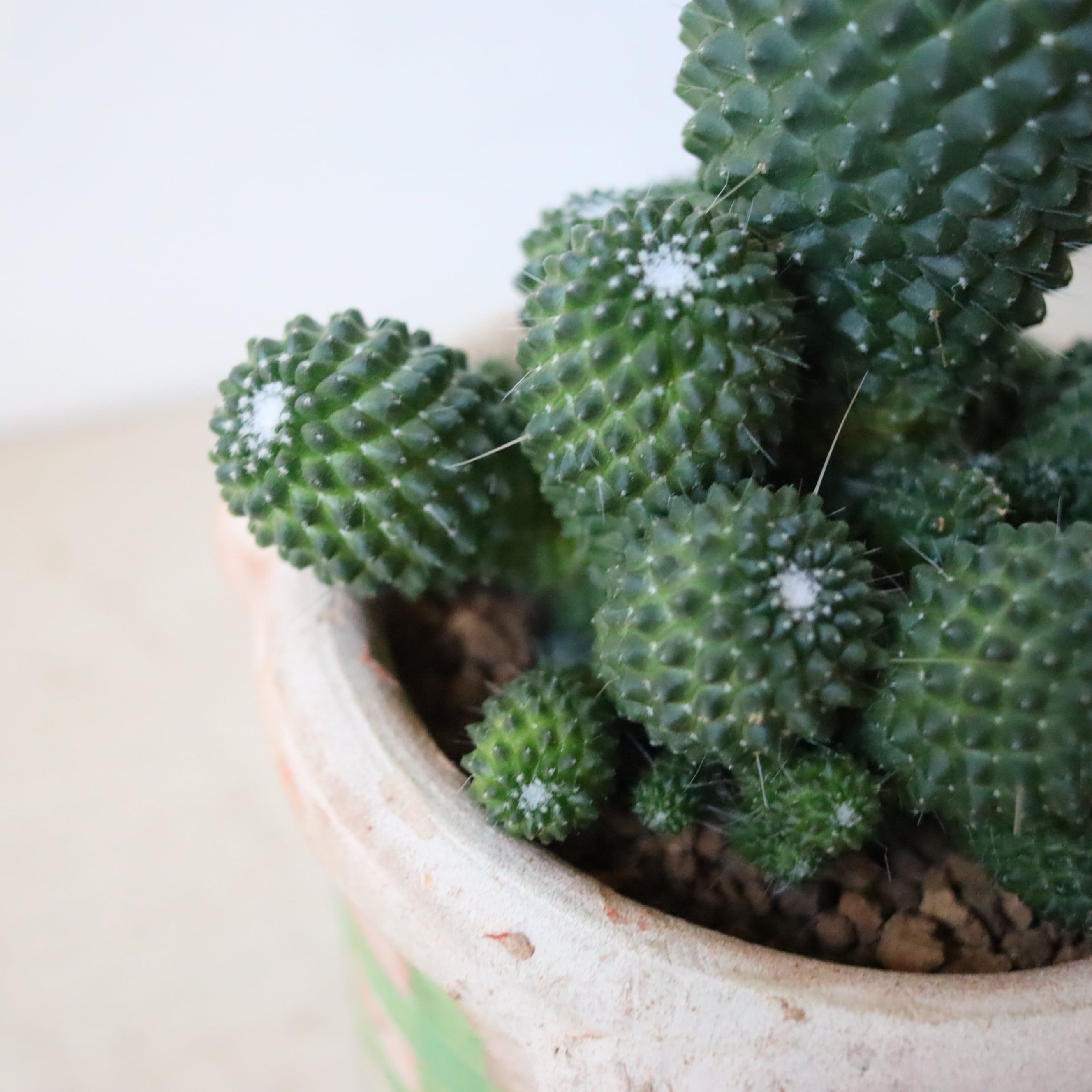 ドリアンみたいなサボテン、ピコの群生株です。ちょろっと生えたトゲがなんだか間抜けでかわいらしいですね。よく日に当ててあげると春から夏の間にピンクの可愛いお花がたくさん咲きます。
