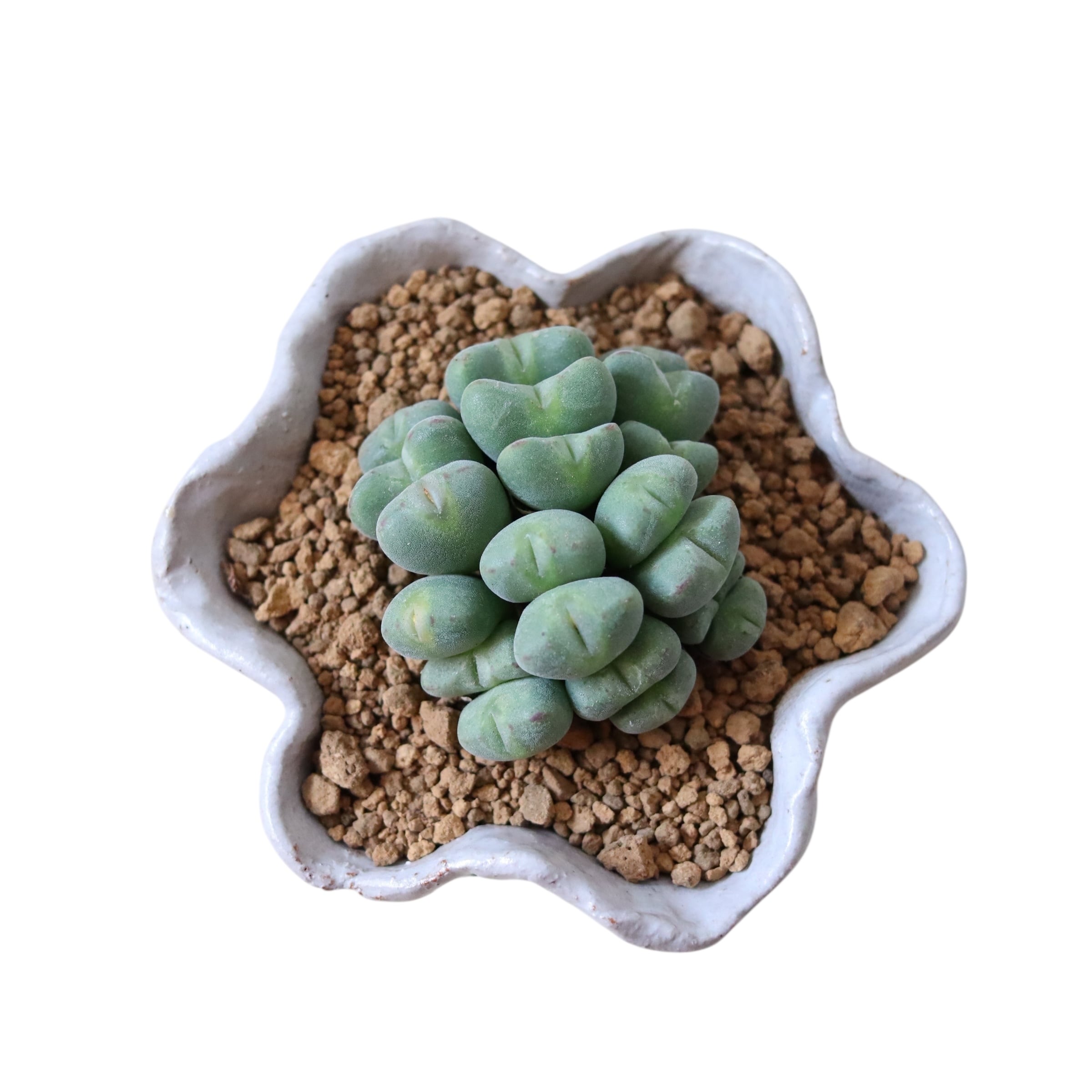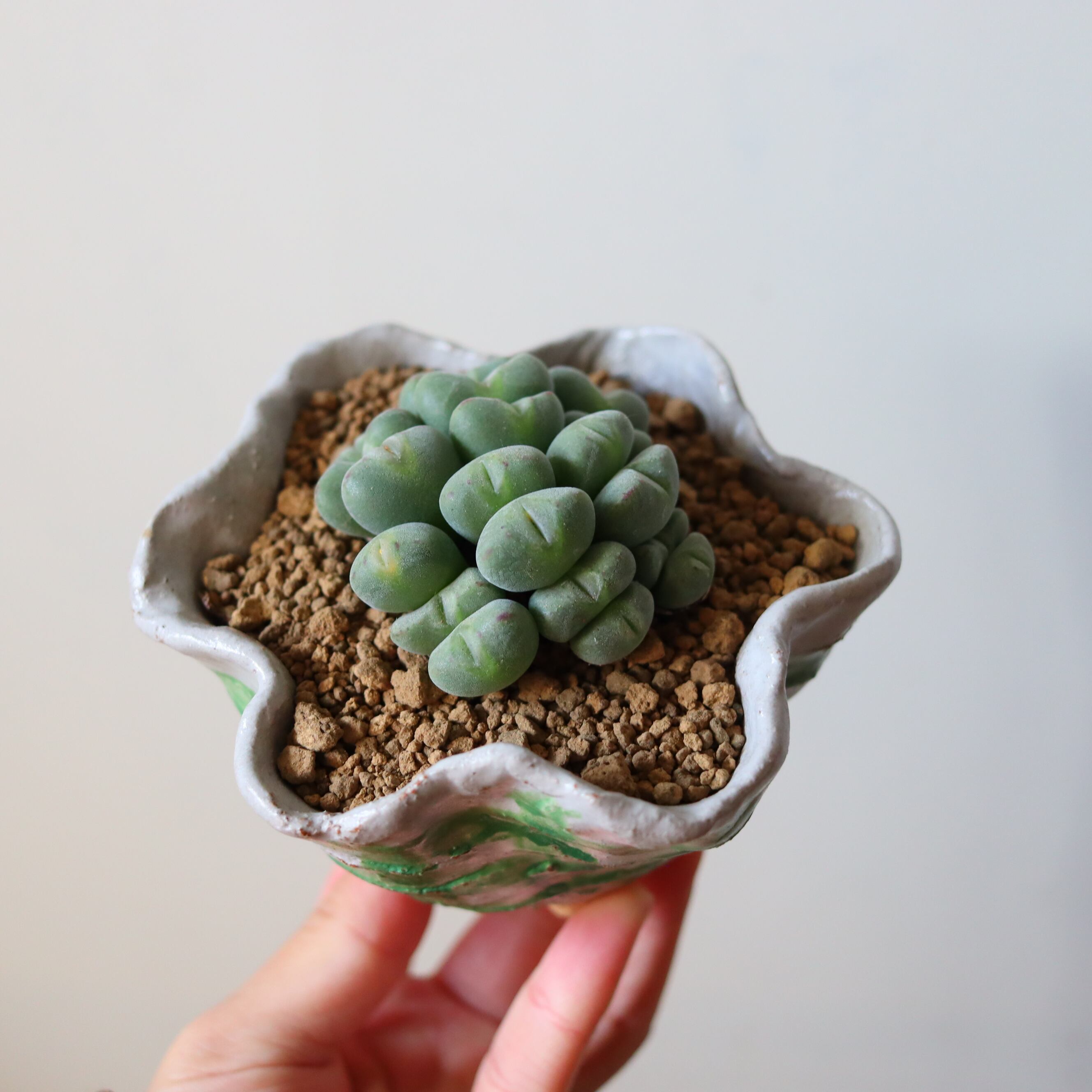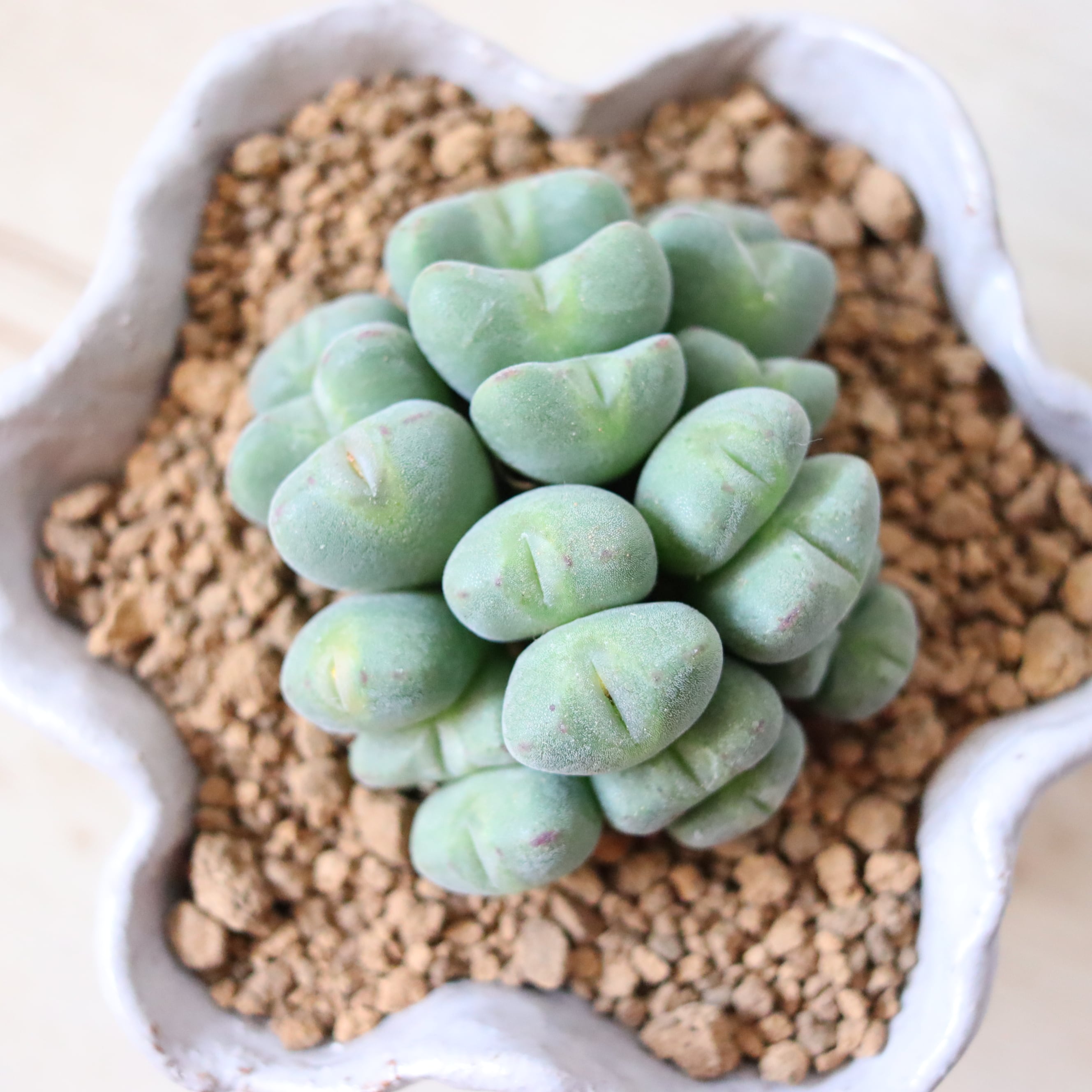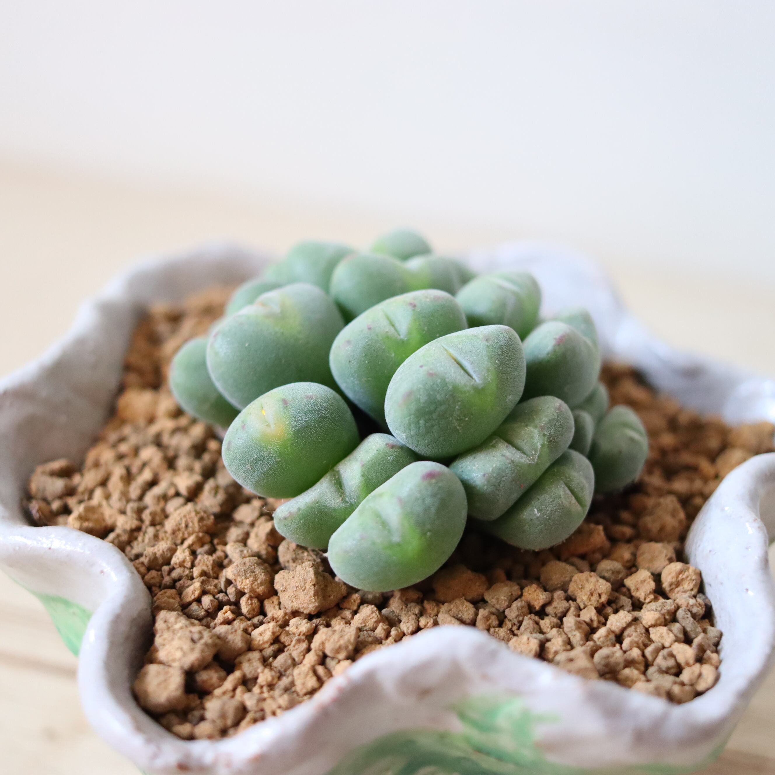 夏は茶色いカサカサの皮を被って休眠します。涼しい半日陰に置き、水を断ってあげてください。涼しくなると脱皮して、少しずつ数を増やしていきます。
