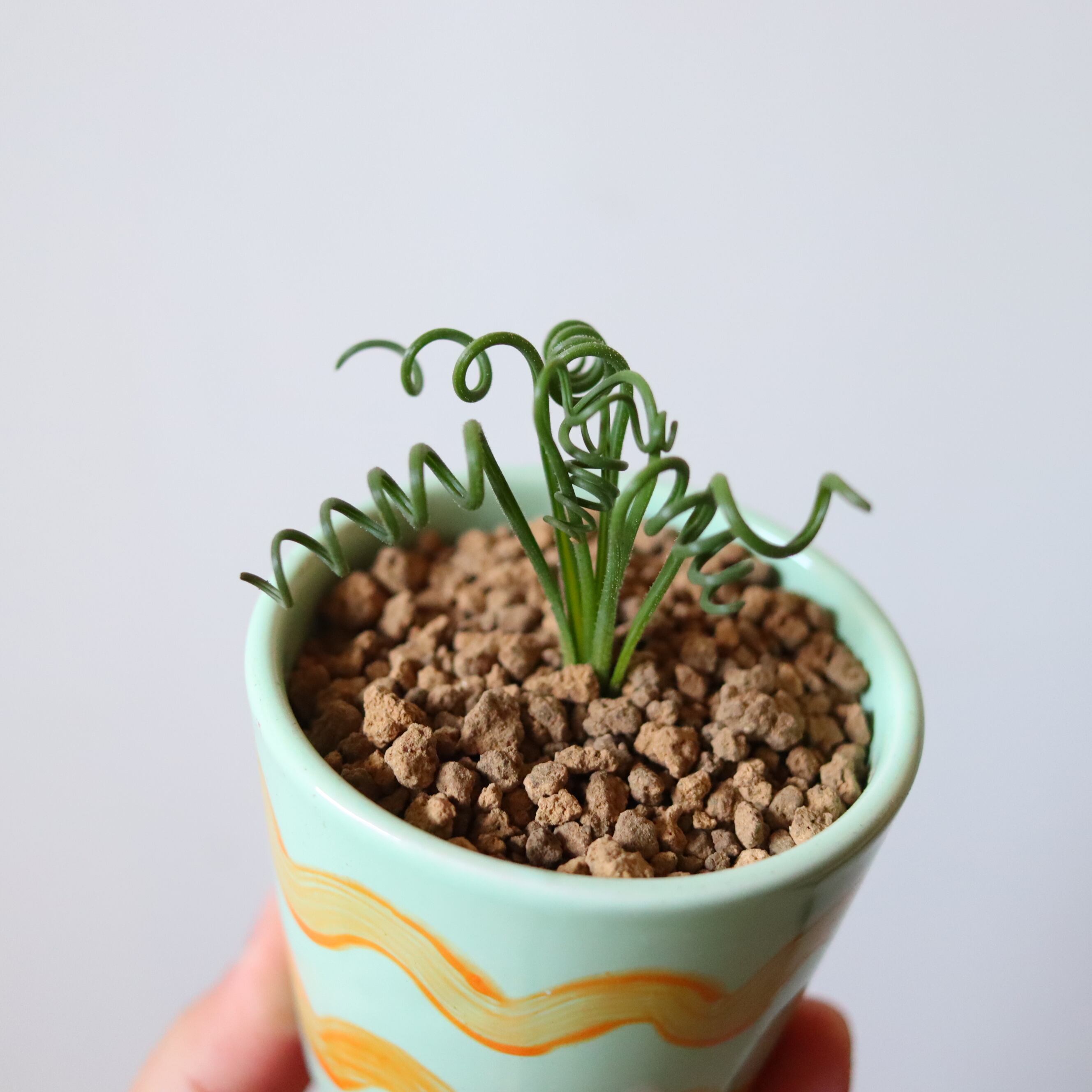 くるくるくるくる、目を疑うような不思議な植物です。こんなのが地面から生えてたらびっくりしますね。日当たりが良ければ良いほどくるくるが綺麗にキープできます。