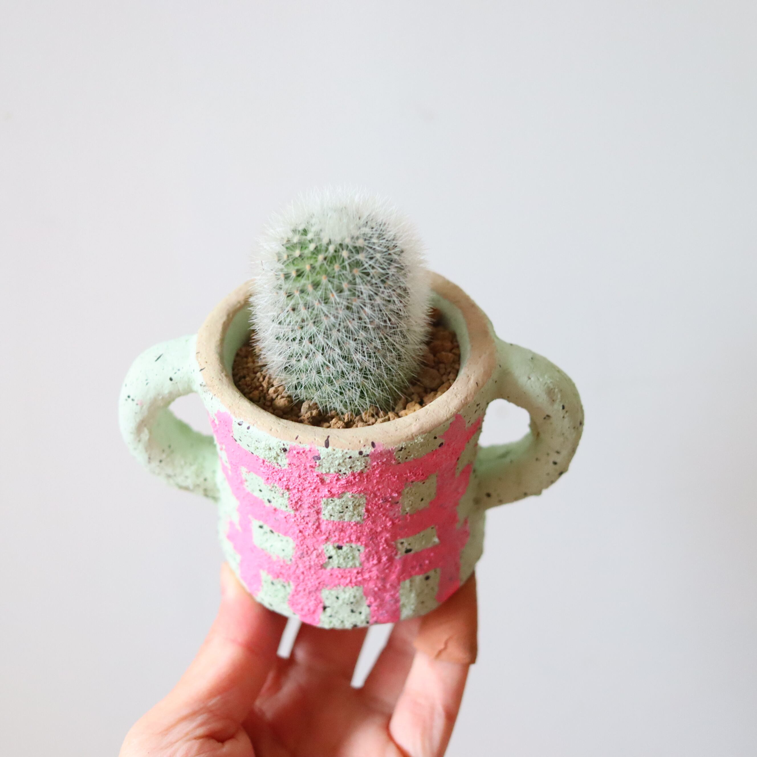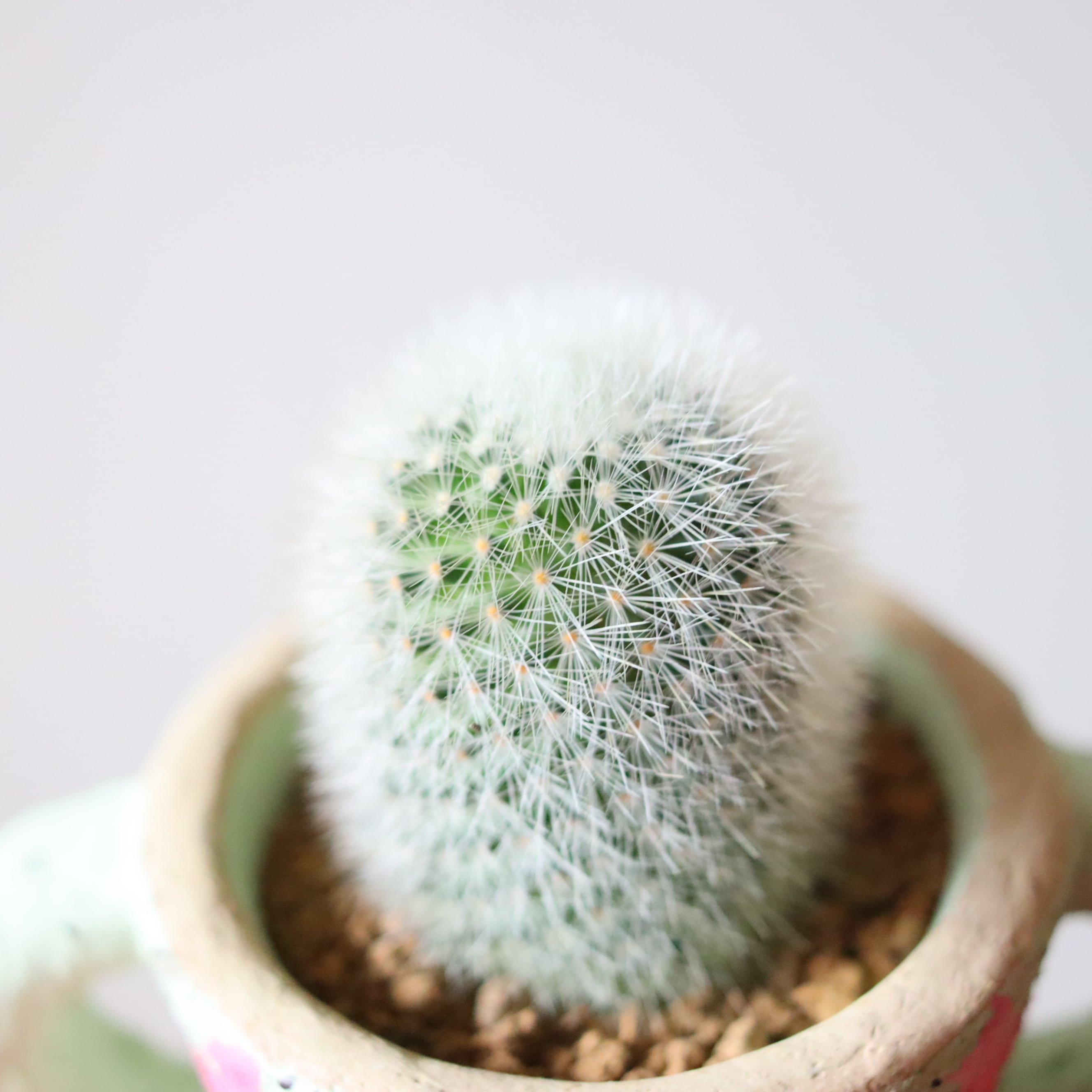 優しめの棘が生えたサボテン。なんだか力の抜けるゆるシルエットですね。お水もほとんどいらず、丈夫でお世話も簡単です。