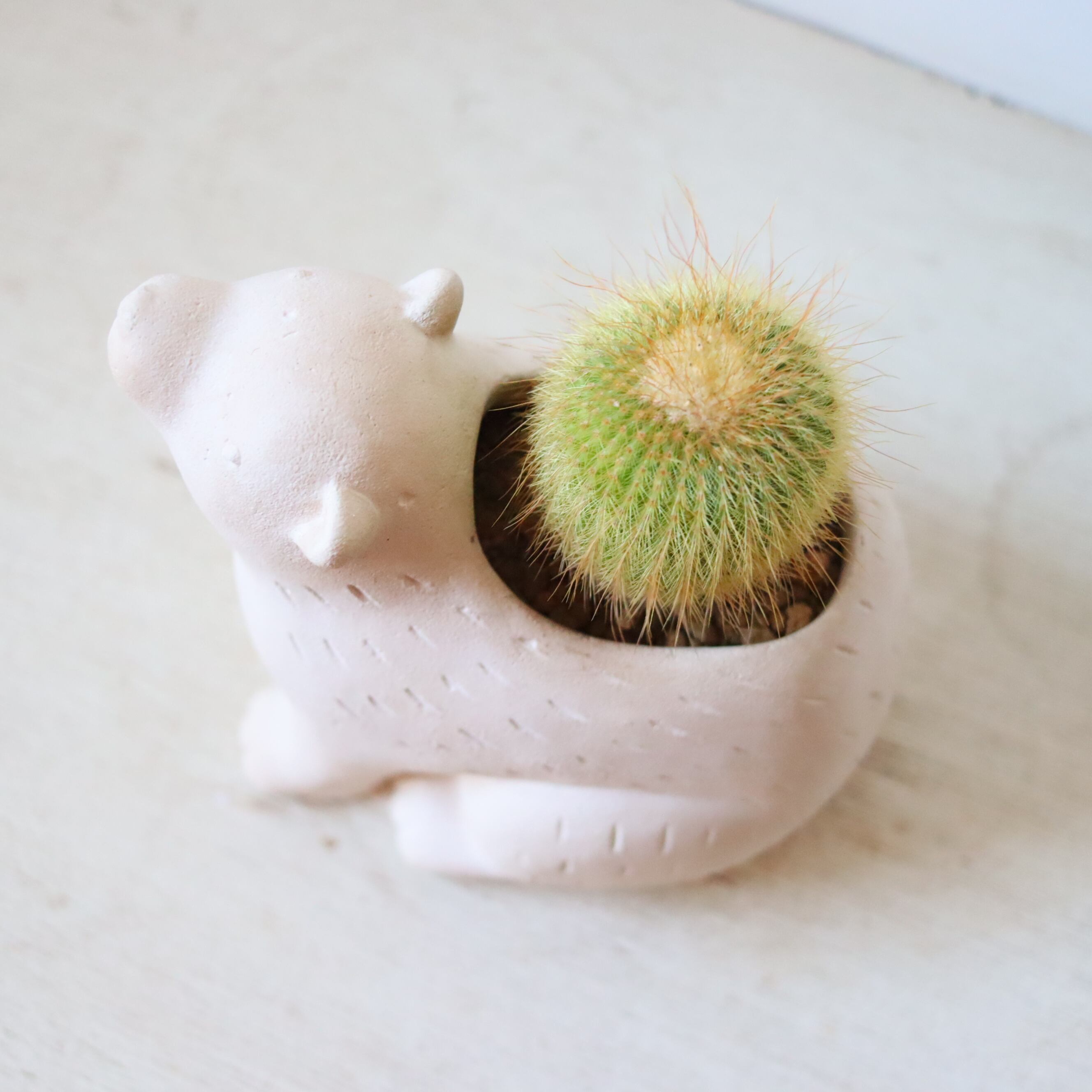 ぽってり金色のサボテンです。お水はほとんどいらないので育てやすく、お世話が苦手な方にもおすすめです。