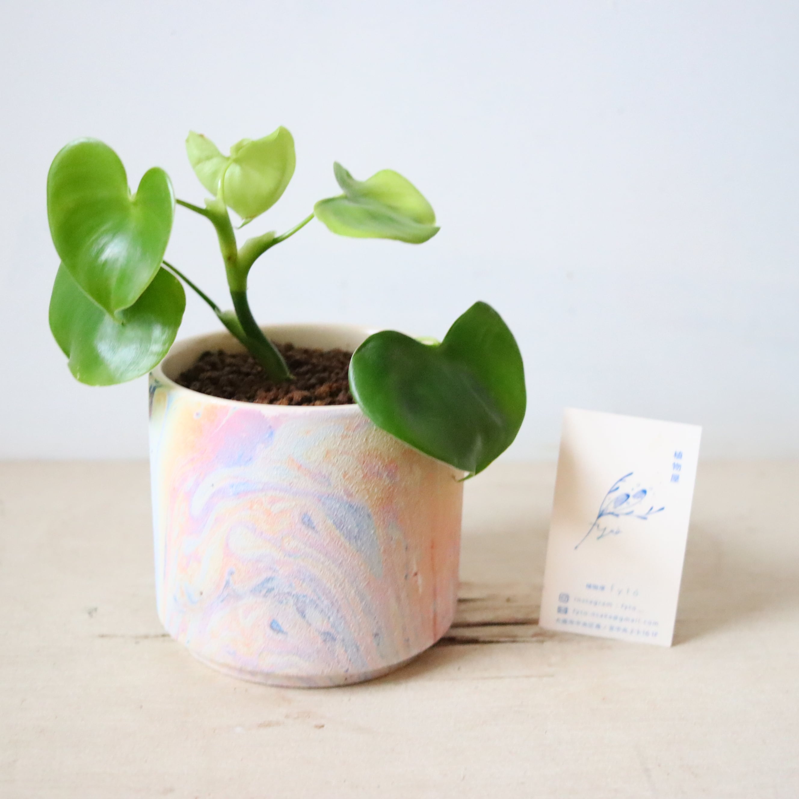 サイズ : 縦11㎝ × 横11㎝ (鉢の大きさです。名刺サイズのカードとの比較を参考にしてください。)