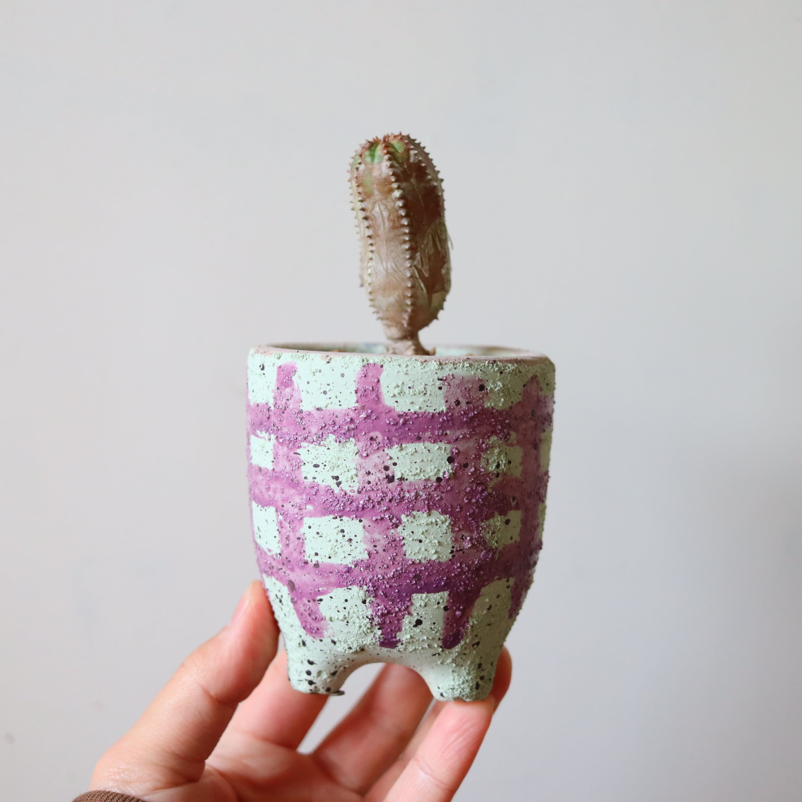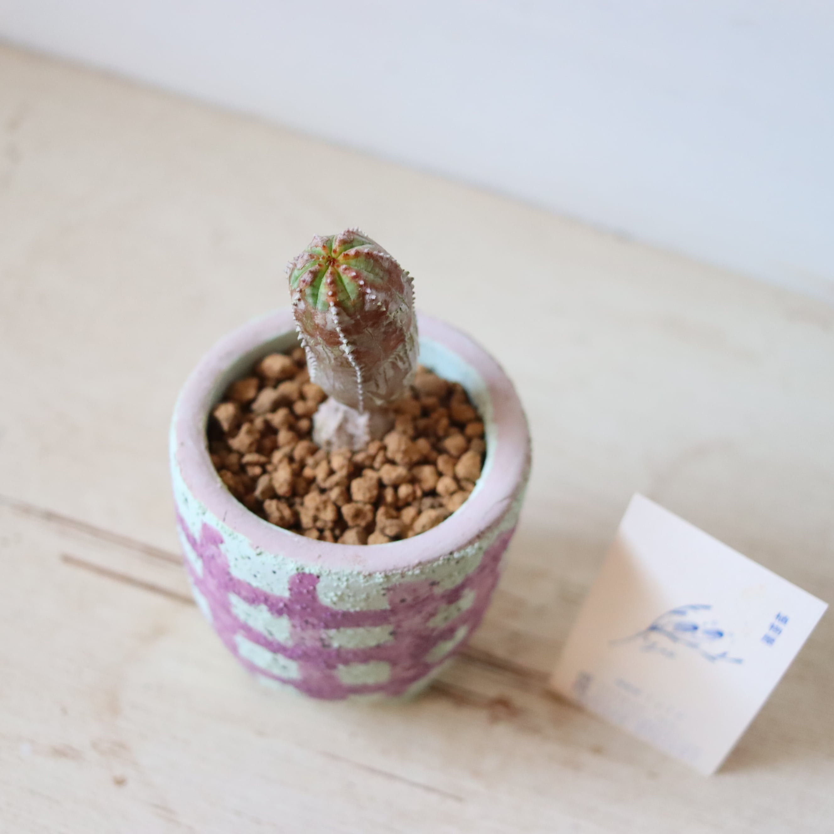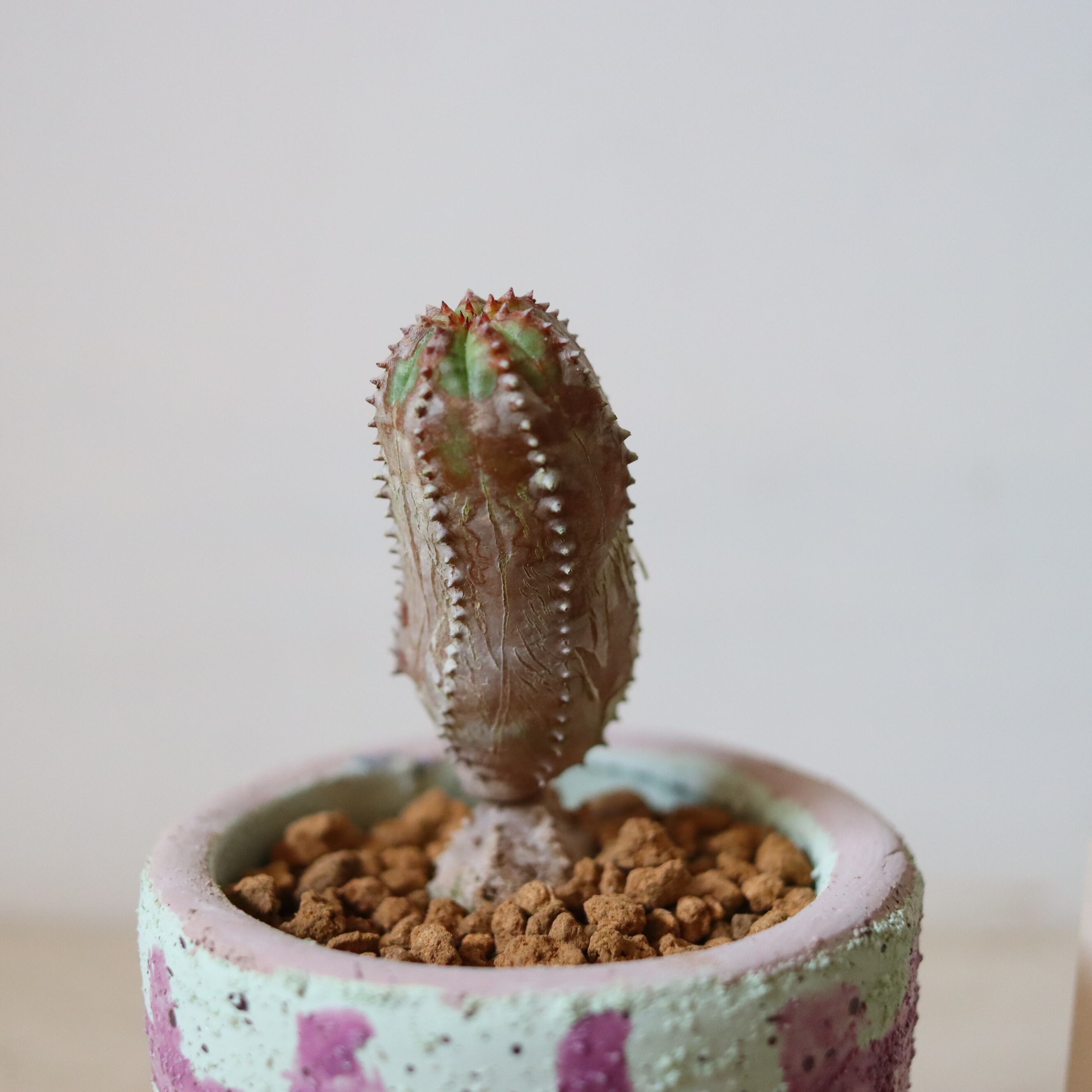 なんだかひょうきんな姿がたまらない多肉植物です。小さいけれど一丁前に少しずつ木質化していてかっこいいですね。
