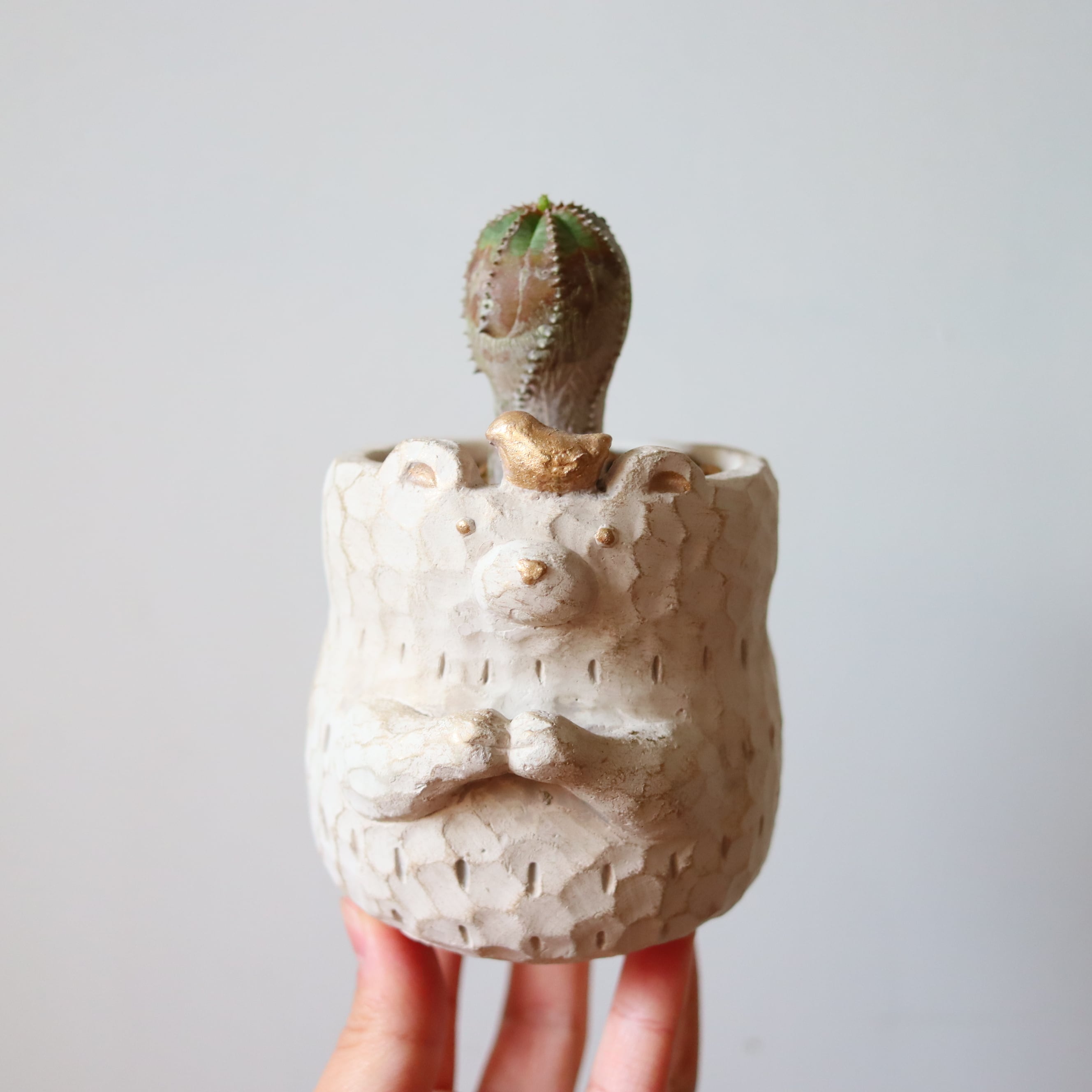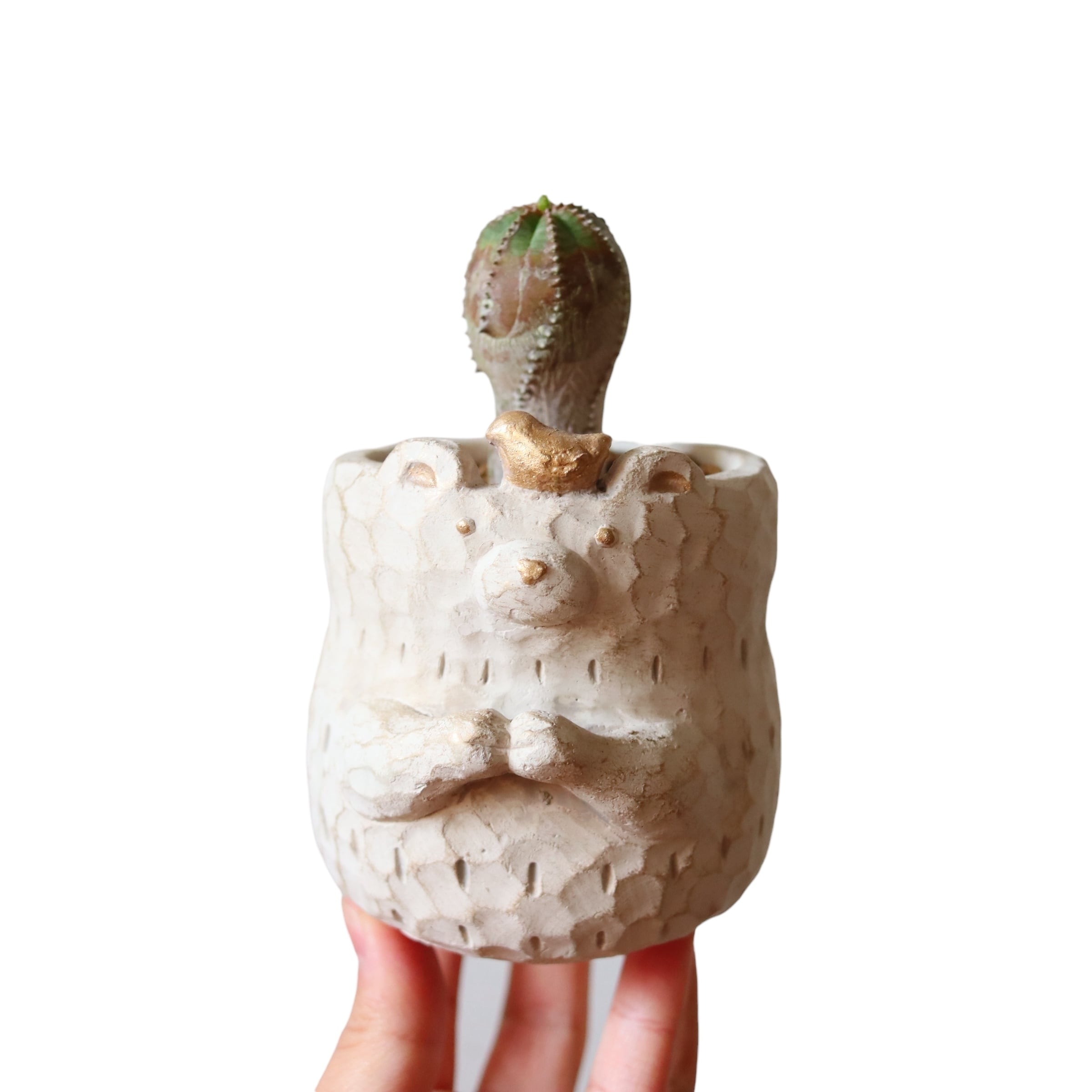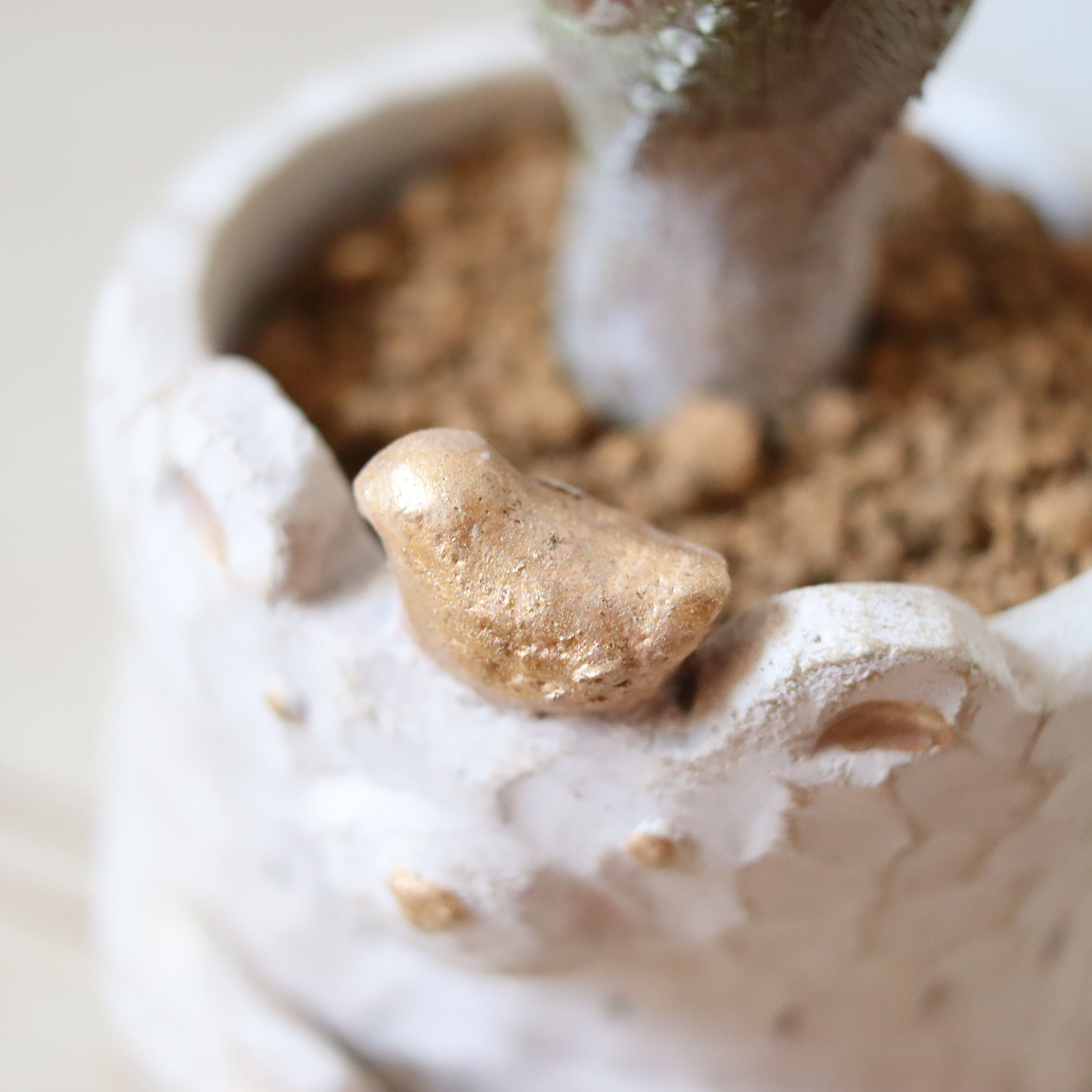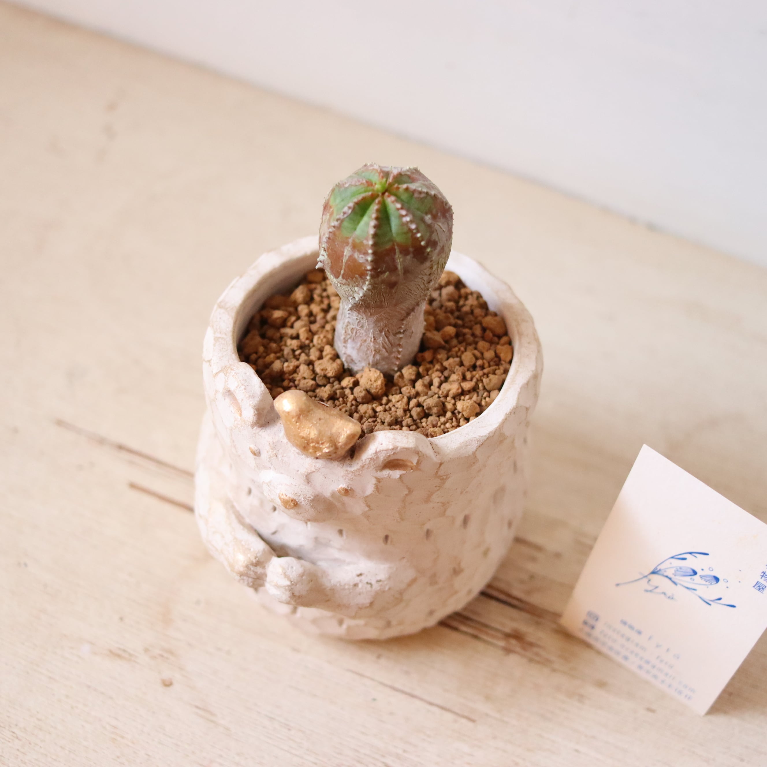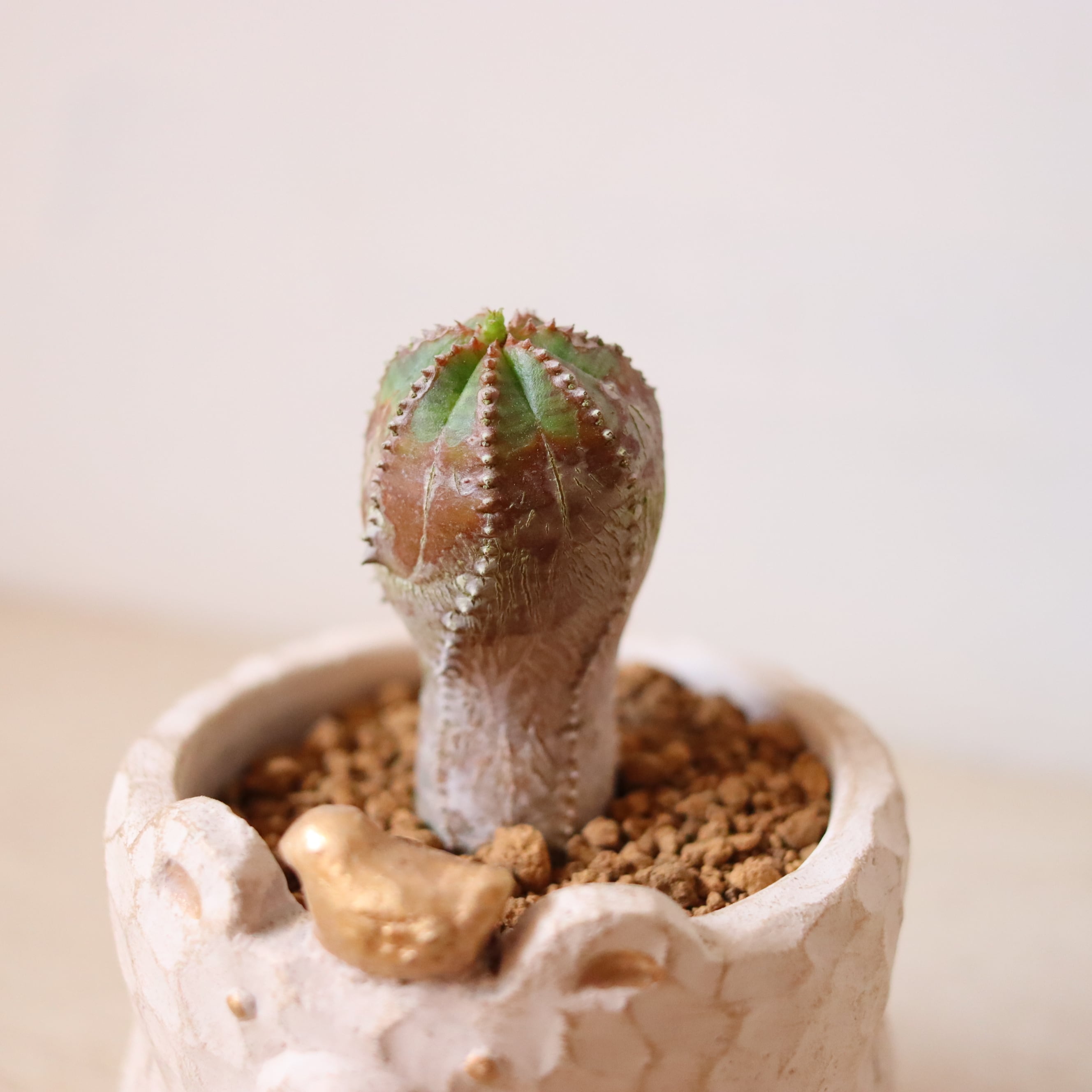 なんだかひょうきんな姿がたまらない多肉植物です。小さいけれど一丁前に少しずつ木質化していてかっこいいですね。
