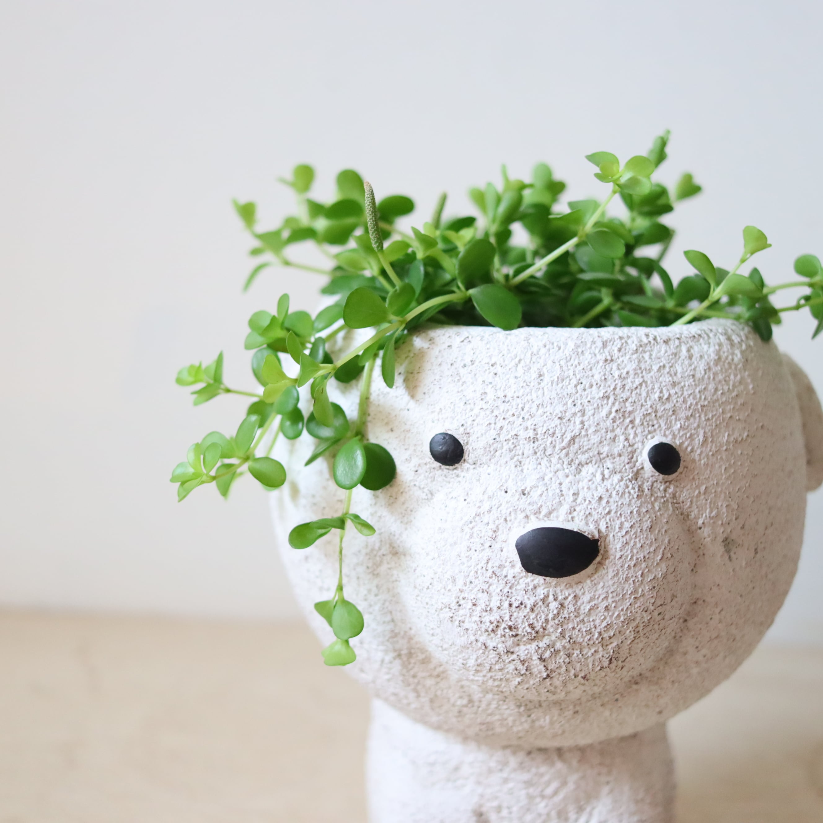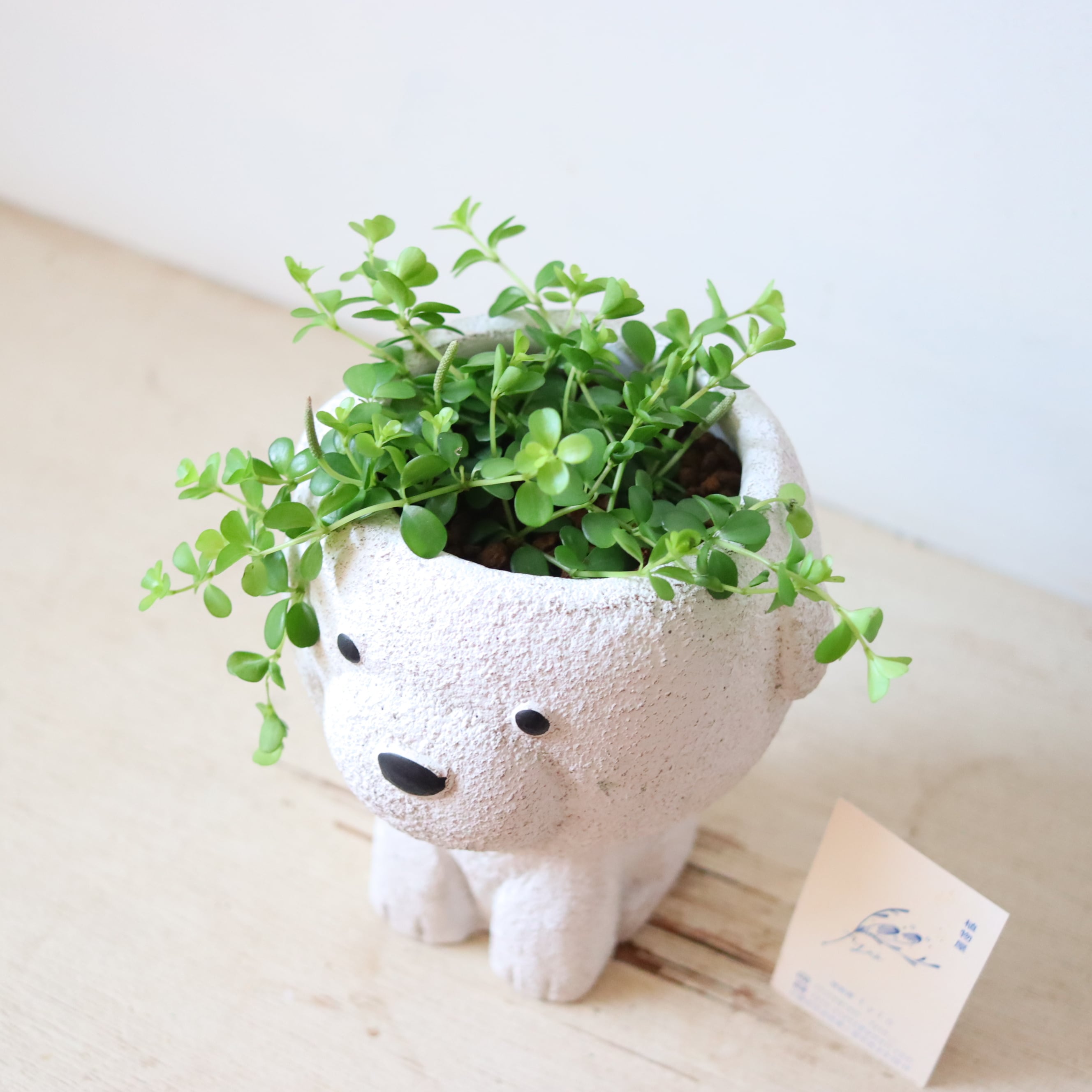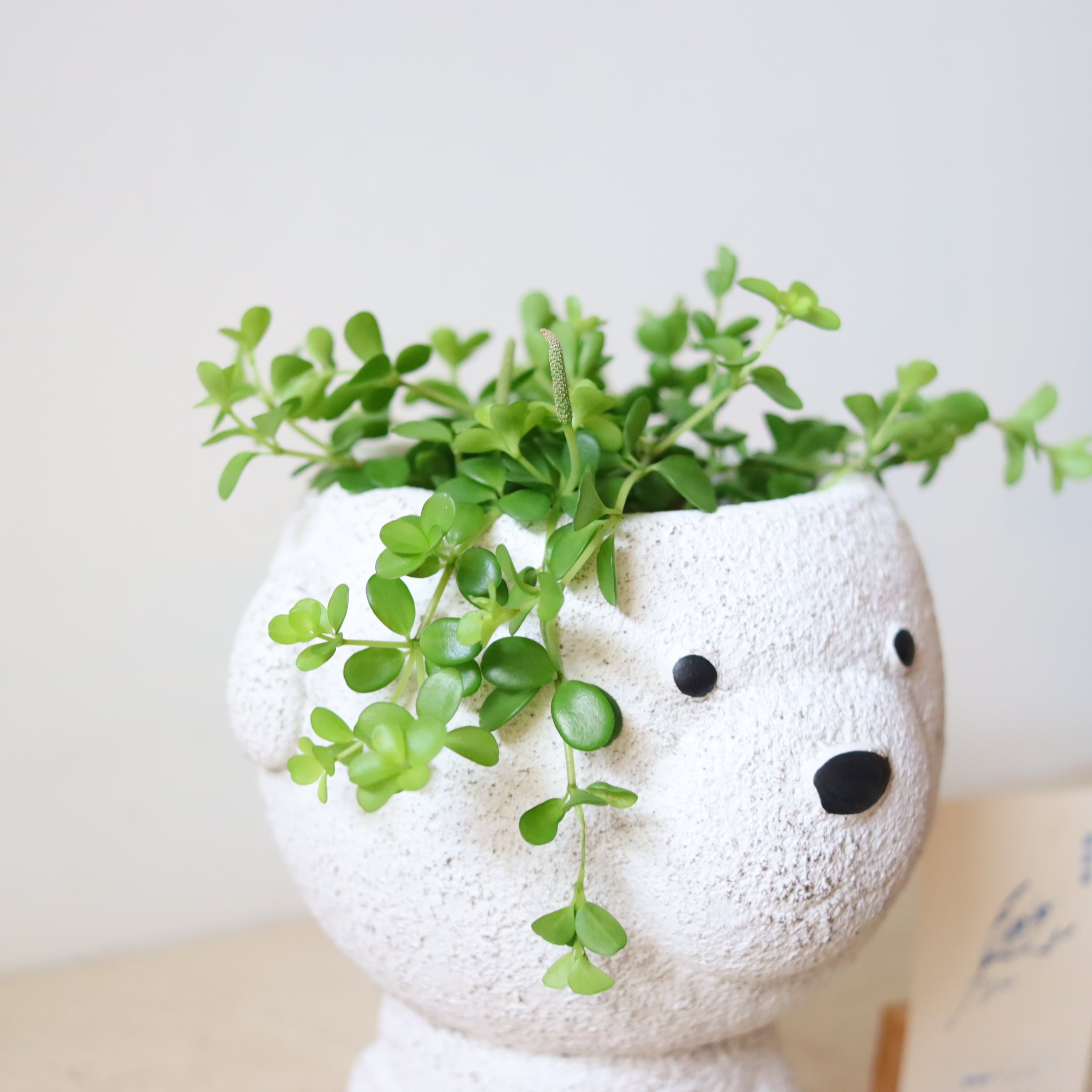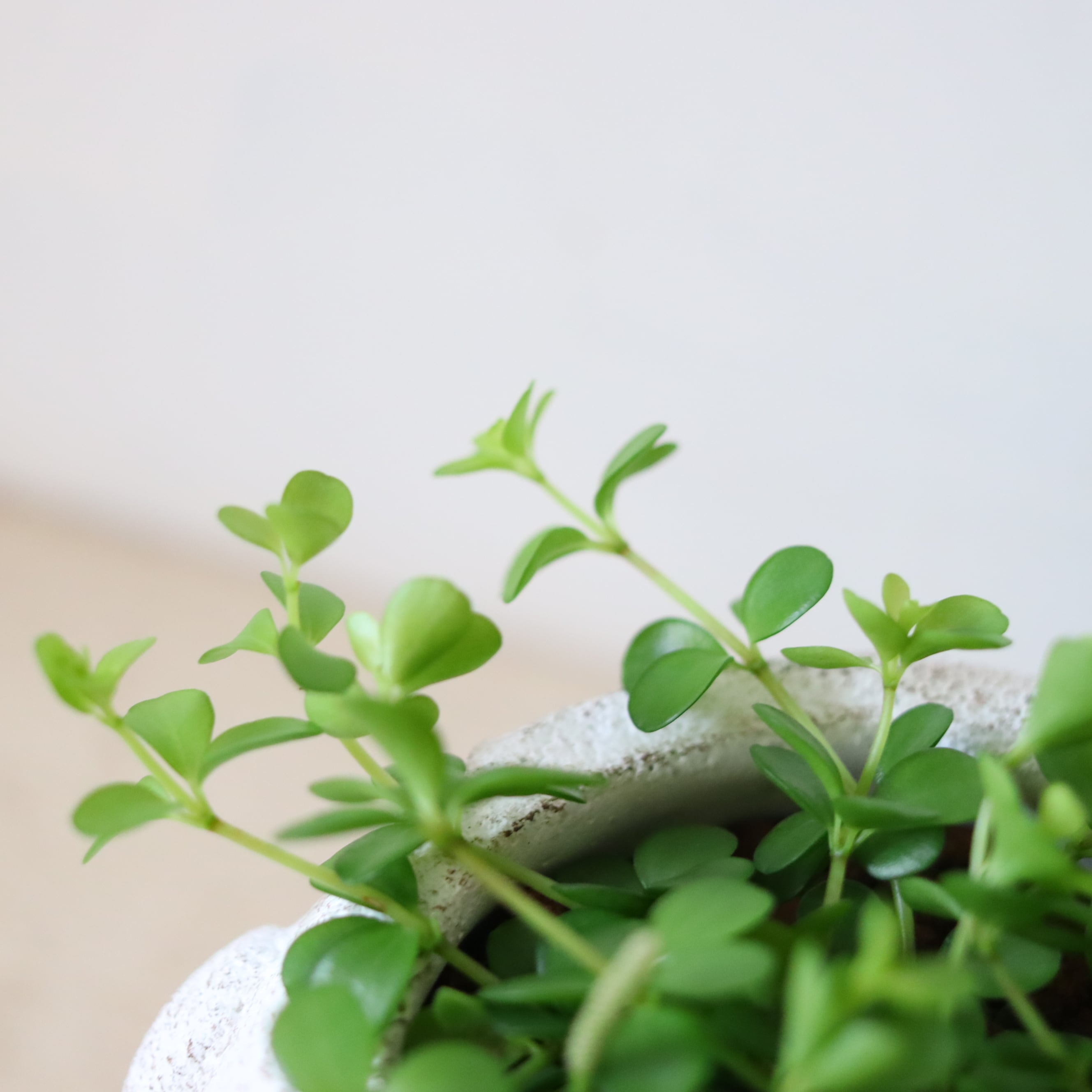 まるっとした小さな葉っぱがかわいい植物です。伸びていくと下に垂れ下がっていくので、高さのある鉢に植えてみました。