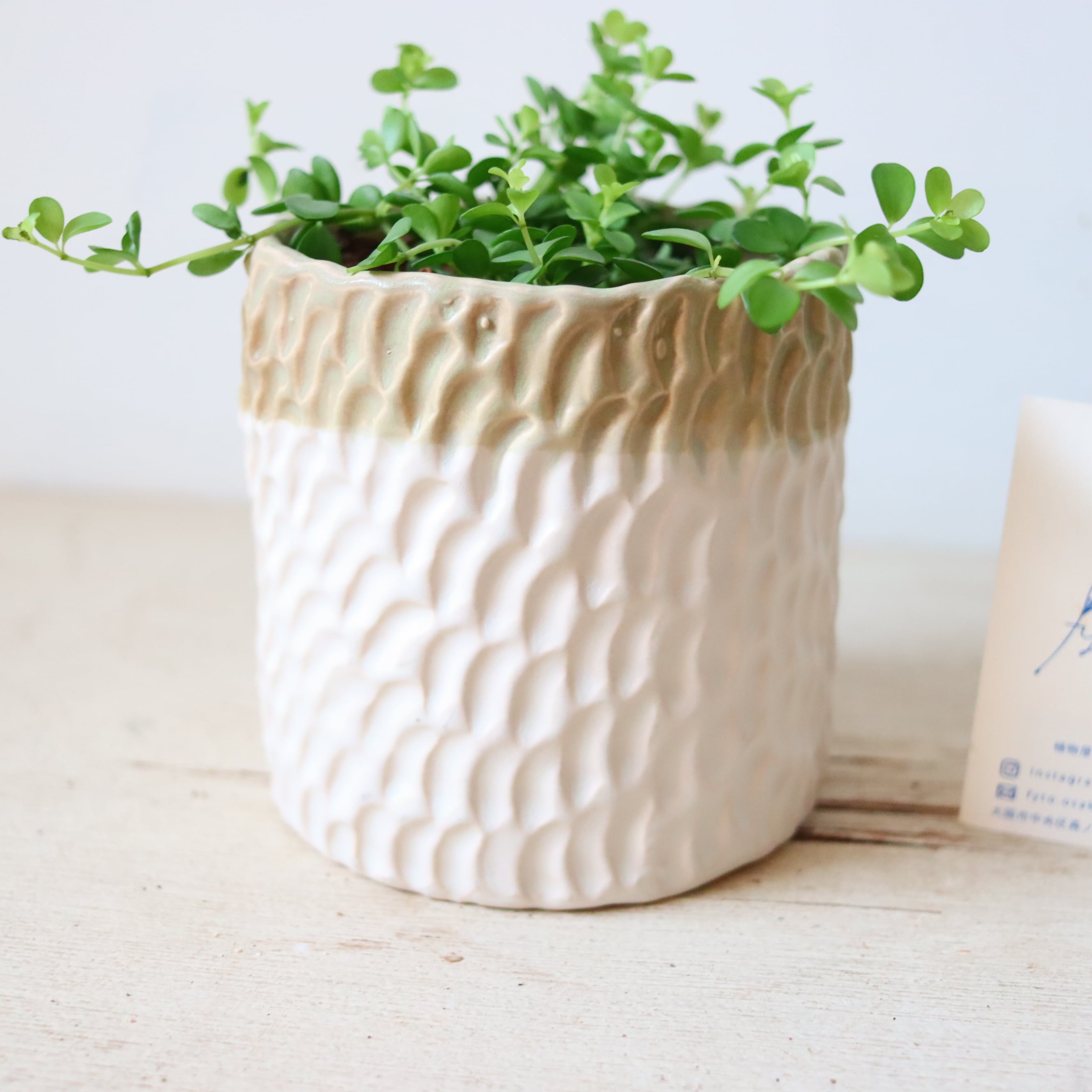 サイズ : 縦11㎝ × 横10㎝ (鉢の大きさです。名刺サイズのカードとの比較を参考にしてください。)