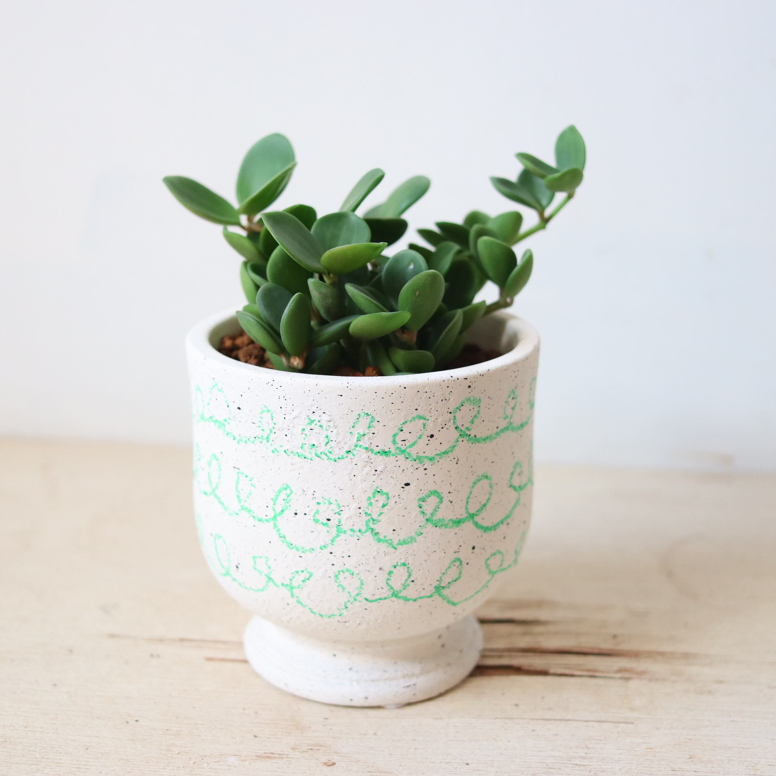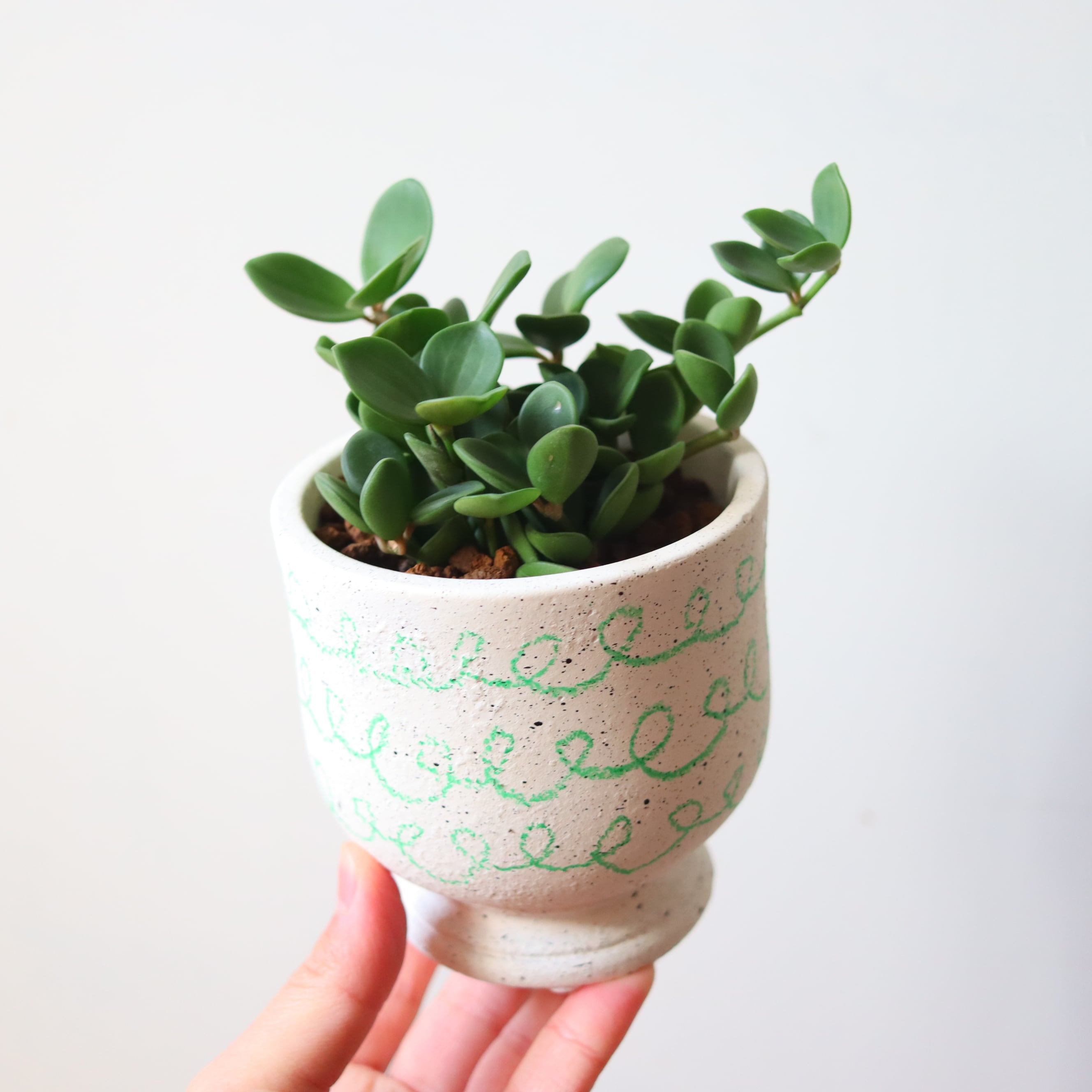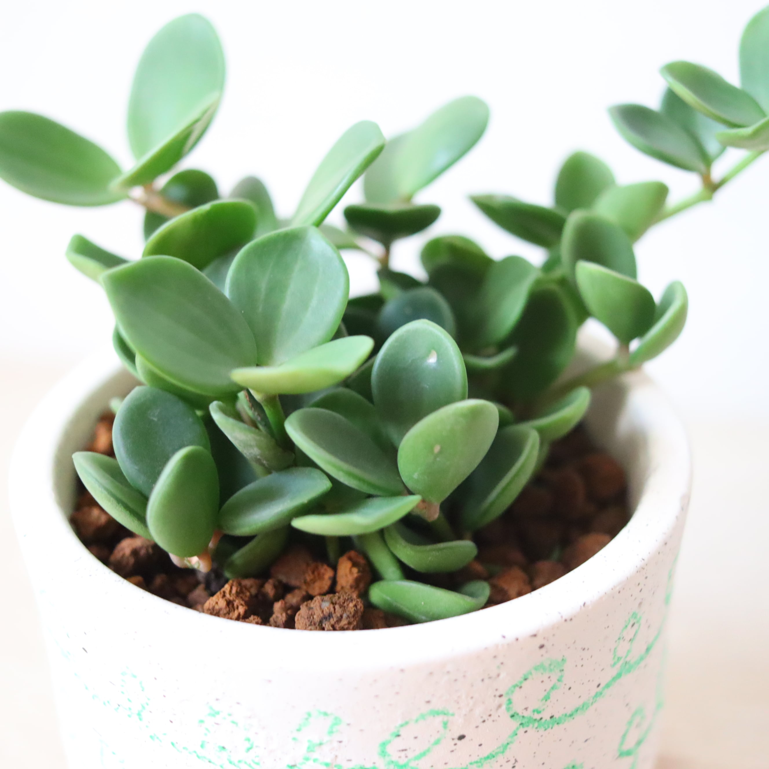 まるっとした葉っぱがかわいい植物です。伸びていくと重みで下に垂れ下がっていく姿がかわいいです。もうこれ以上伸びてほしくない時は切ってあげて大丈夫です。