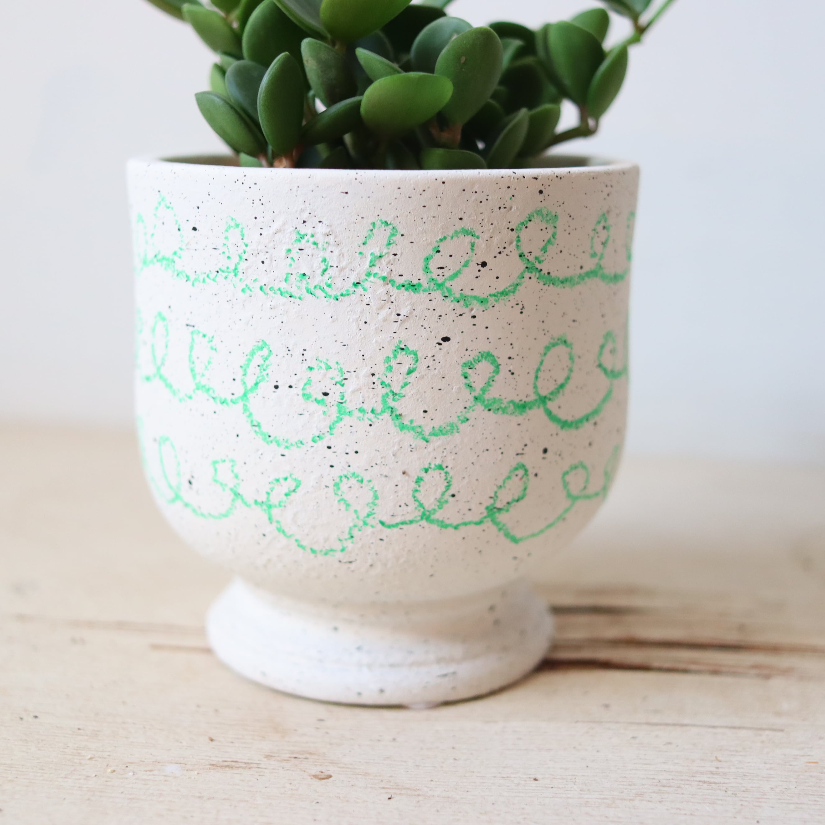 サイズ : 縦10㎝ × 横10㎝ (鉢の大きさです。名刺サイズのカードとの比較を参考にしてください。)