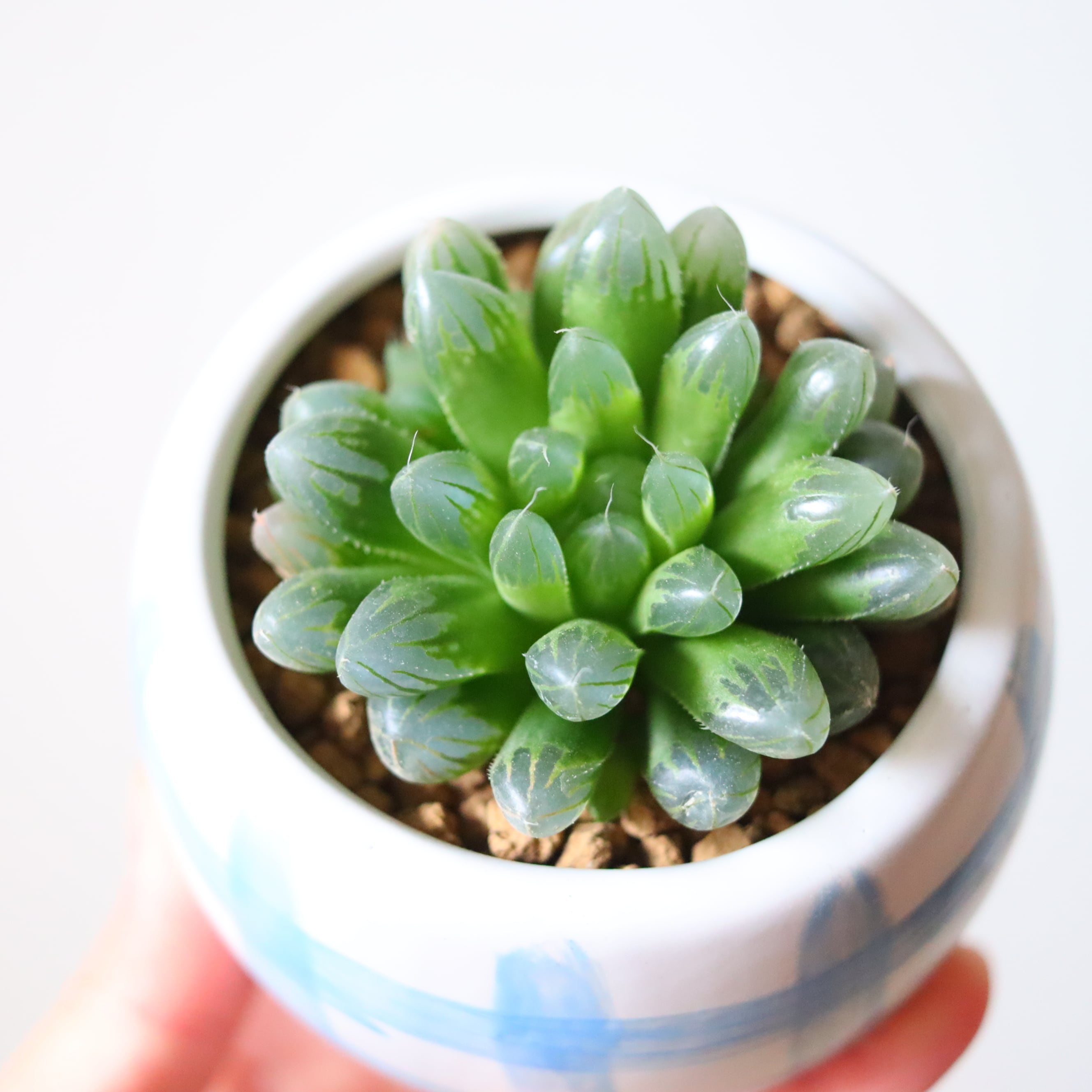 水晶のようでほんとうに綺麗な植物です。自然の光、特に朝日を透かして見ると息を飲むような美しさで、癒されます。サボテンの仲間なので非常に丈夫で育てやすく、お世話が苦手な方にもおすすめです。