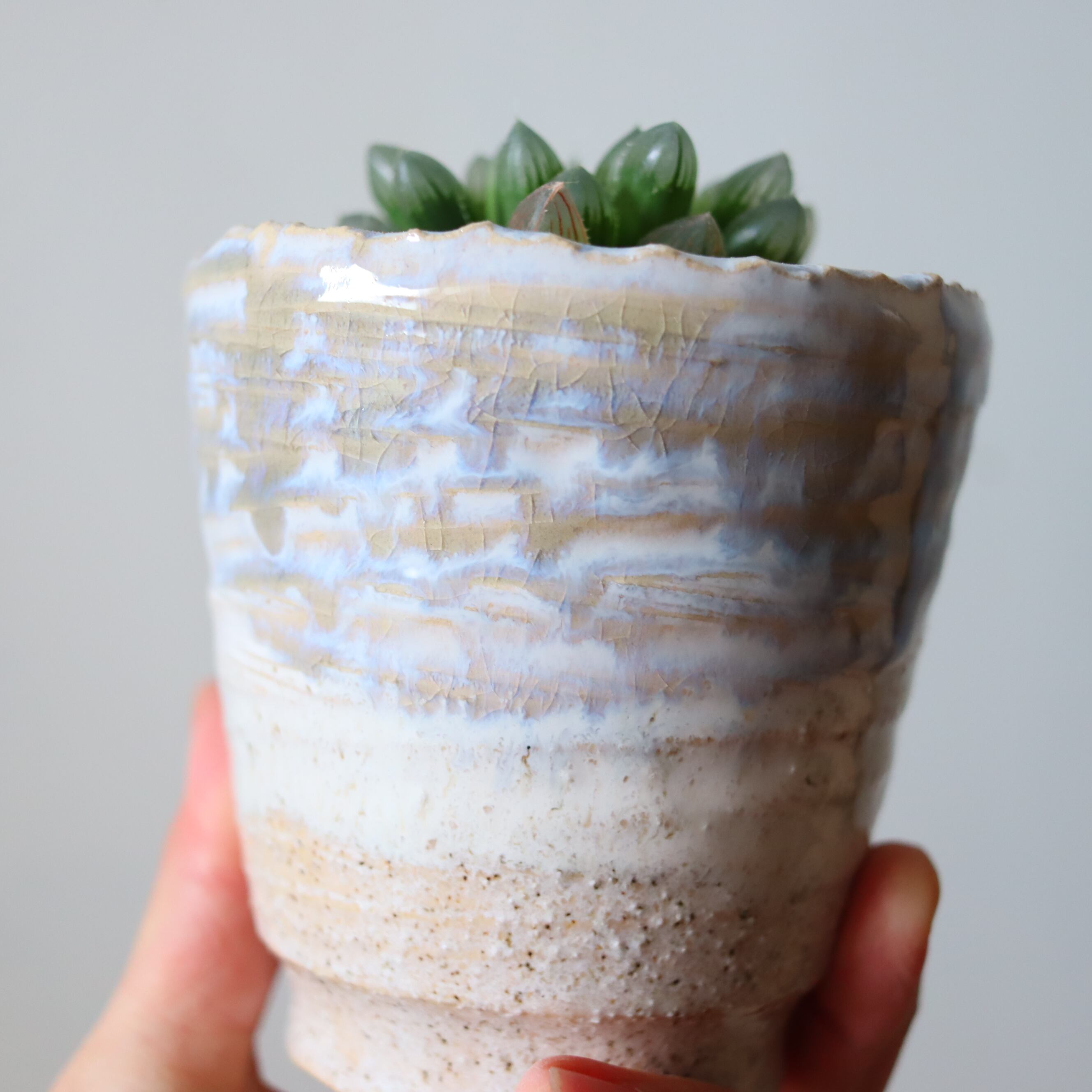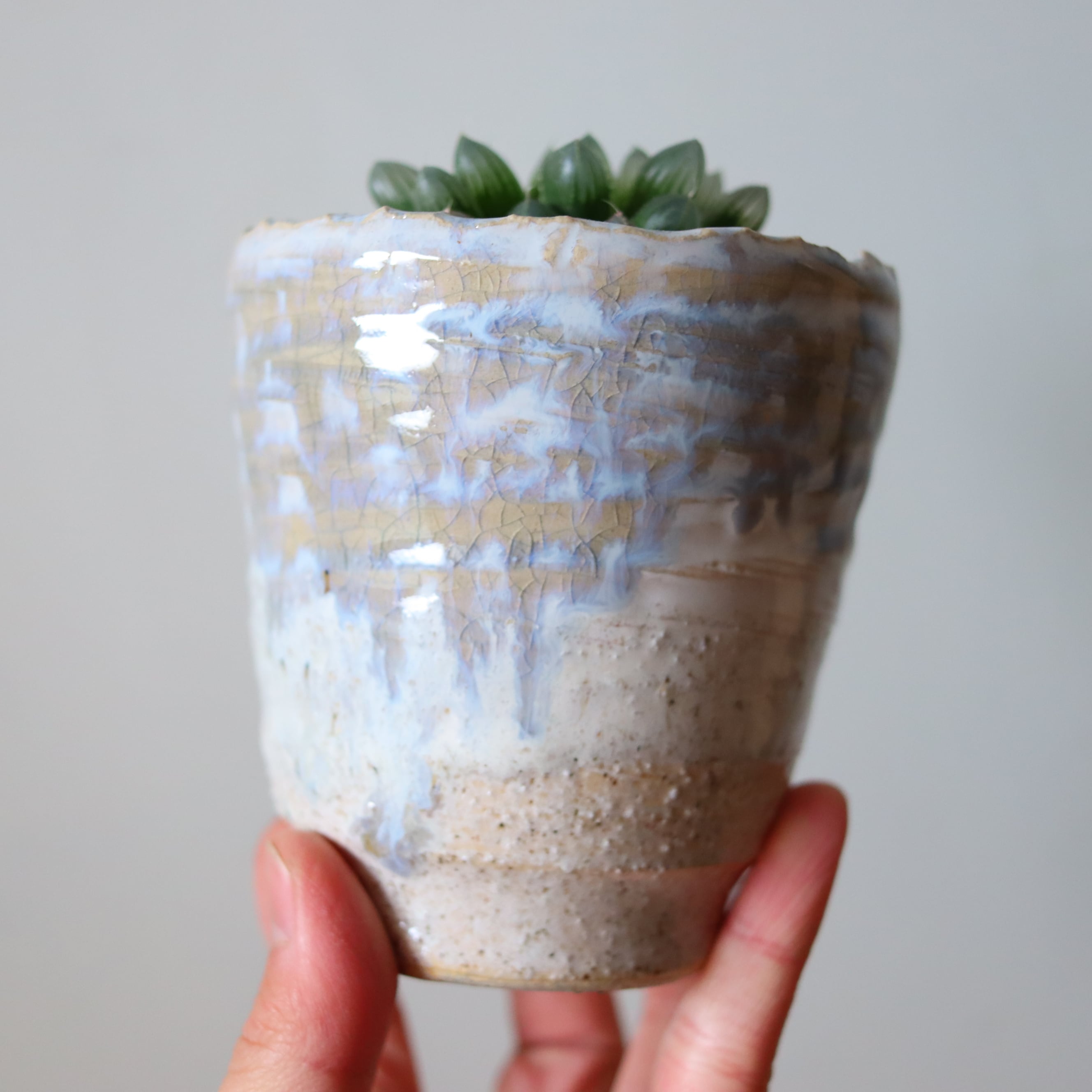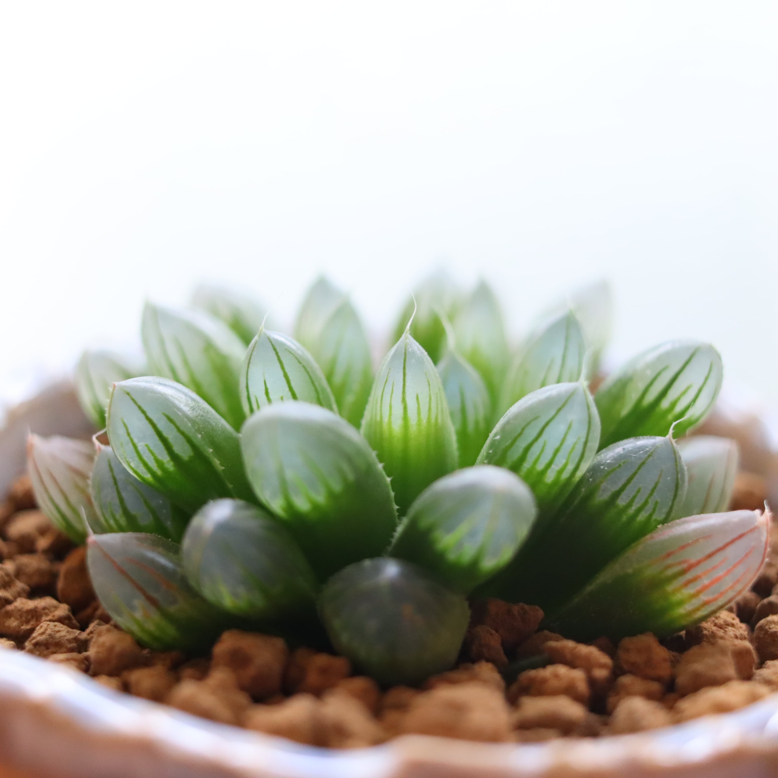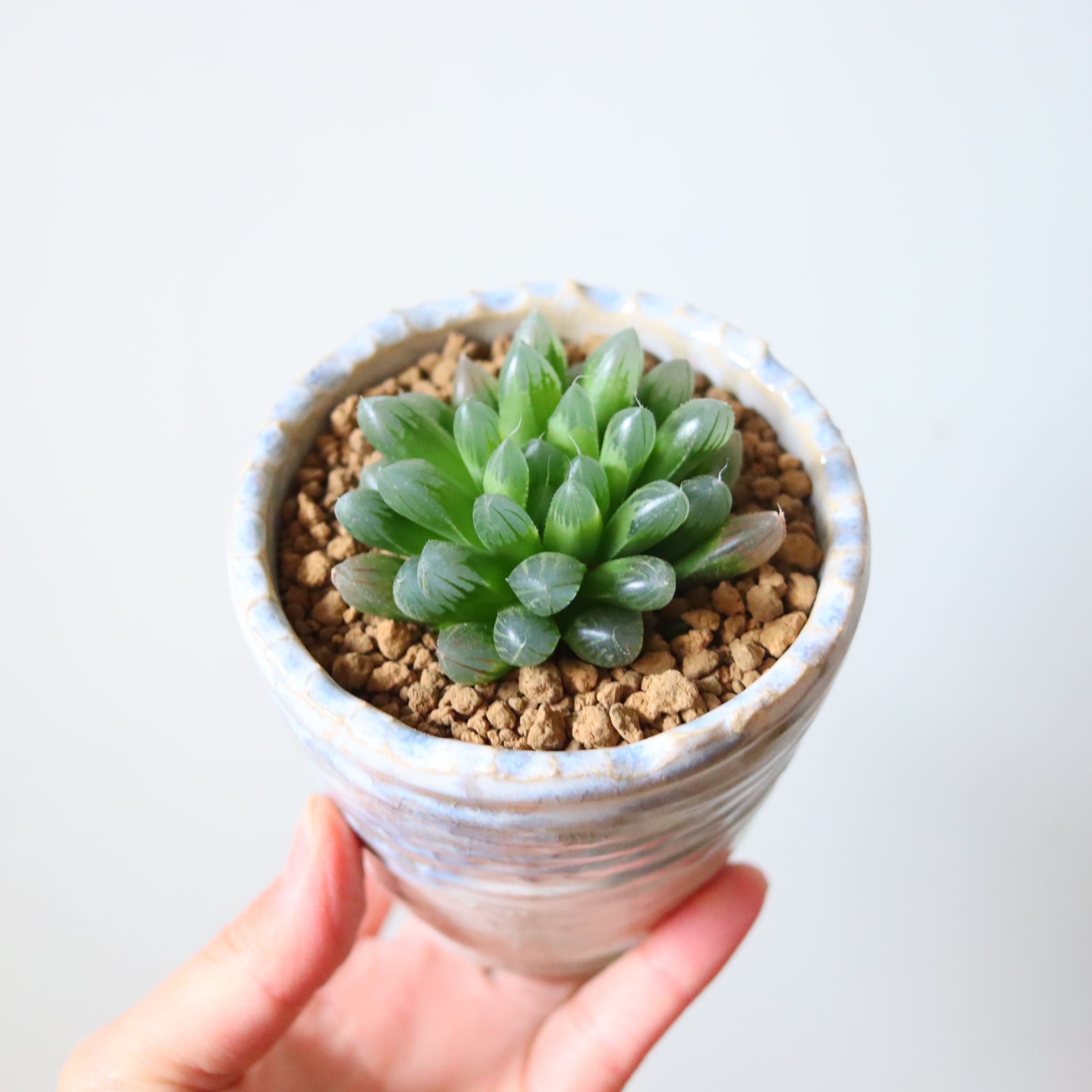 水晶のようでほんとうに綺麗な植物です。自然の光、特に朝日を透かして見ると息を飲むような美しさで、癒されます。サボテンの仲間なので非常に丈夫で育てやすく、お世話が苦手な方にもおすすめです。