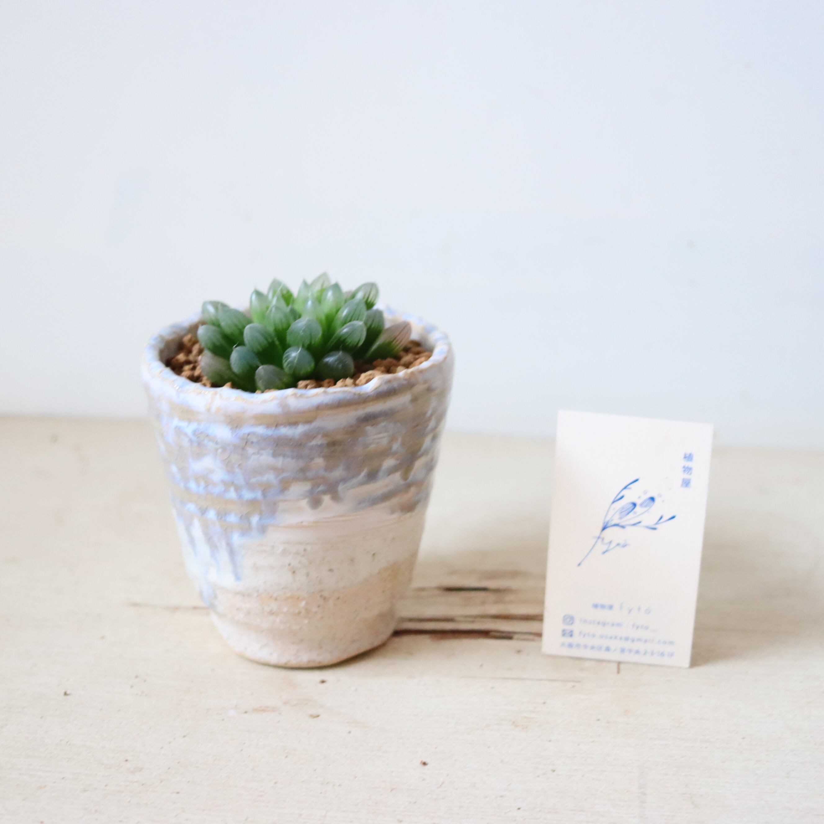 サイズ : 縦10㎝ × 横10㎝ (鉢の大きさです。名刺サイズのカードとの比較を参考にしてください。)