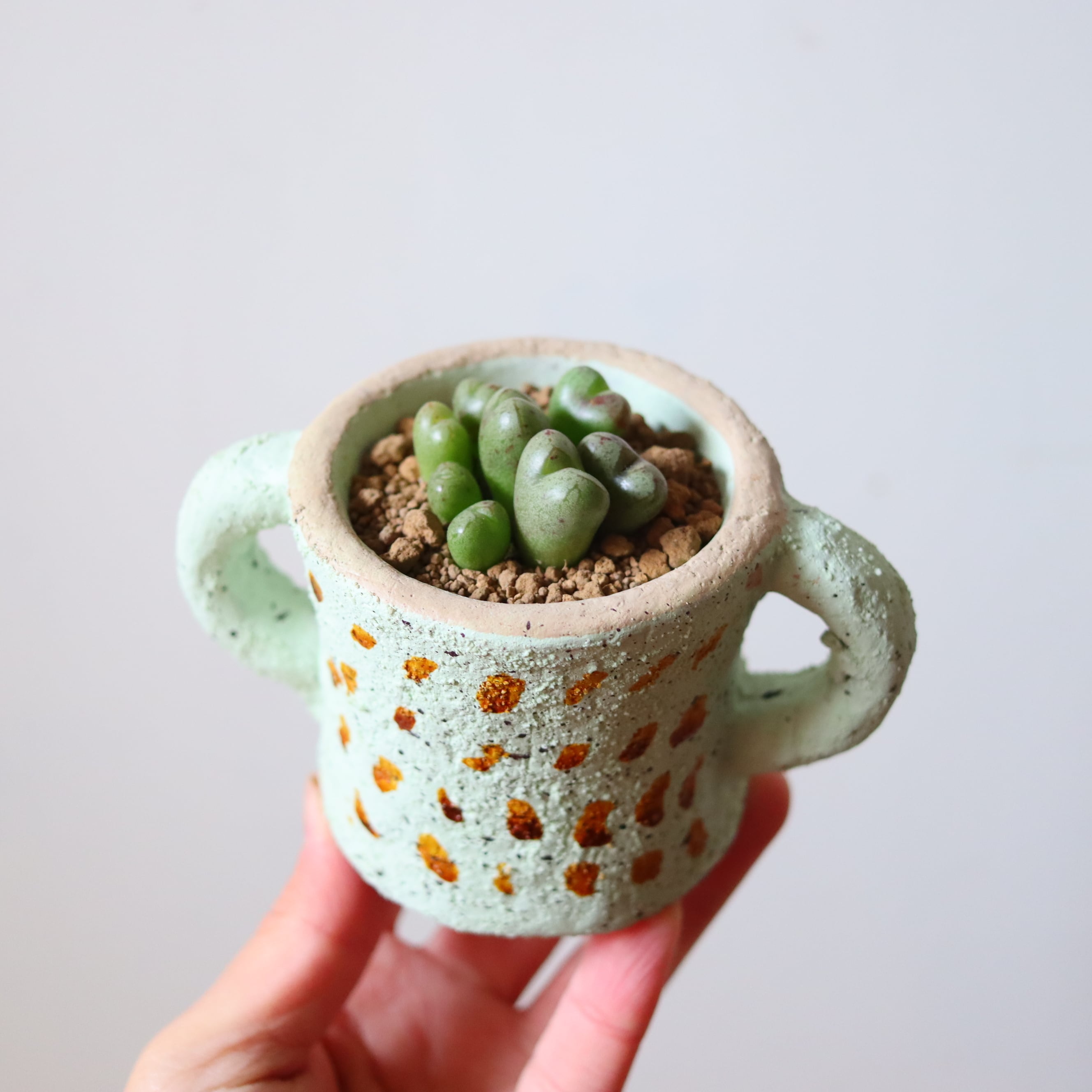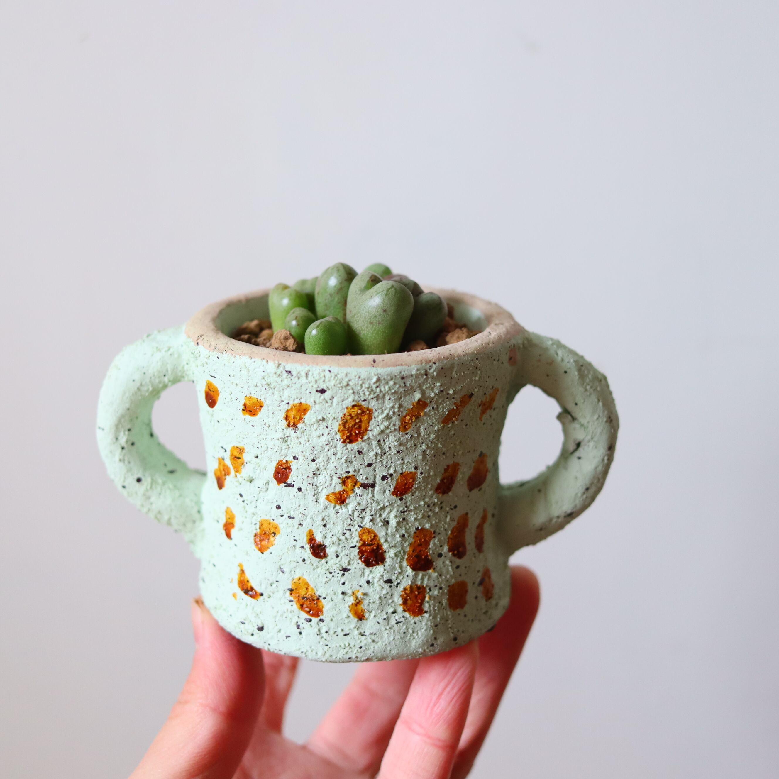 サイズ : 縦7㎝ × 横9㎝ (鉢の大きさです。名刺サイズのカードとの比較を参考にしてください。)