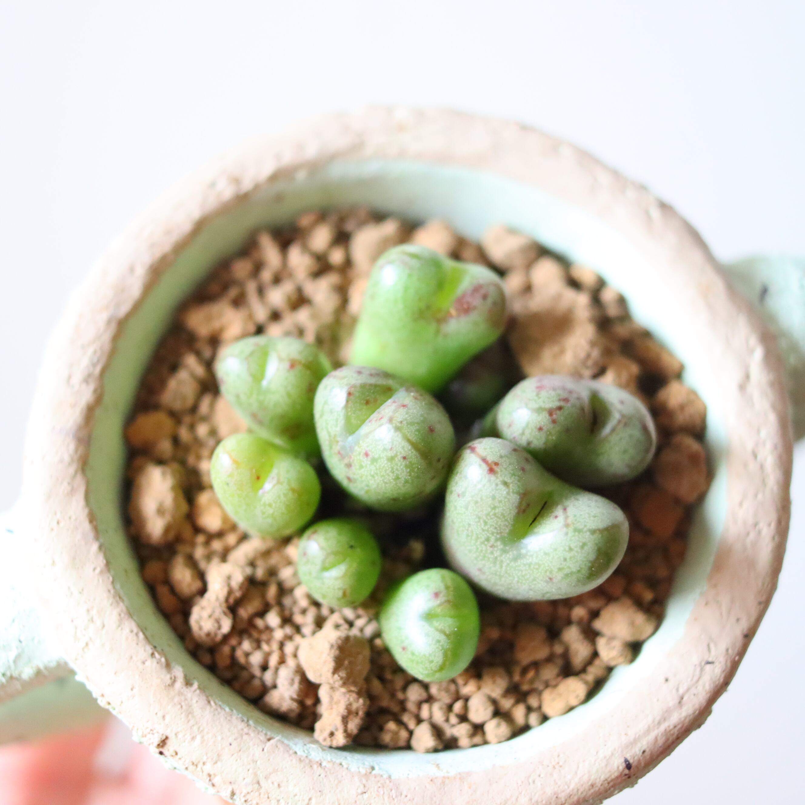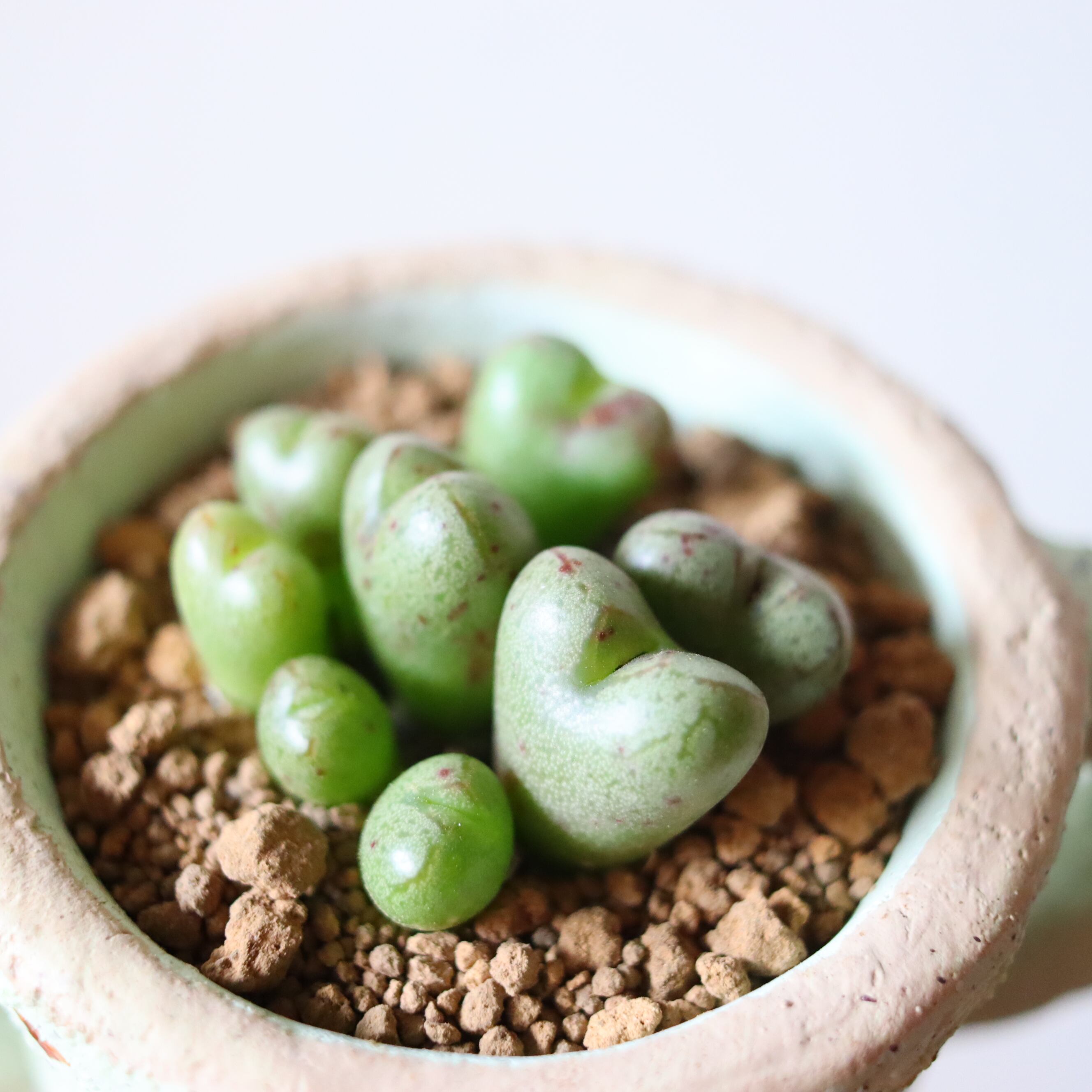 夏は茶色いカサカサの皮を被って休眠します。涼しい半日陰に置き、水を断ってあげてください。涼しくなると脱皮して、少しずつ数を増やしていきます。