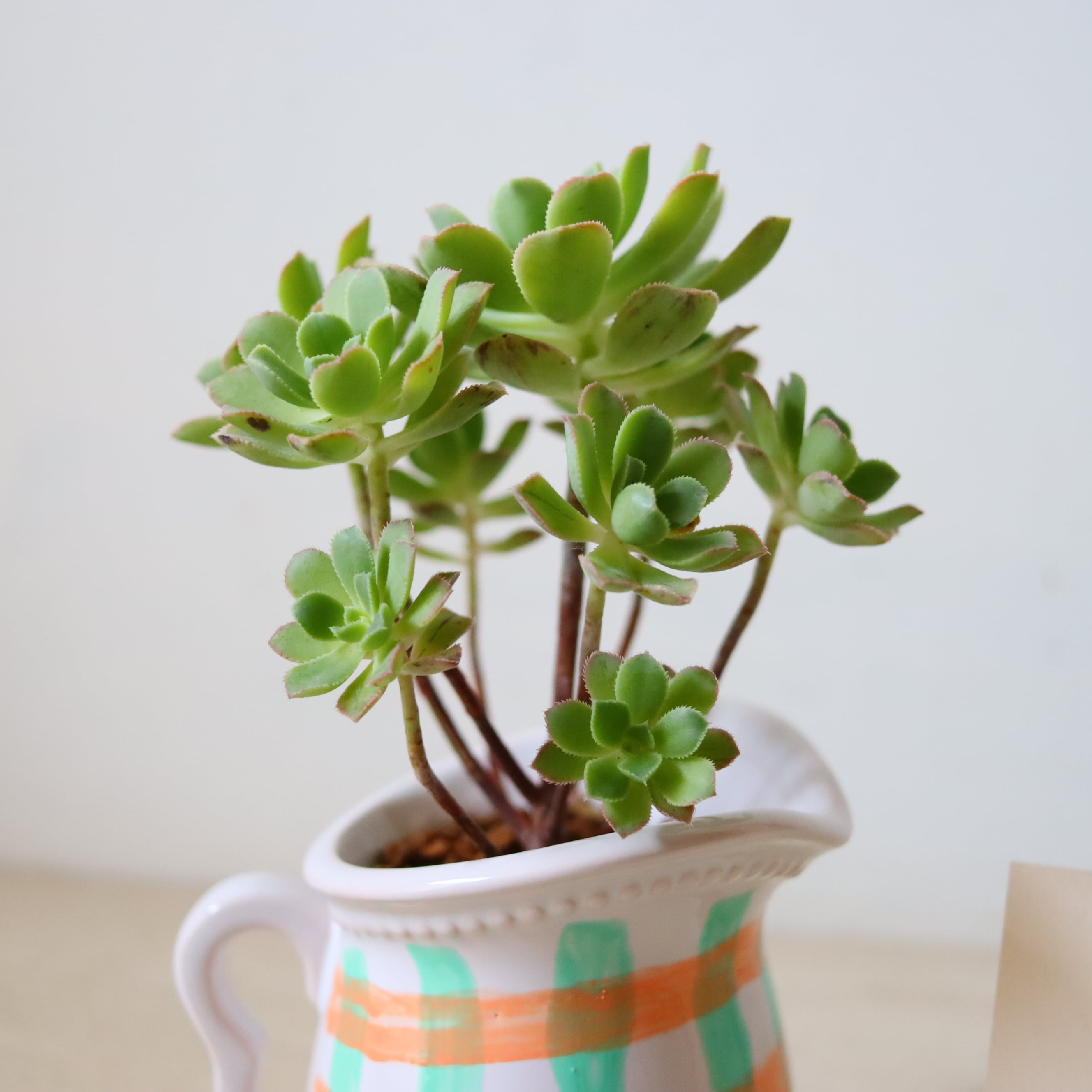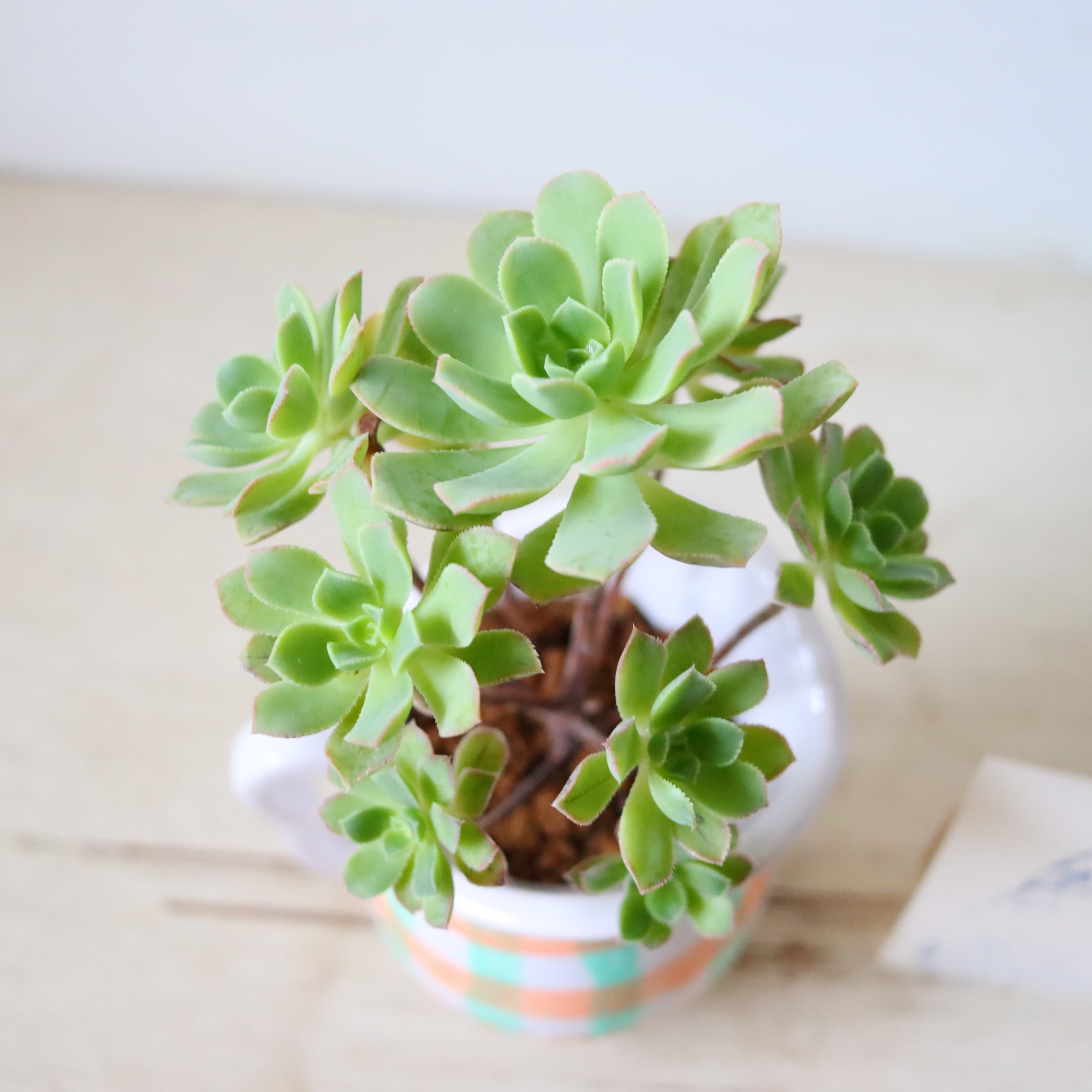 綺麗に幹立ちしていて素晴らしいシルエットのアエオニウムです。お部屋に置いていても主役になってくれそうな姿。かわいいですね〜。。