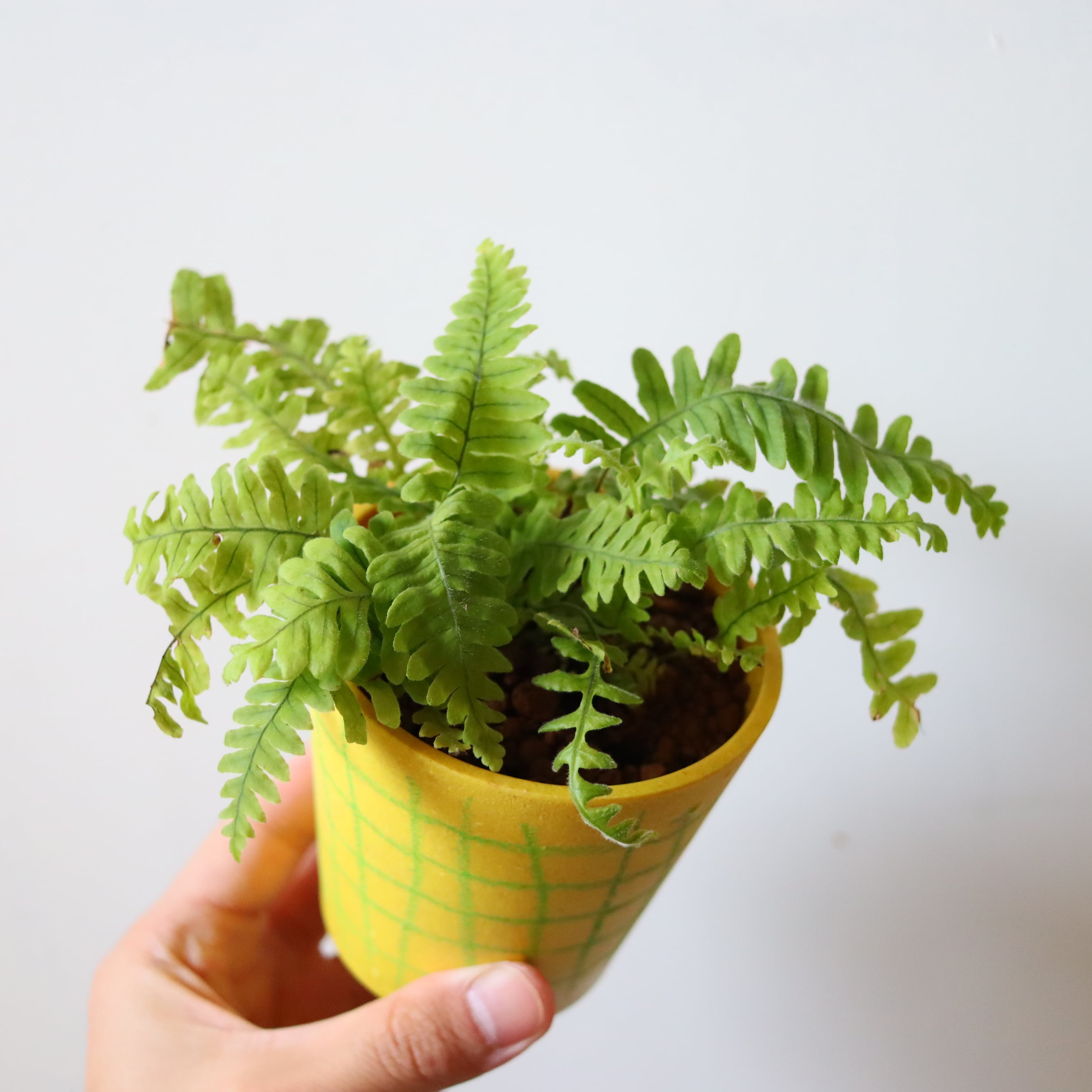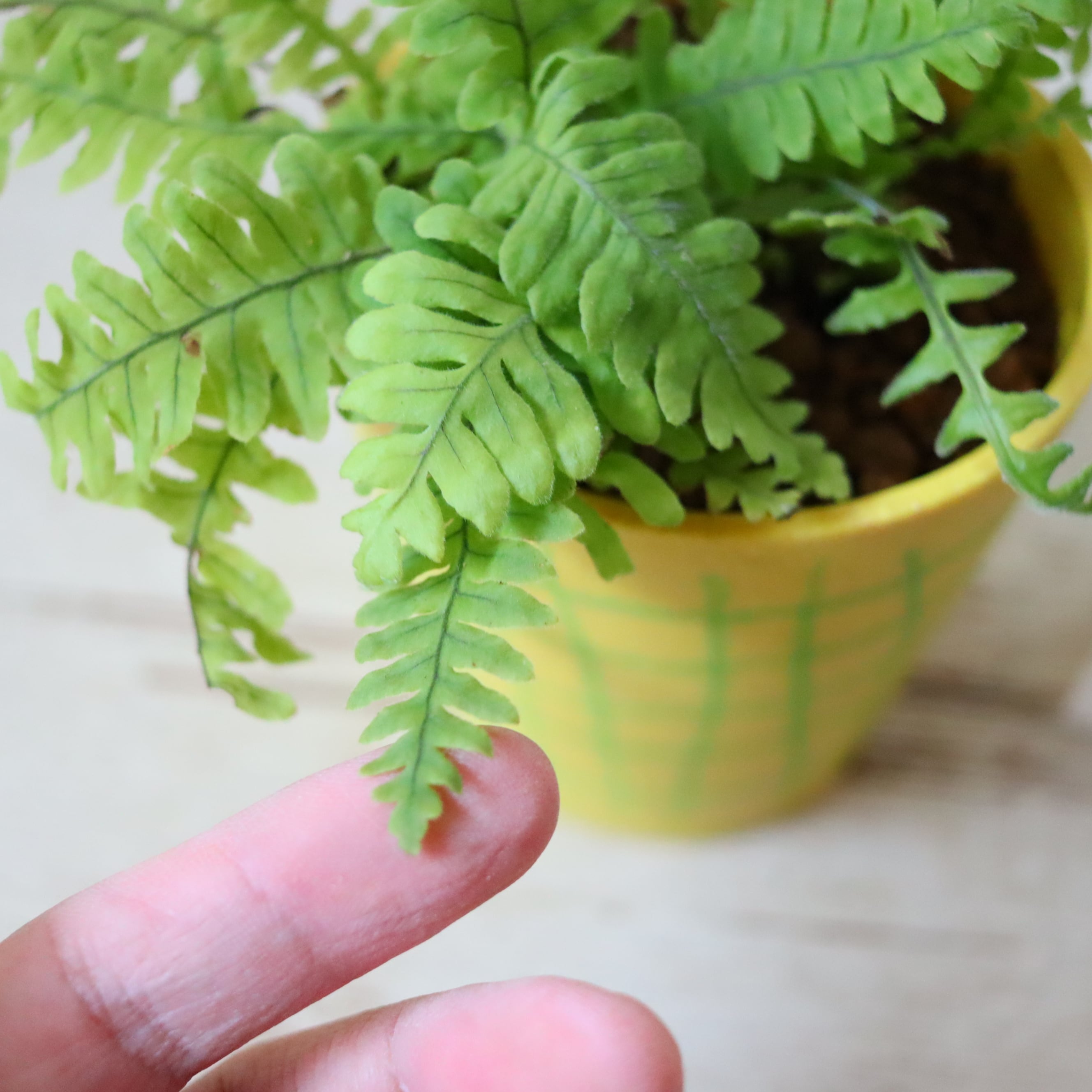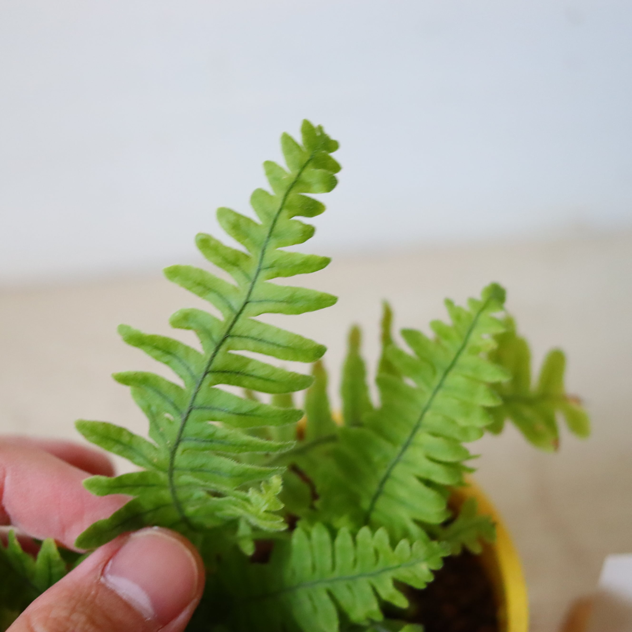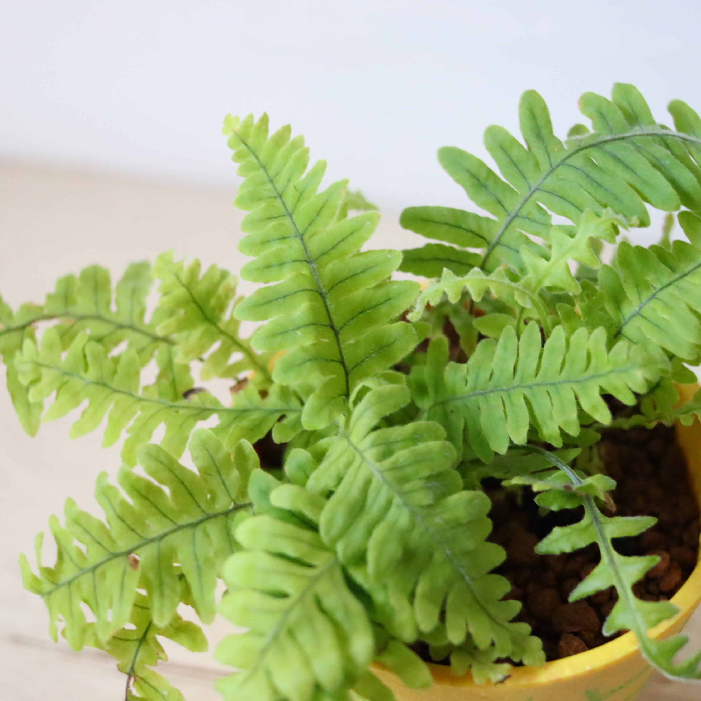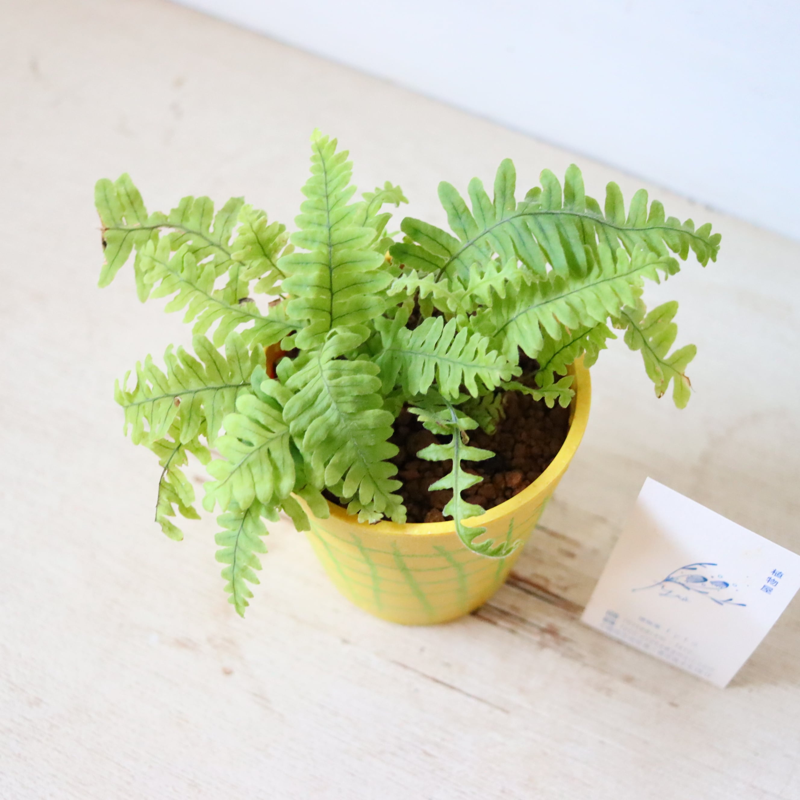 パタパタと羽のような葉っぱをもつ、美しいシダ植物です。足元にある太い根っこがユニーク。シダ植物なのであまり日光が届かないところでも育ててあげることができます。