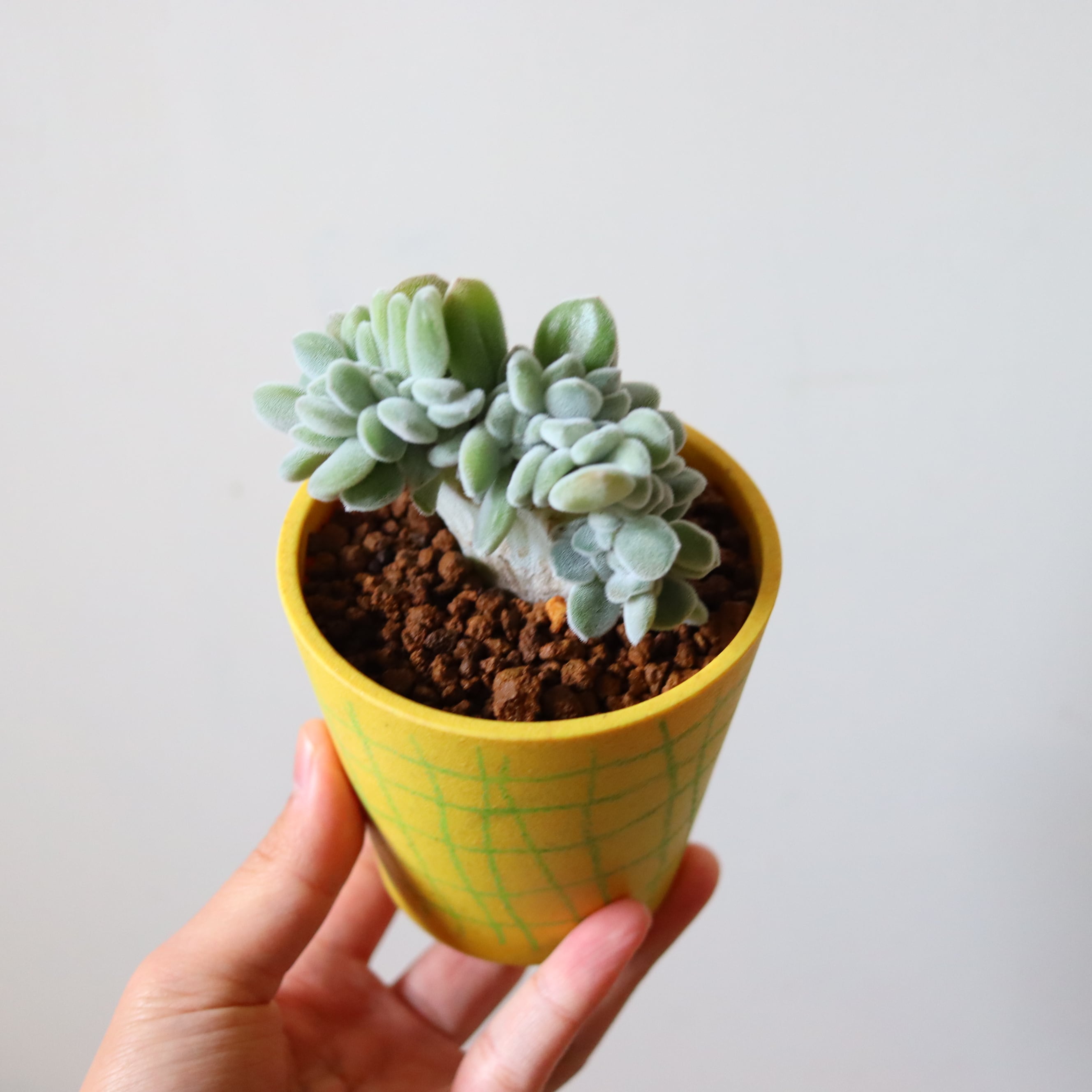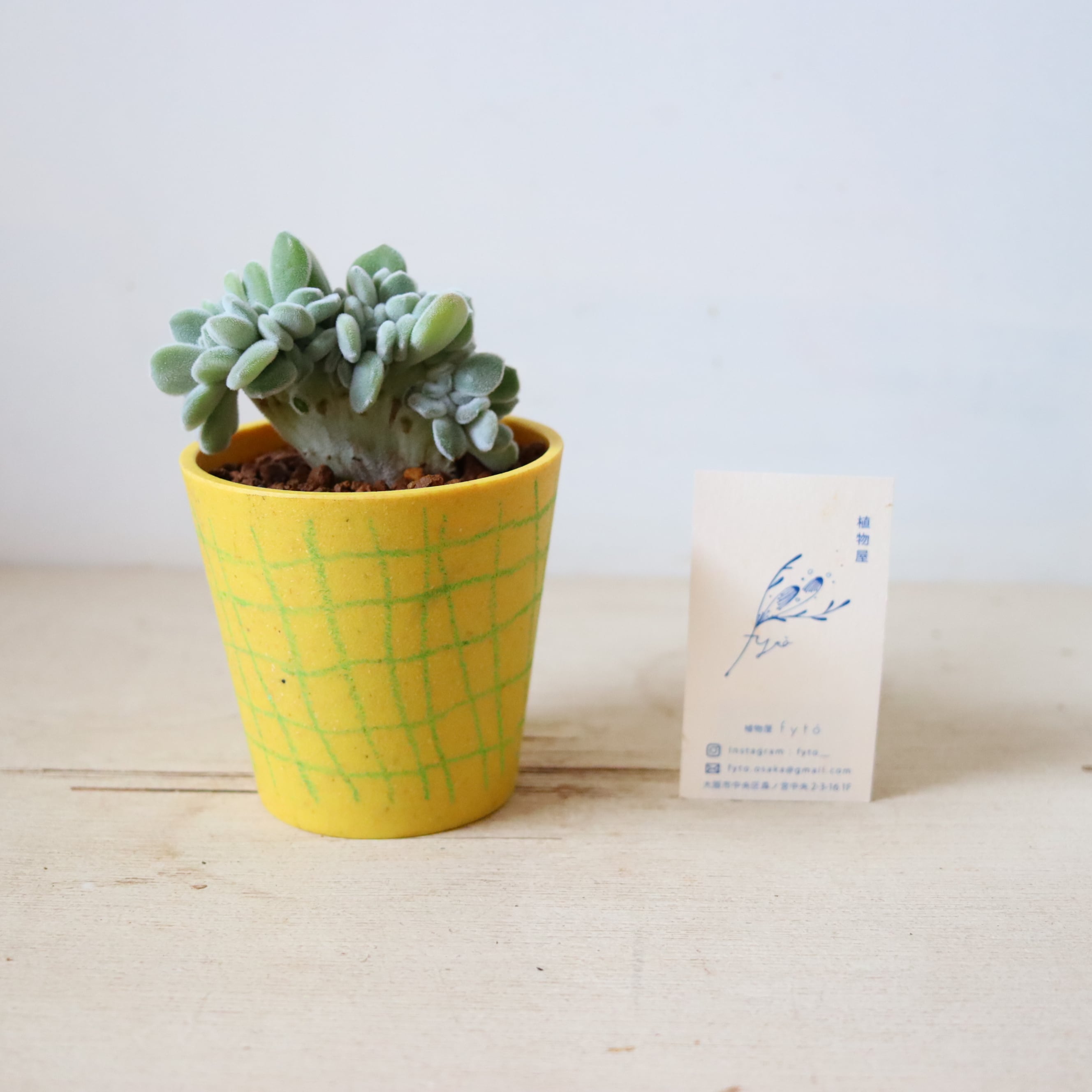 サイズ : 縦9㎝ × 横8㎝ (鉢の大きさです。名刺サイズのカードとの比較を参考にしてください。)